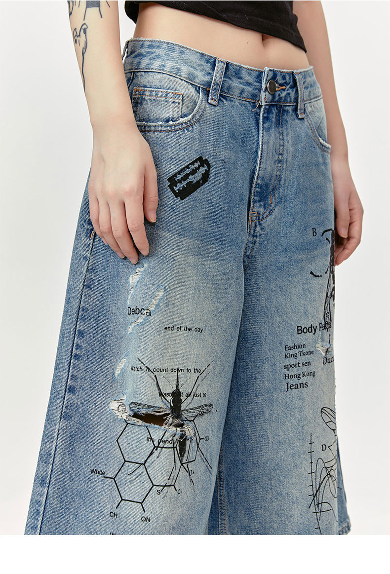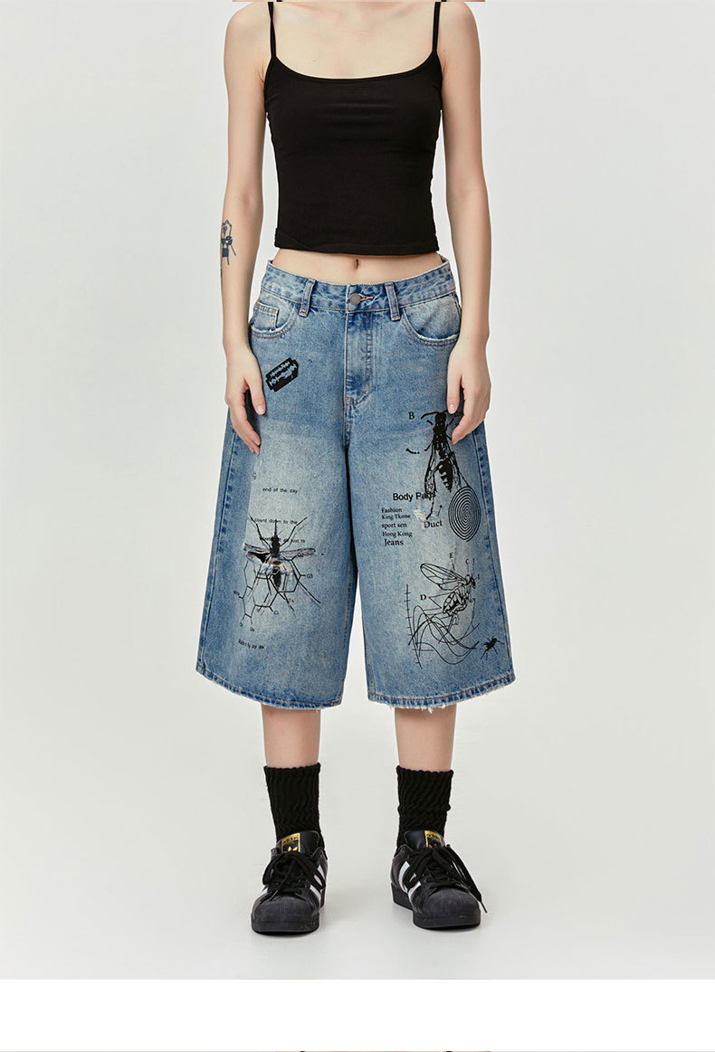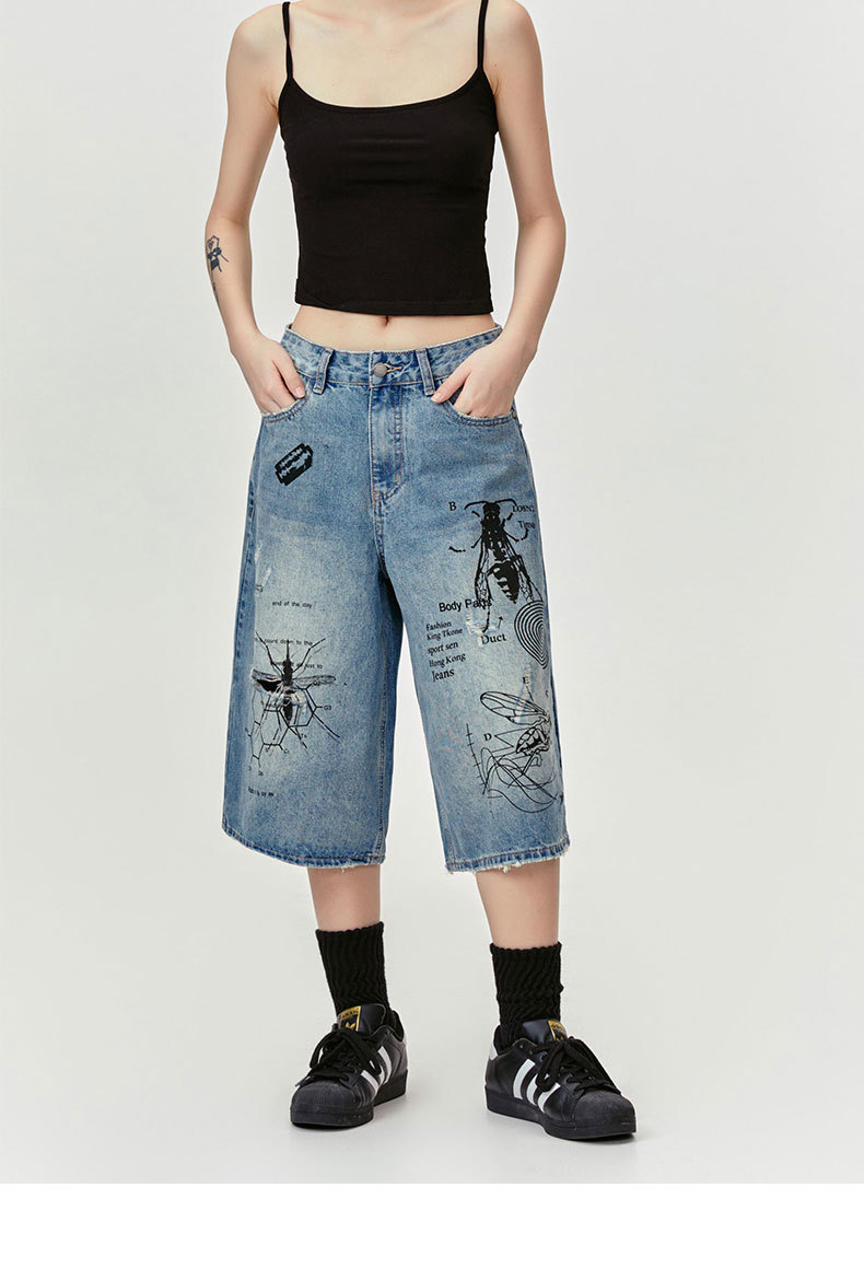 MADEEXTREME Graffiti Print Busting Wormhole Cropped Jeans Shorts