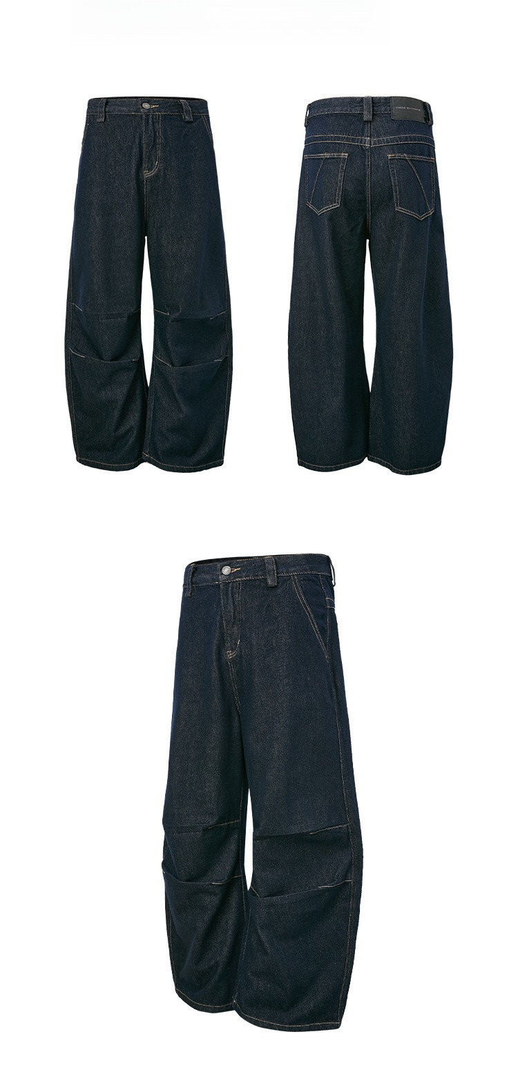 MADEEXTREME Knee Pleated Wide-leg Scimitar Drape Jeans