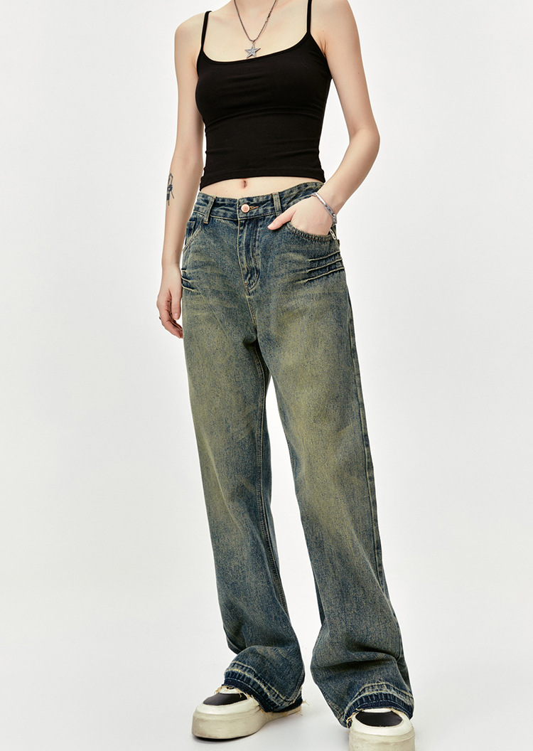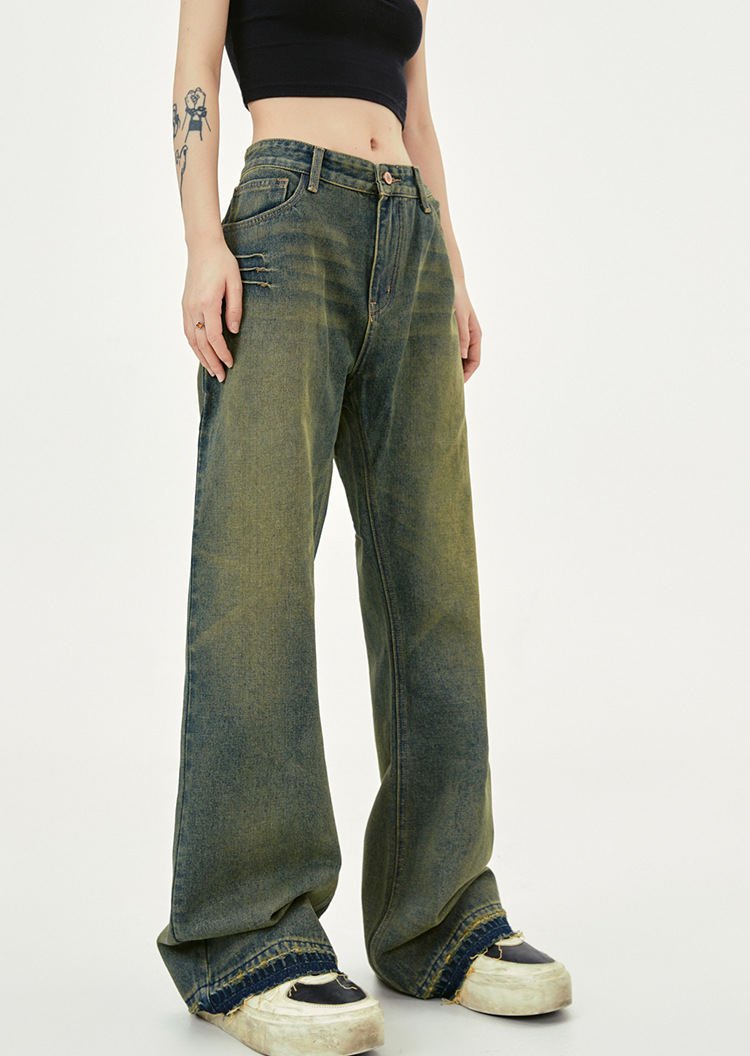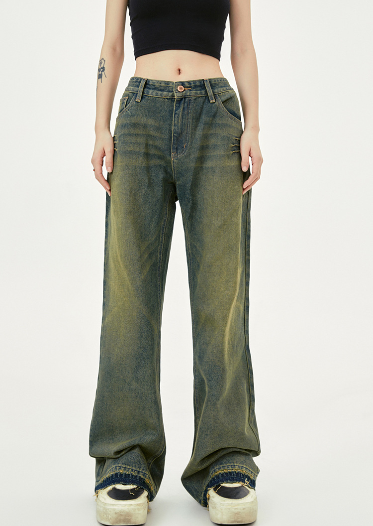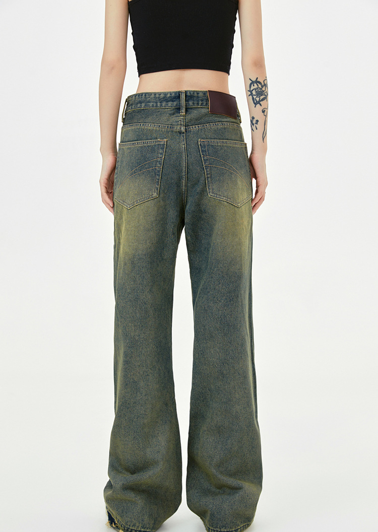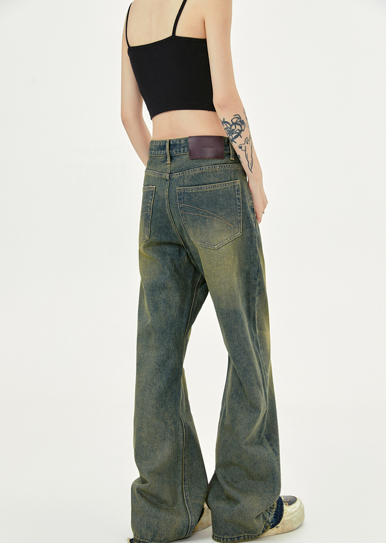 MADEEXTREME Retro Nostalgic Washed Wasteland Flanged Wide-leg Jeans