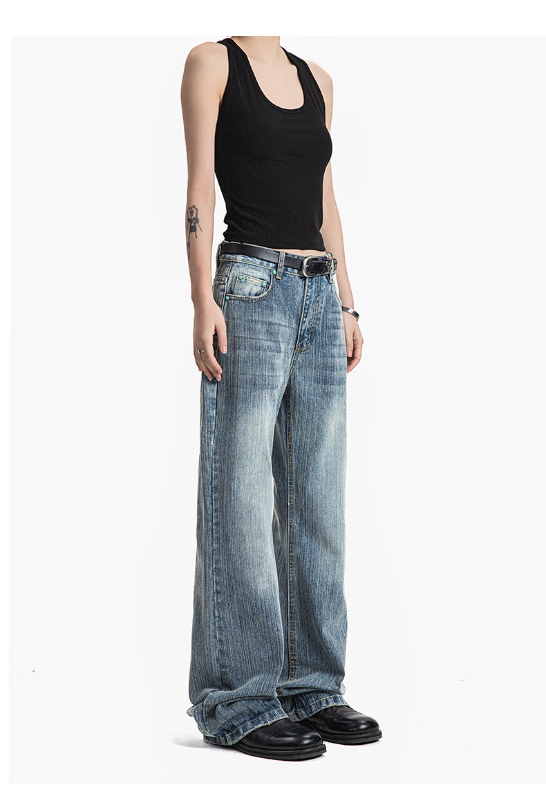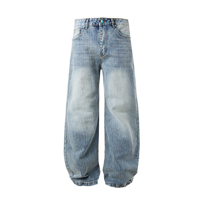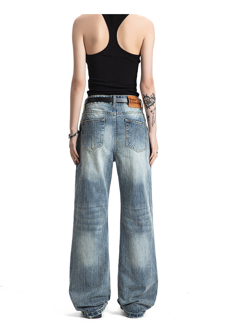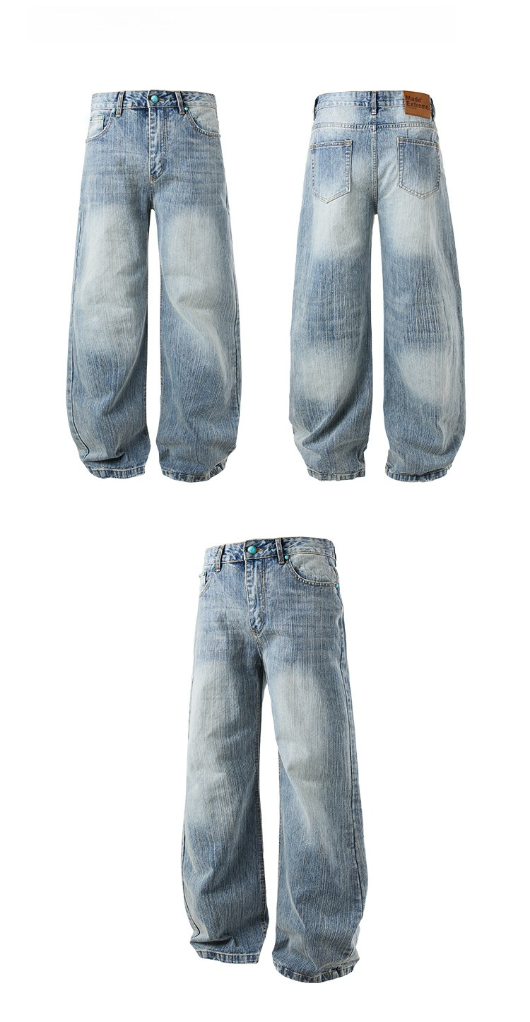 MADEEXTREME Slub Washed Cat Whiskers Versatile Straight Jeans