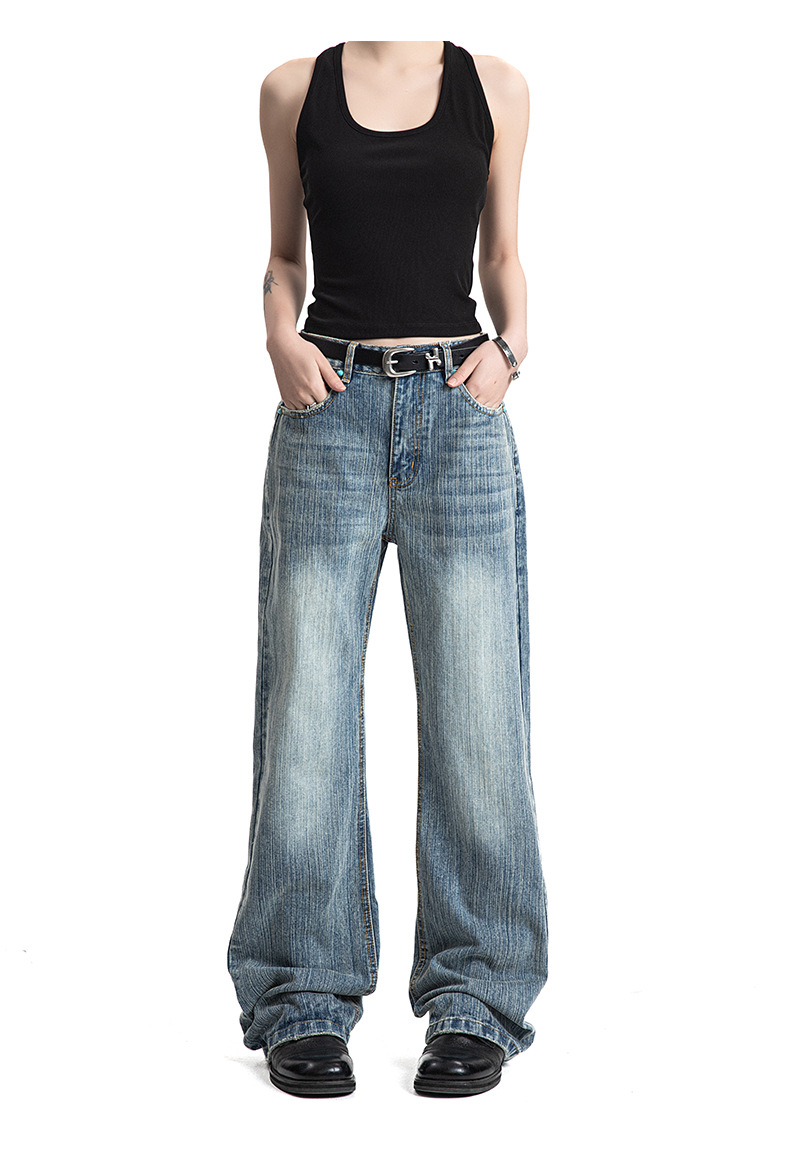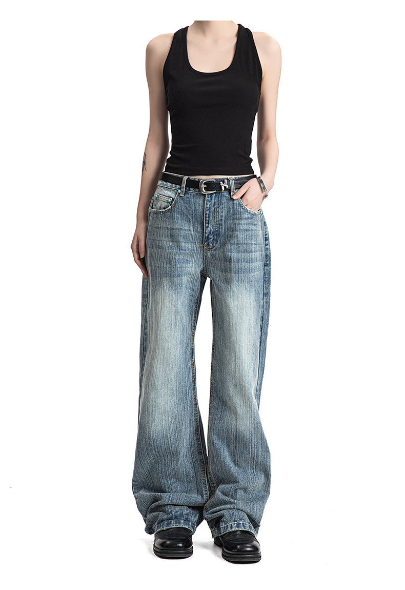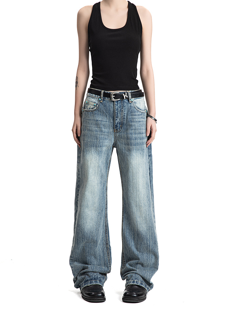 MADEEXTREME Slub Washed Cat Whiskers Versatile Straight Jeans