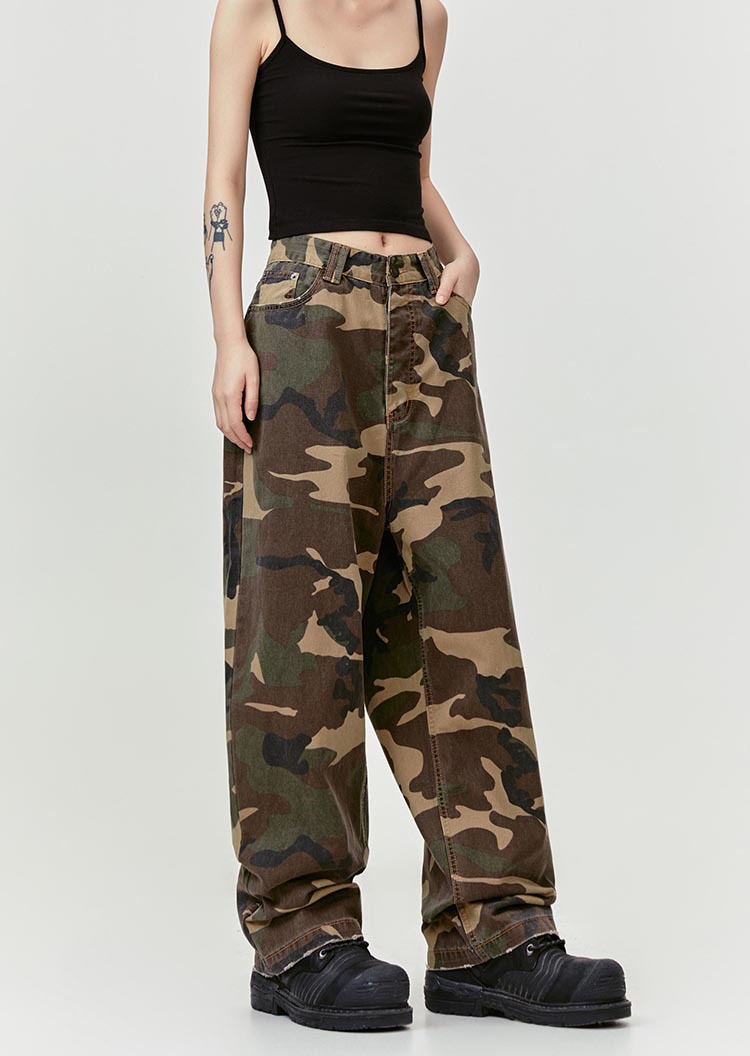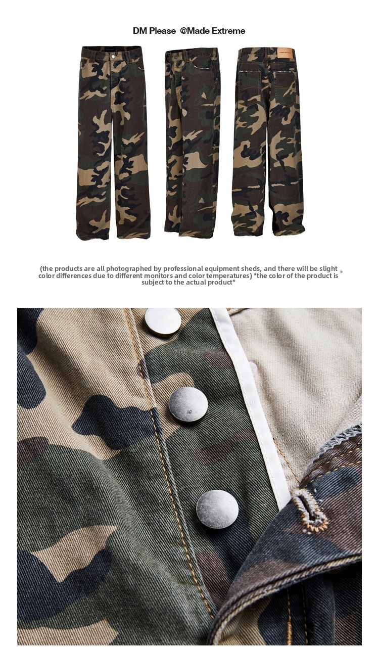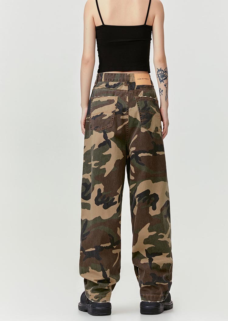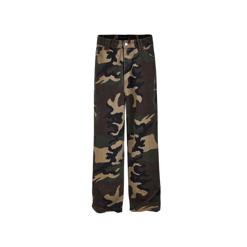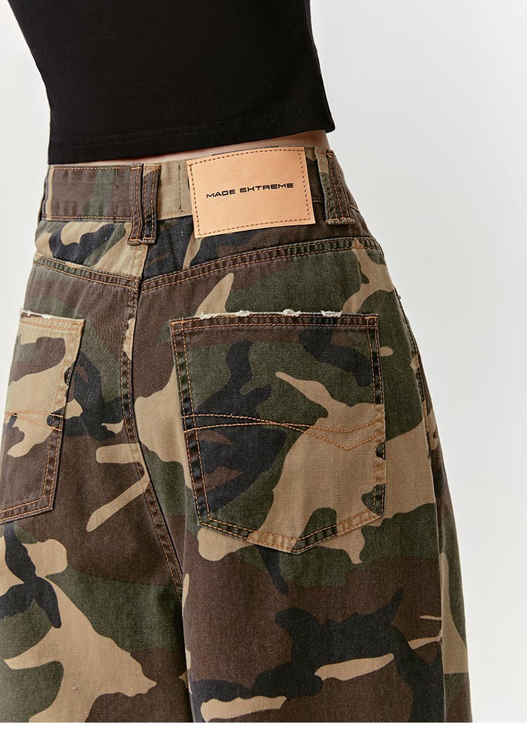 MADEEXTREME Straight Camouflage Pants Washed and Old Wide-leg Trousers