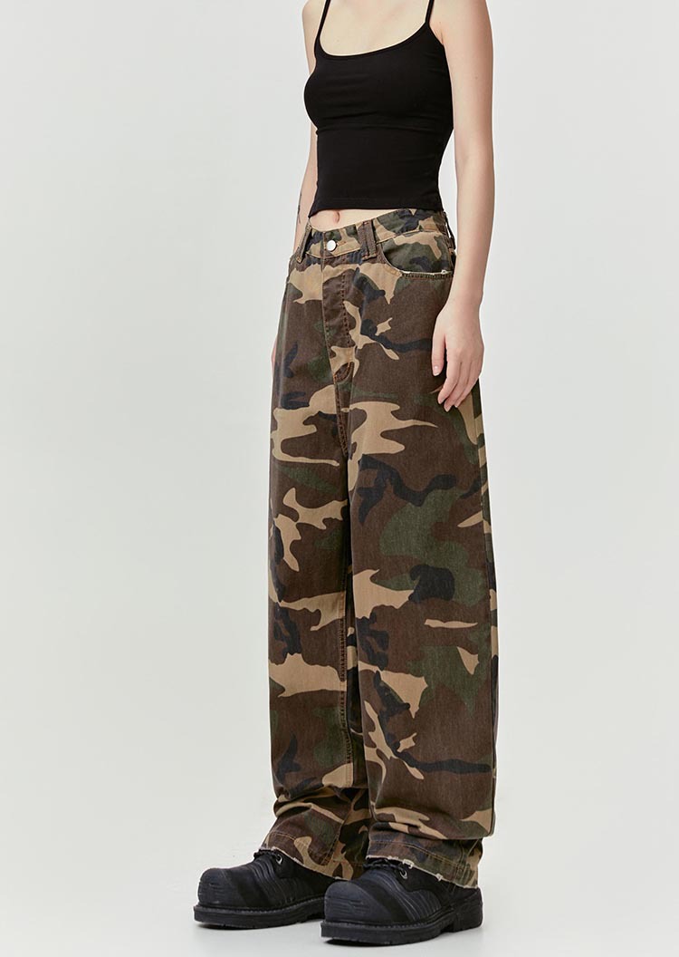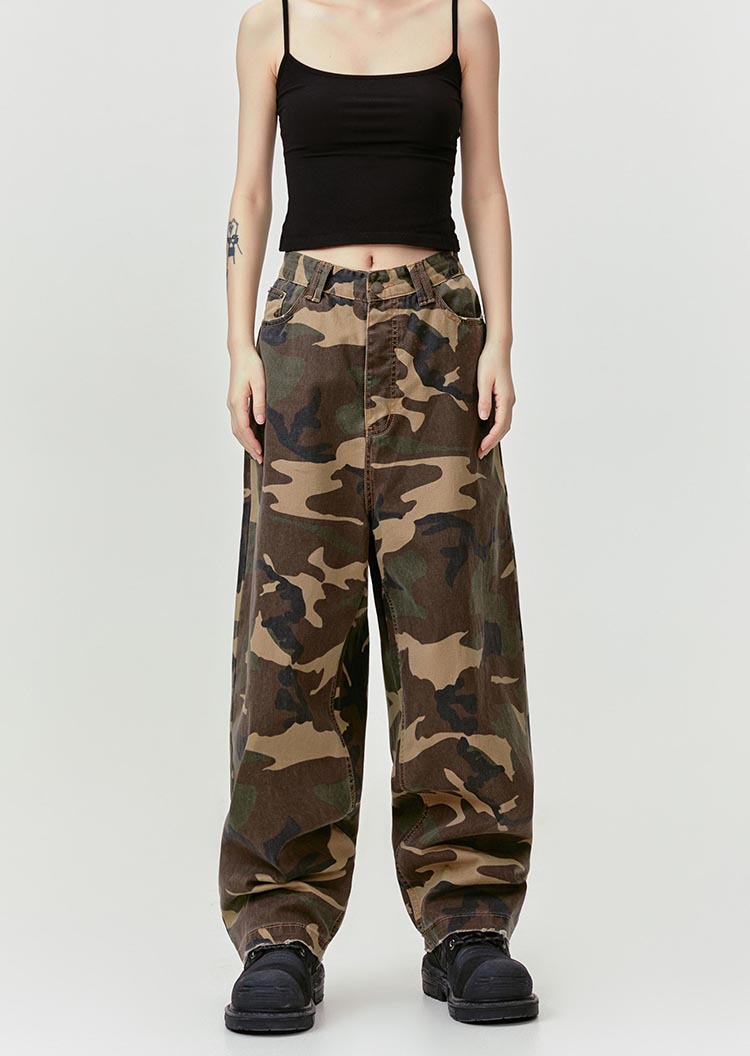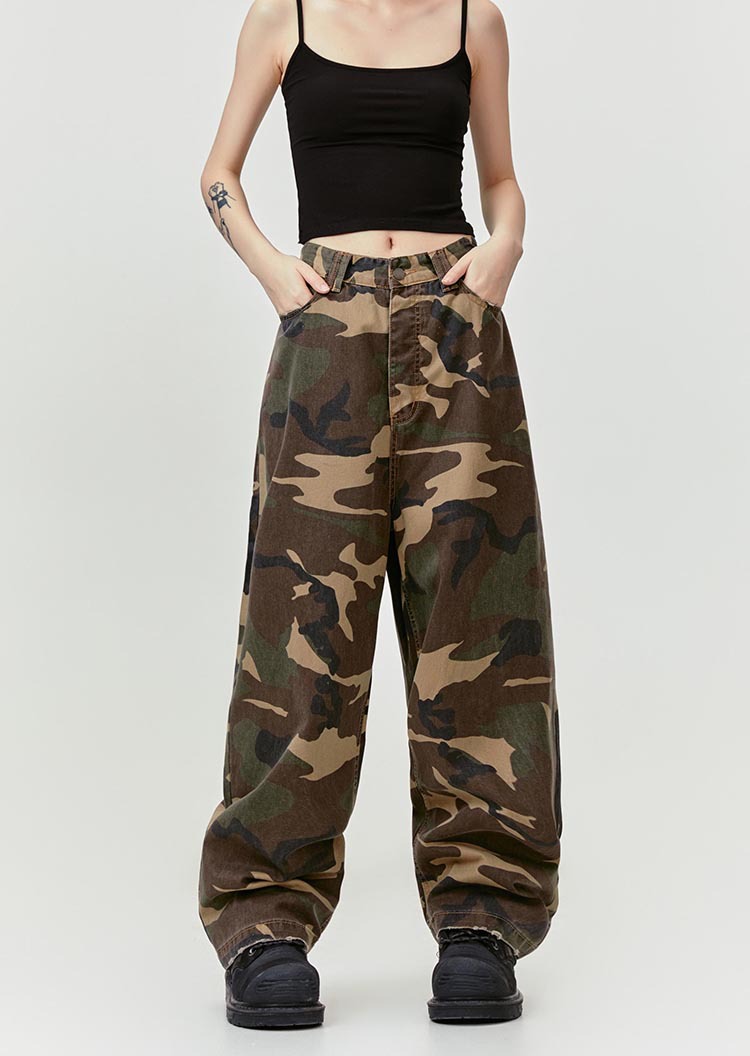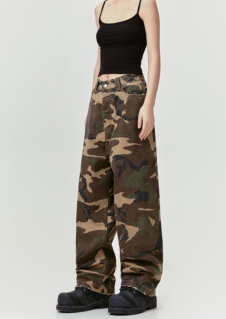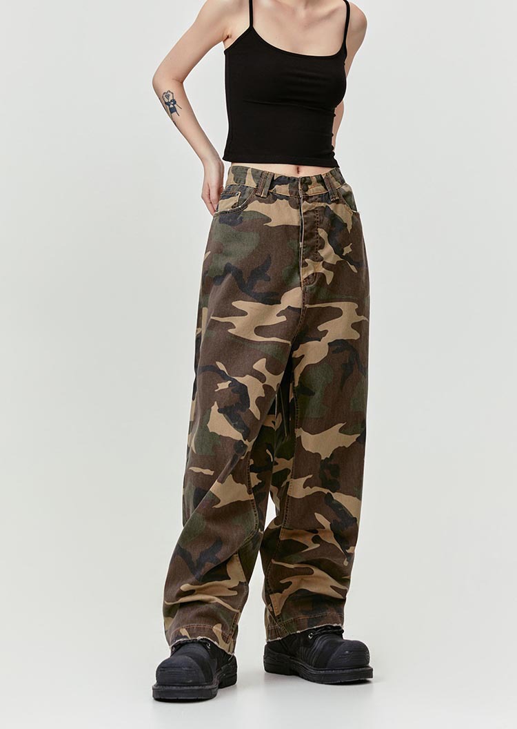 MADEEXTREME Straight Camouflage Pants Washed and Old Wide-leg Trousers
