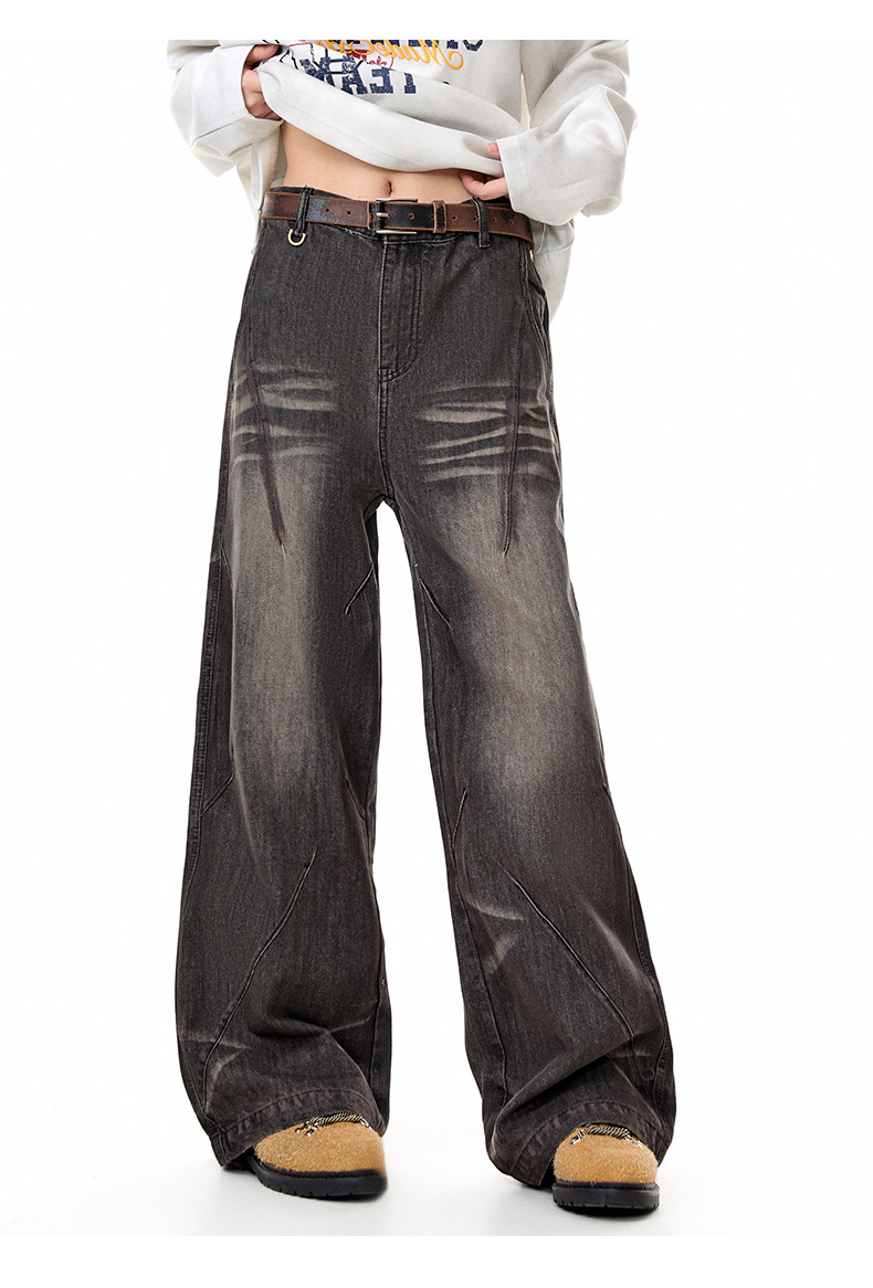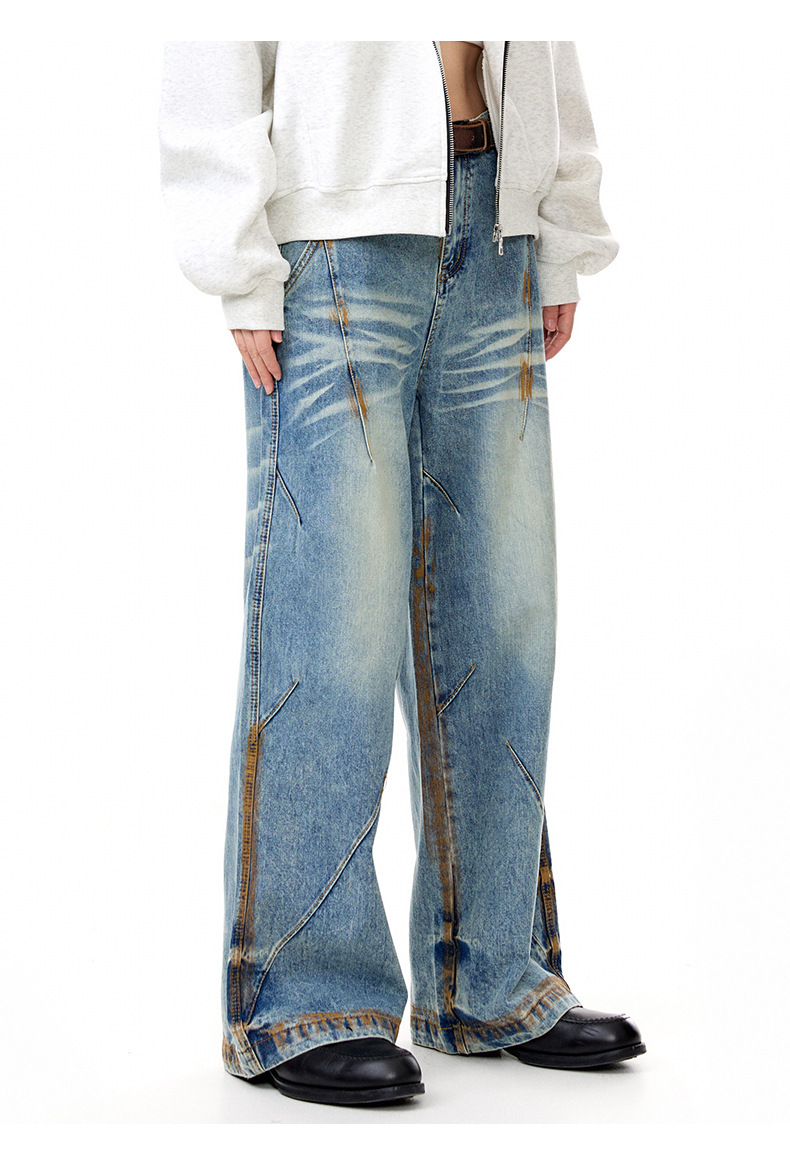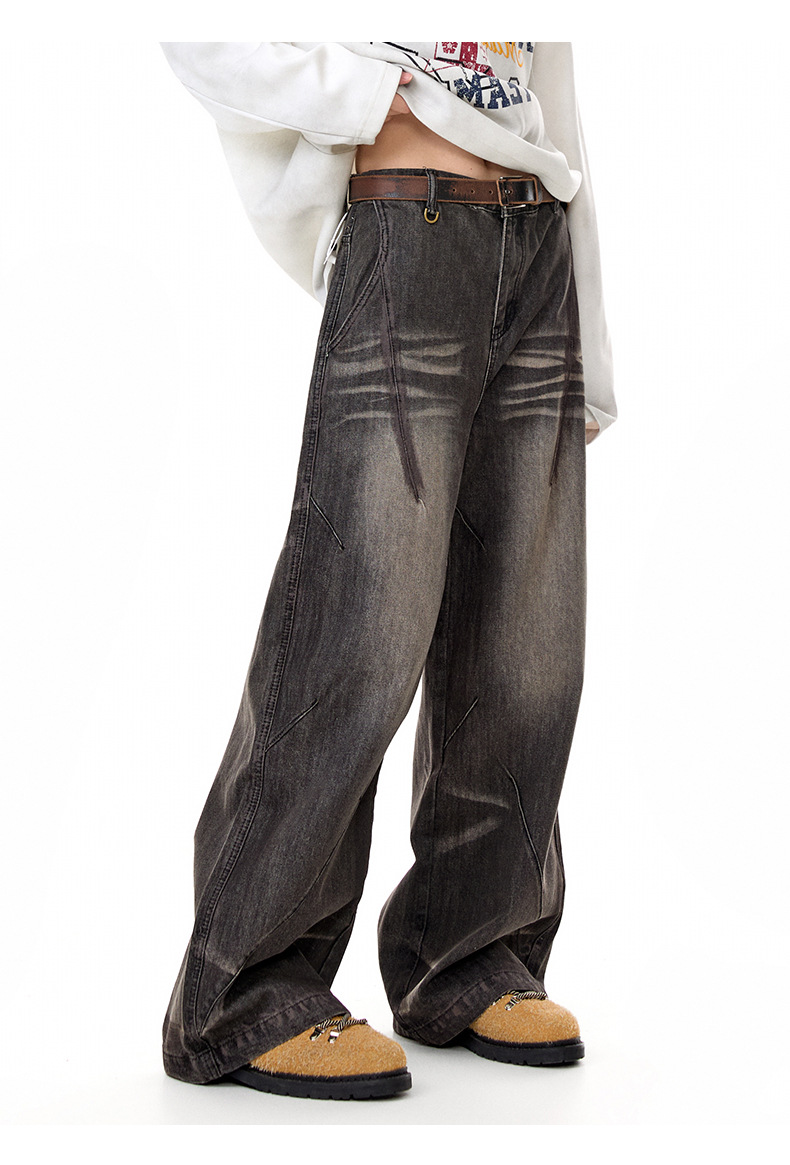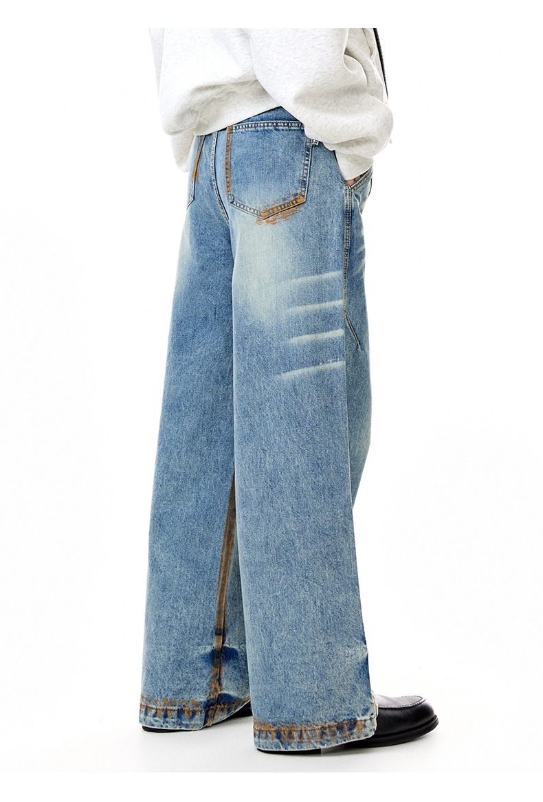 MADEEXTREME Vintage Daddy Dirty-dyed Pleated Wide-leg Jeans