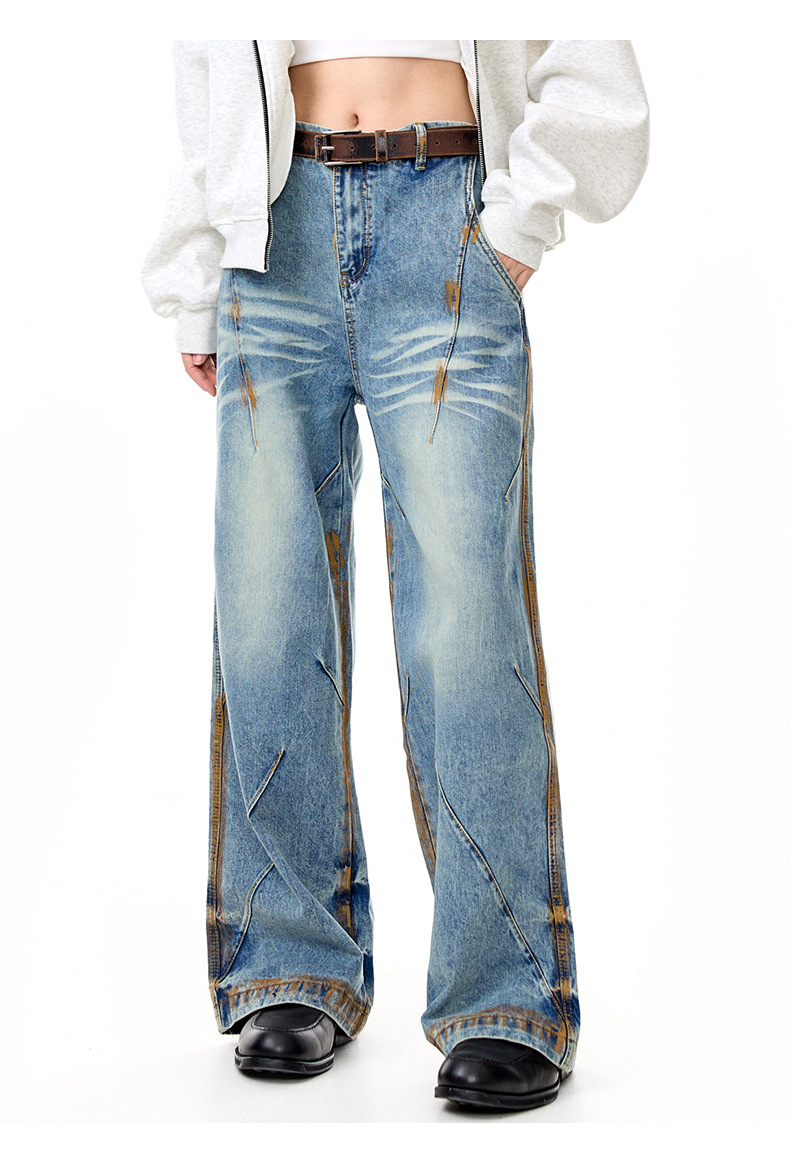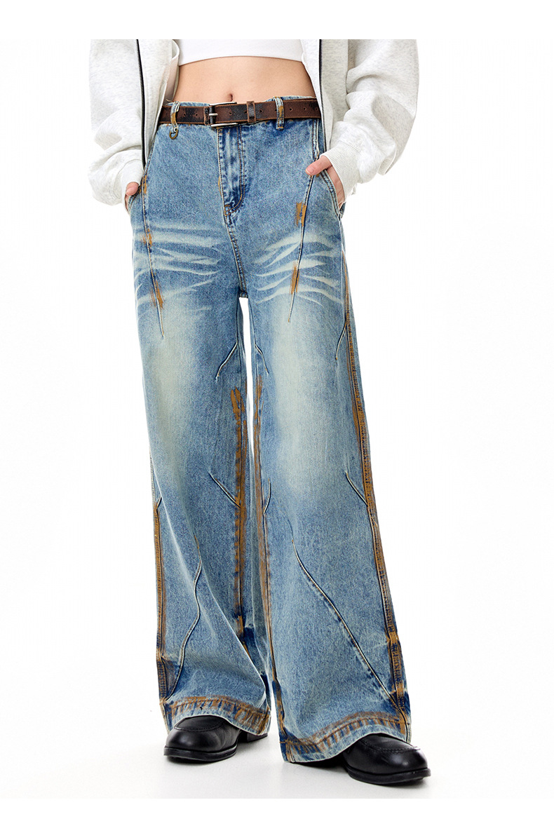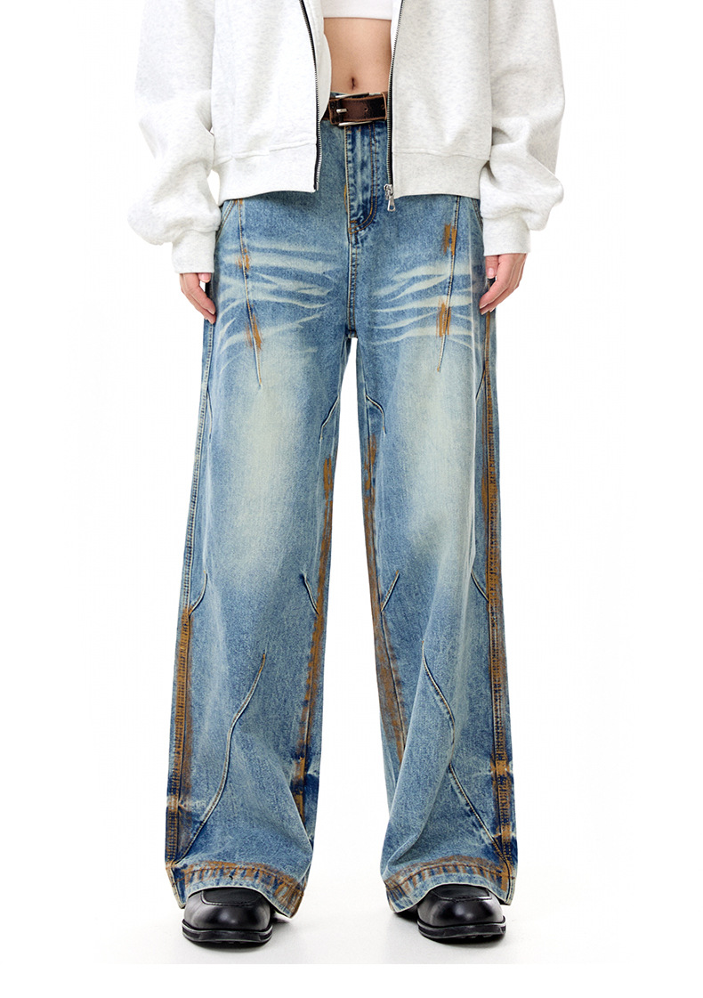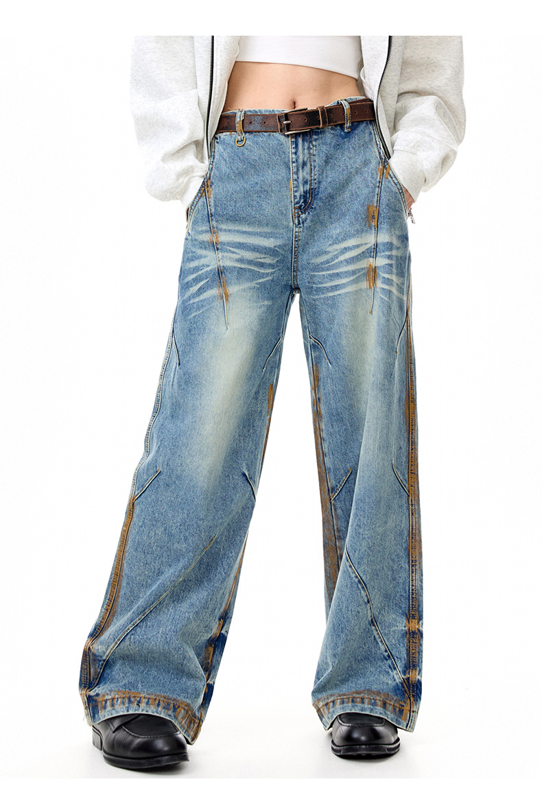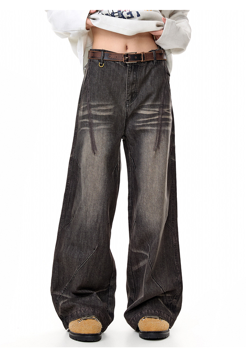 MADEEXTREME Vintage Daddy Dirty-dyed Pleated Wide-leg Jeans