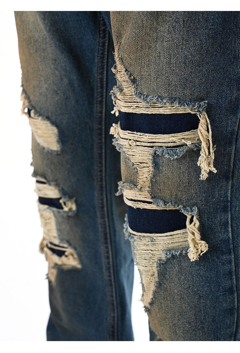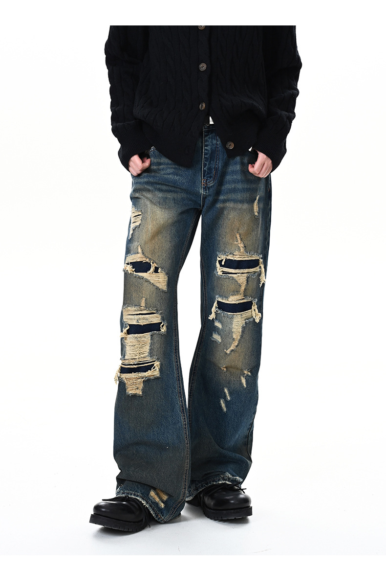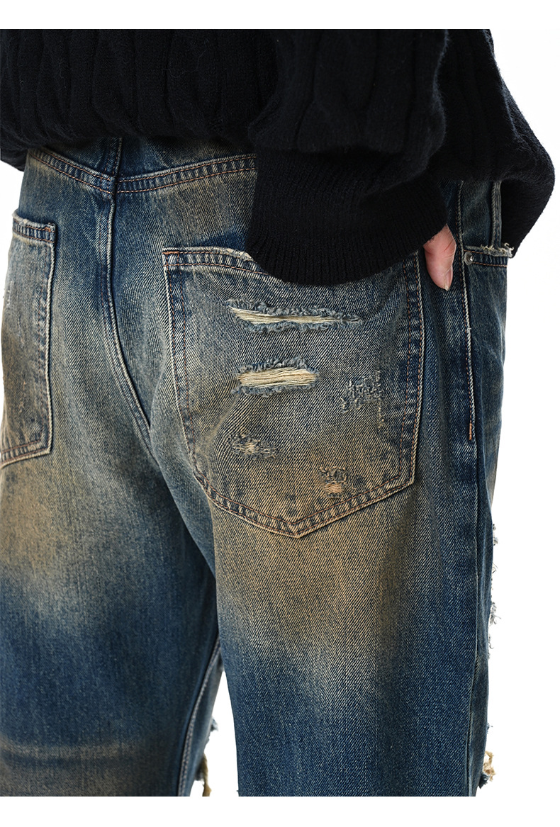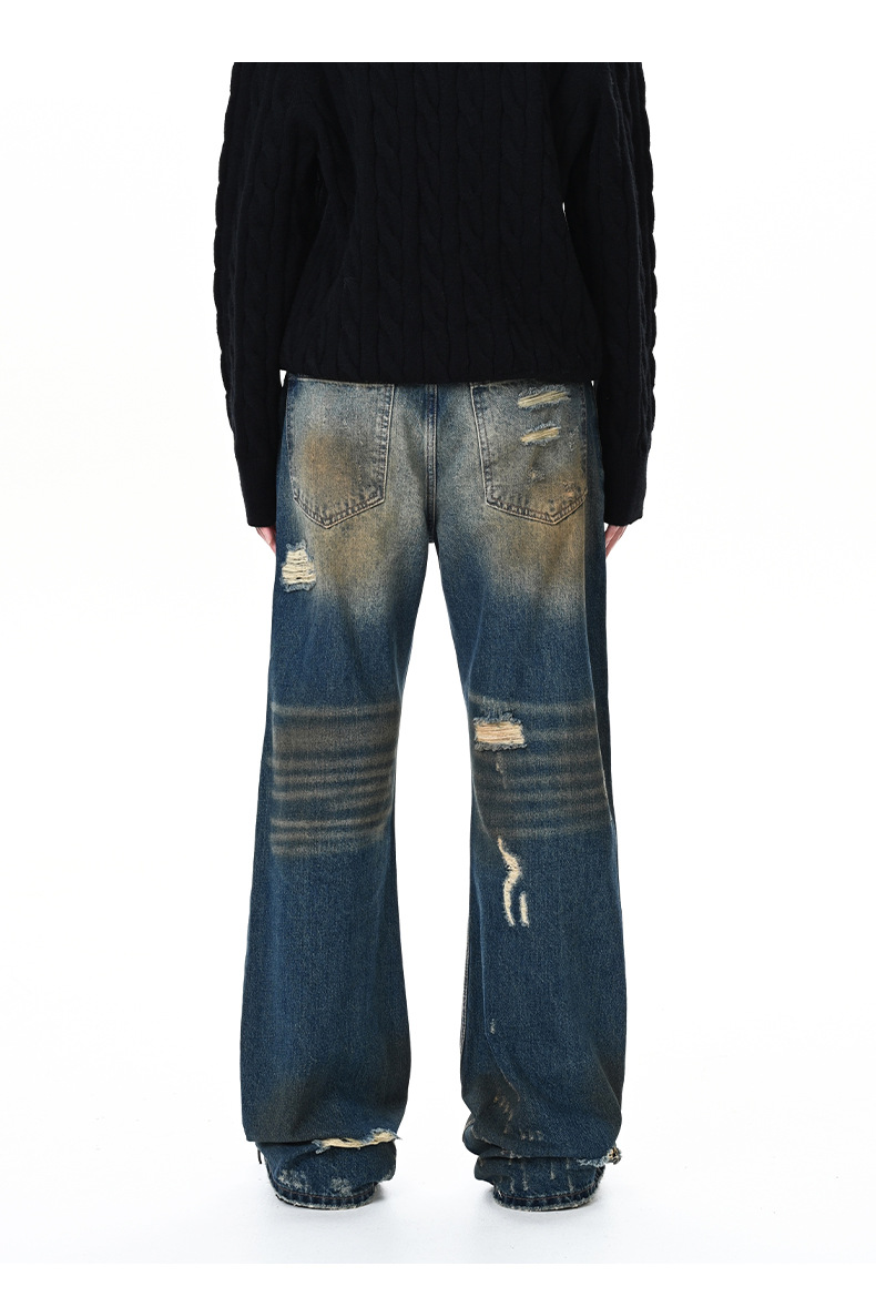 MADEEXTREME Washed Old Wrecked Cat Whiskers Spray Ma Liu Jeans