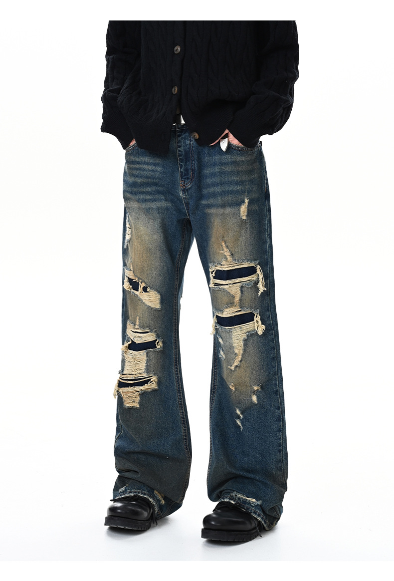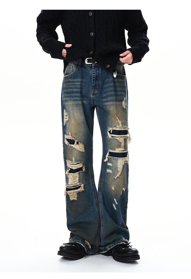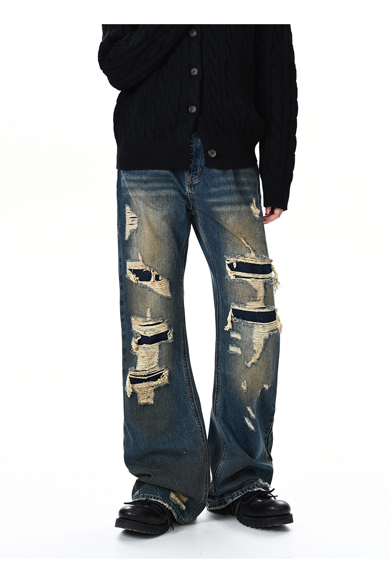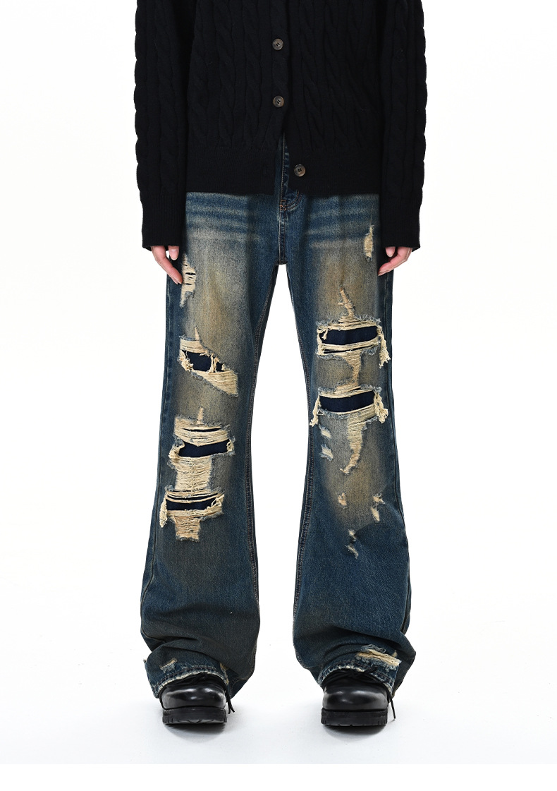 MADEEXTREME Washed Old Wrecked Cat Whiskers Spray Ma Liu Jeans