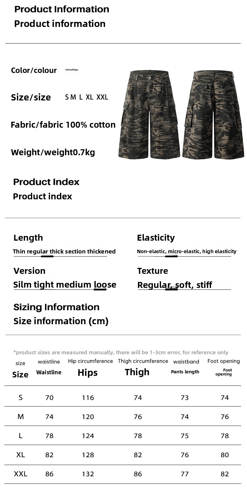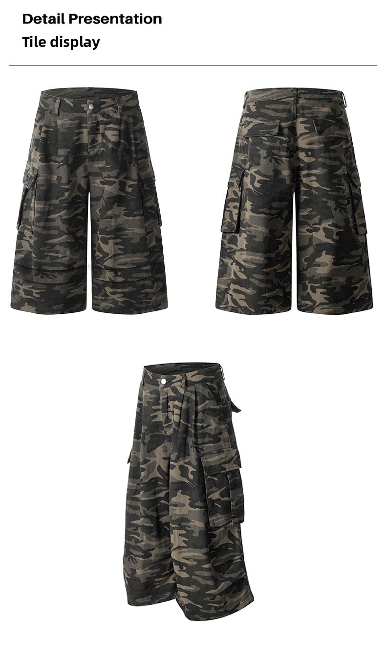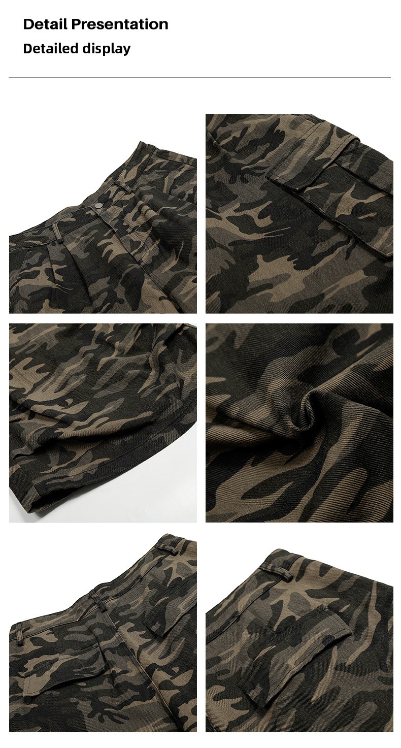 OREETAShu Retro Straight Camouflage Tooling Shorts Loose Seven-point Camouflage Pants