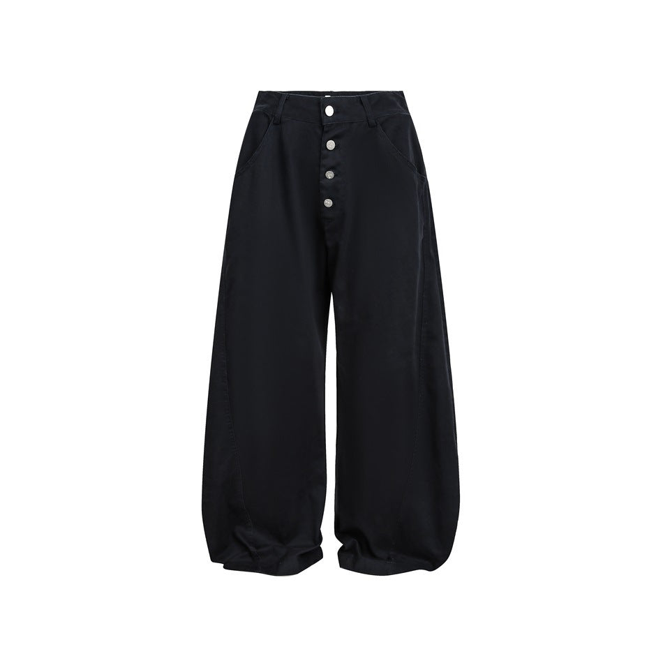 Step into a world of retro charm and contemporary style with our Wide-Leg Flared Trousers. Designed with a unique button-front closure, this piece offers a relaxed yet sophisticated silhouette that effortlessly emphasizes your leg length. The loose-fit cut not only provides ultimate comfort but also embodies the essence of youthful fashion trends.