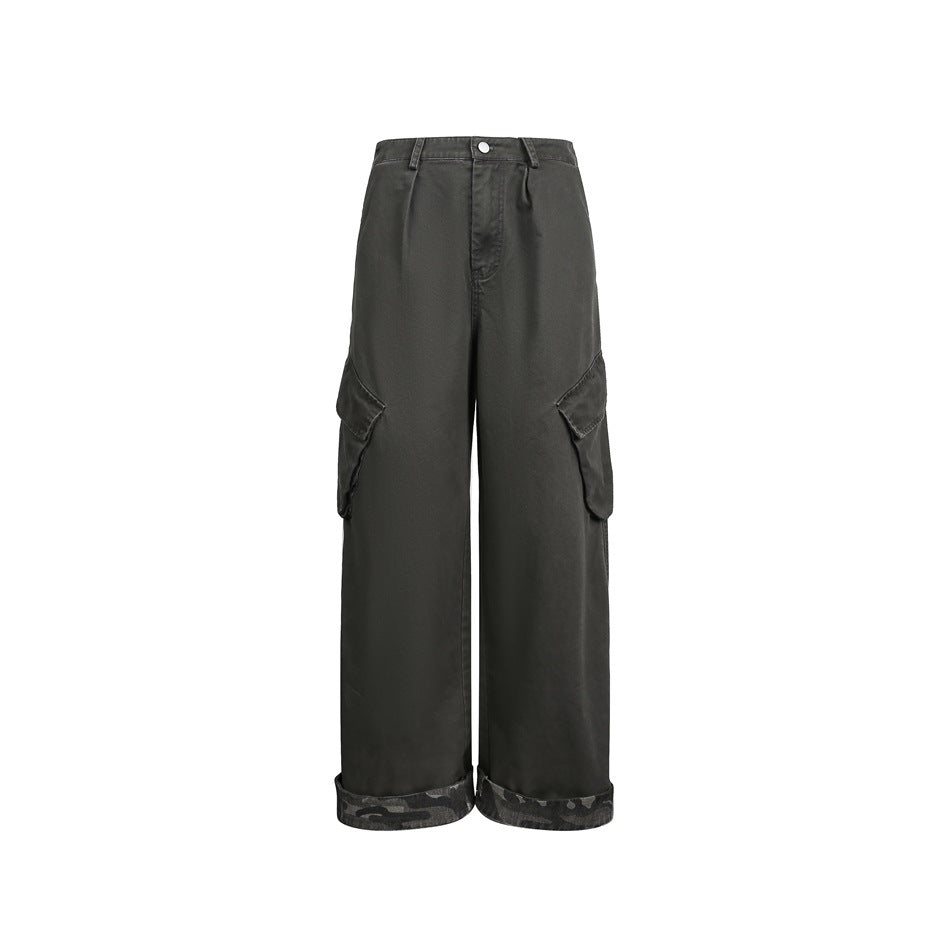 OUSWE Loose Big Pocket Flanged Camo Cotton Overalls Wide Leg Pants