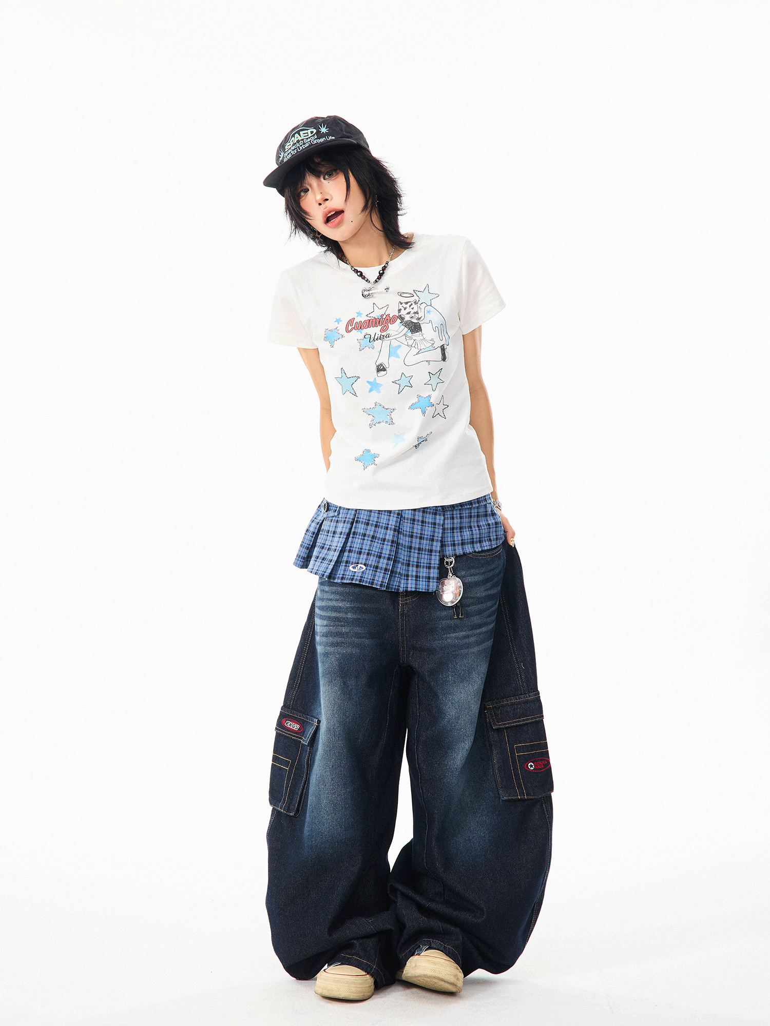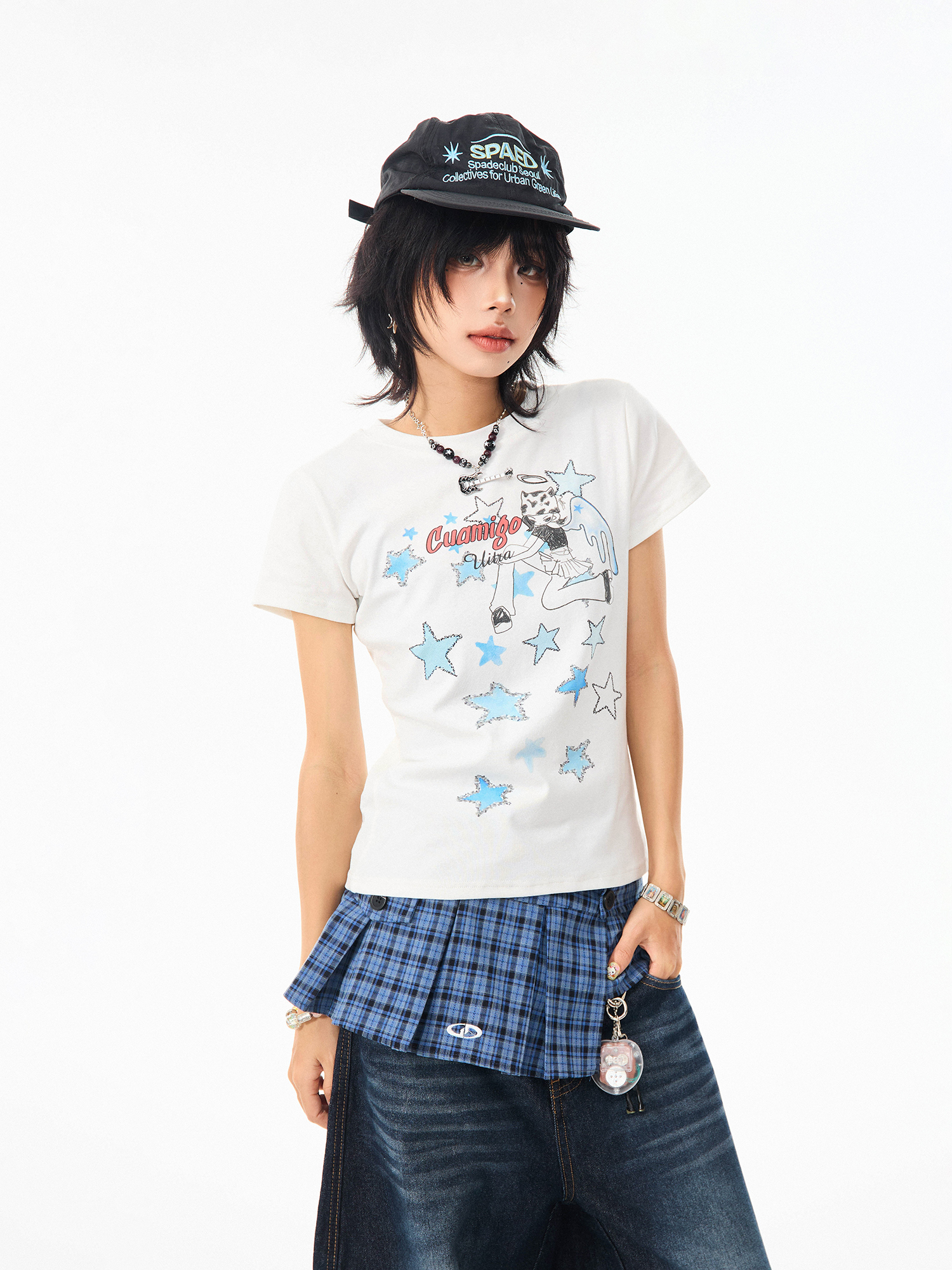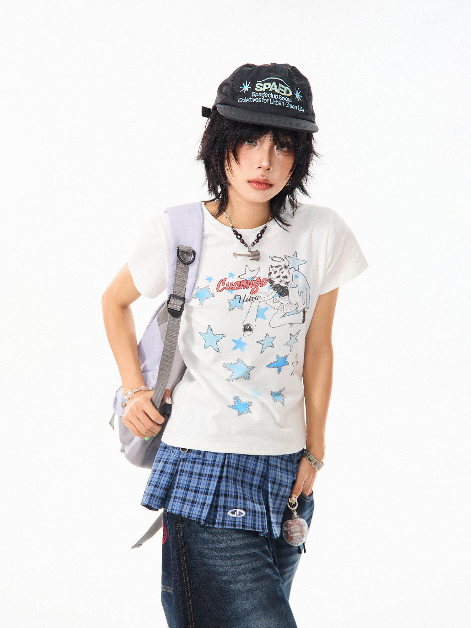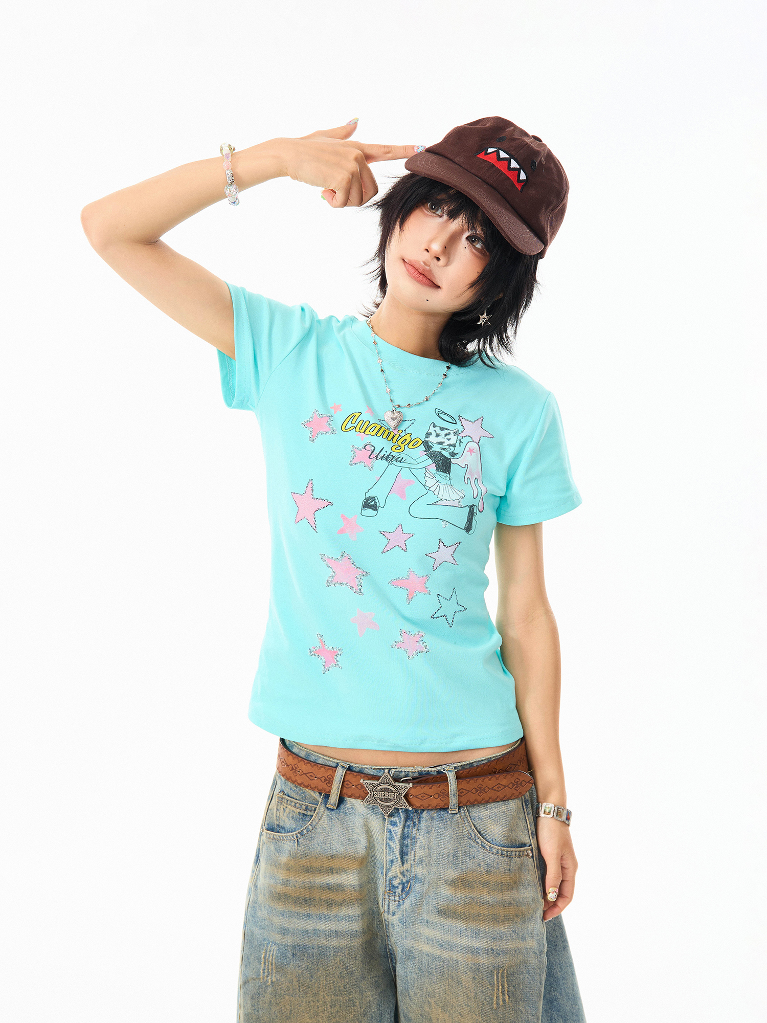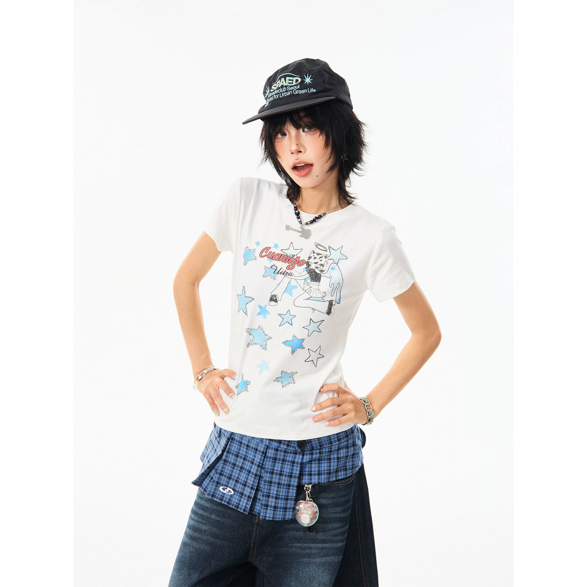 Jimmy The Crew Star Girl Slim Skinny Shoulder Short Sleeve Top