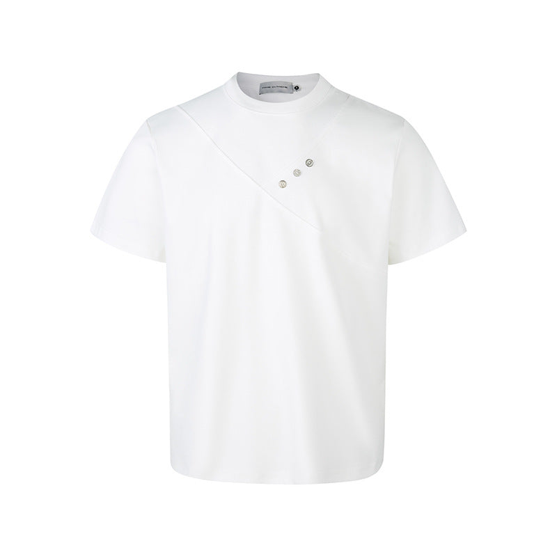 MADEEXTREME Deconstructed Splicing Button Crew Neck Casual Short Sleeve T-Shirt