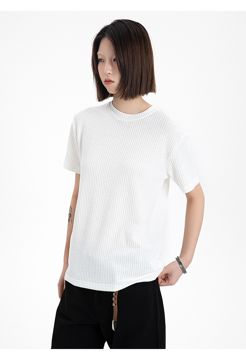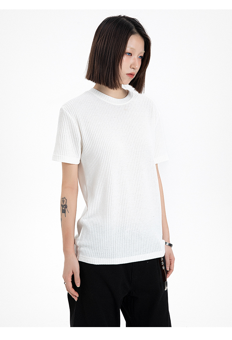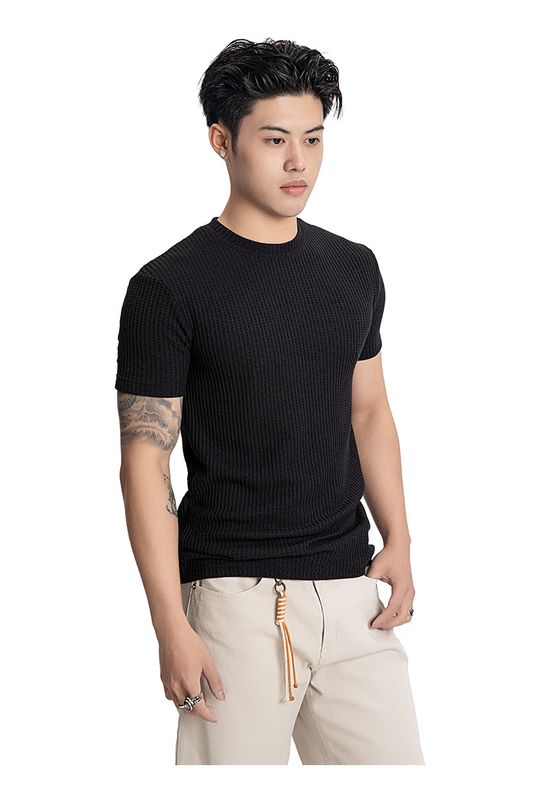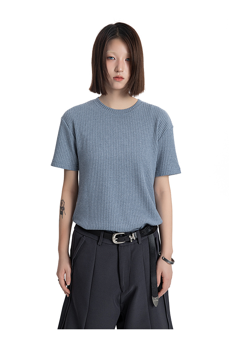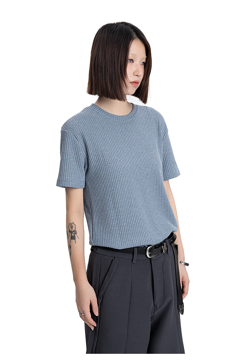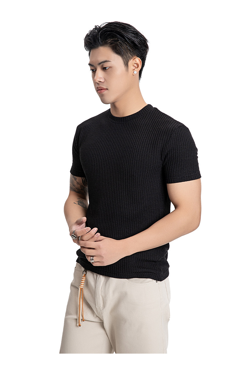 MADEEXTREME Old Money Style Knitted Crew Neck Fit Stretch Short Sleeve T-Shirt