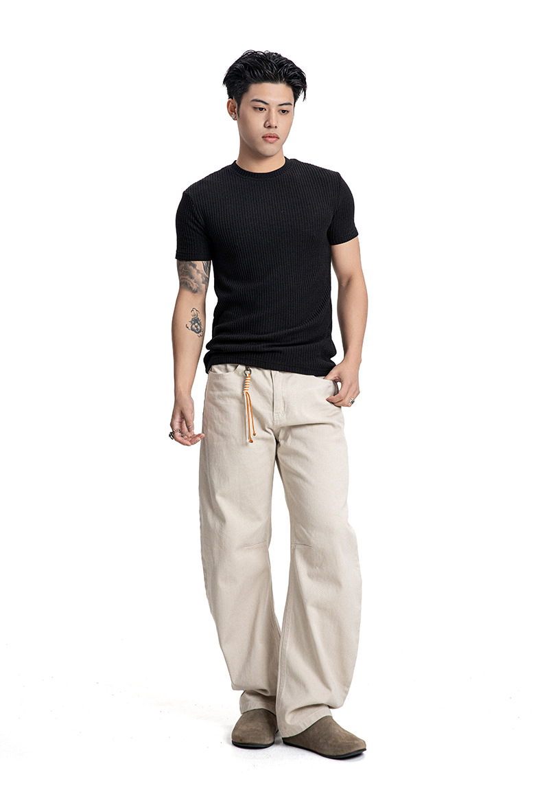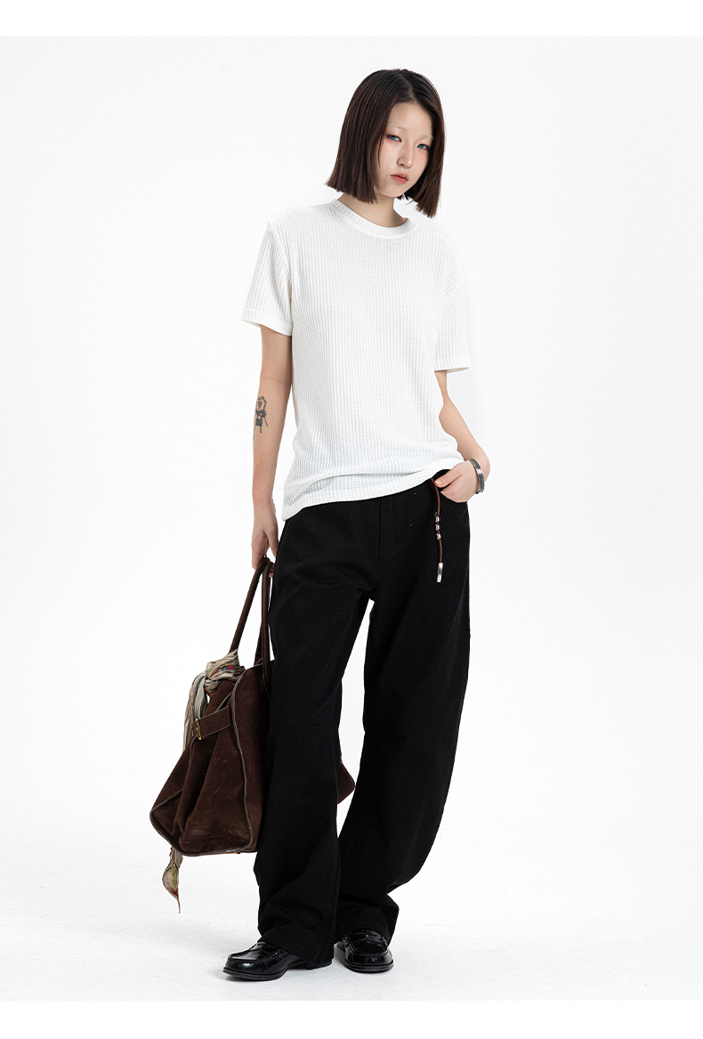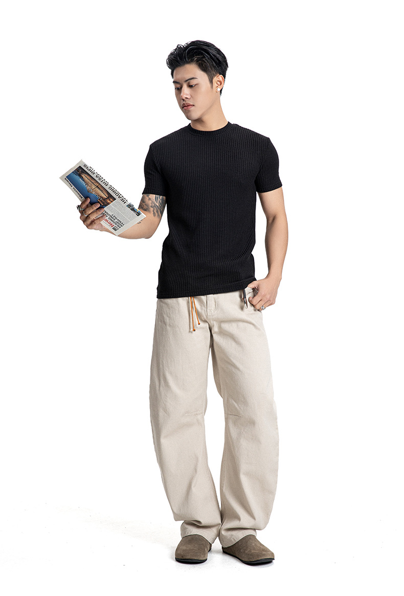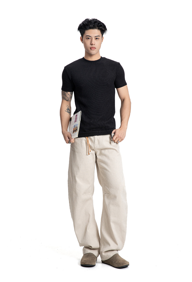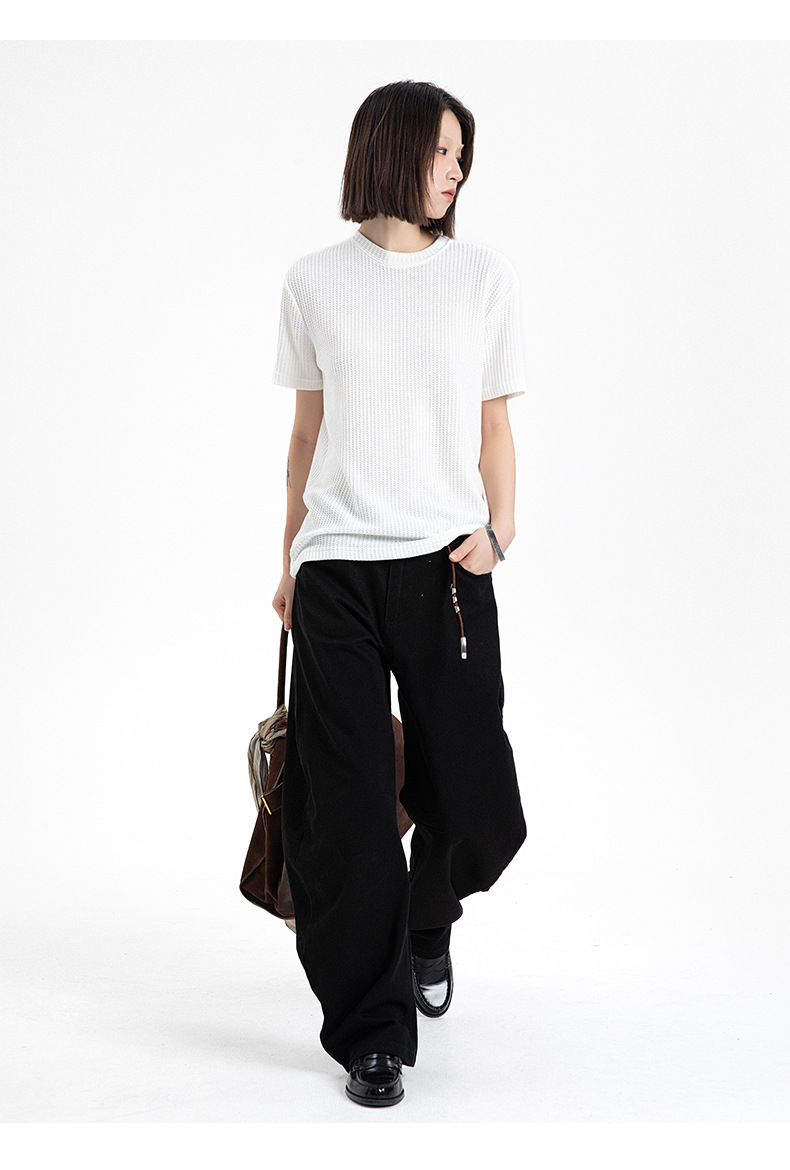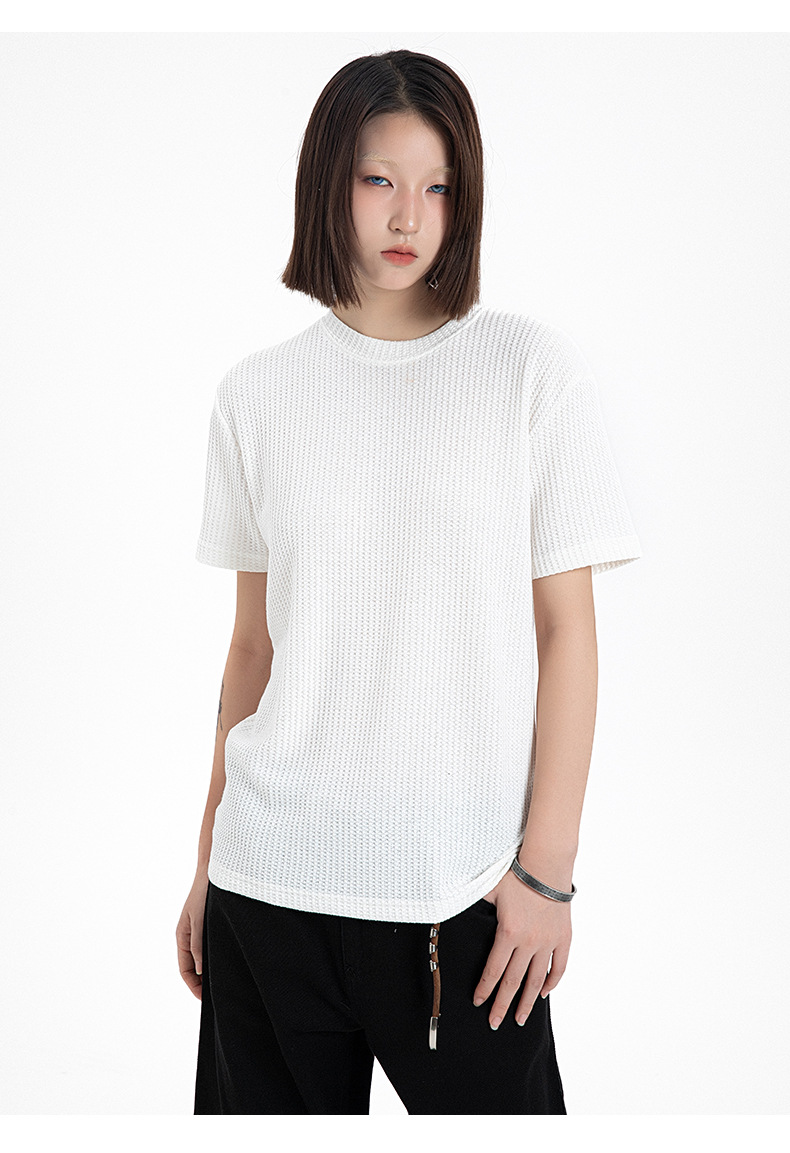 MADEEXTREME Old Money Style Knitted Crew Neck Fit Stretch Short Sleeve T-Shirt