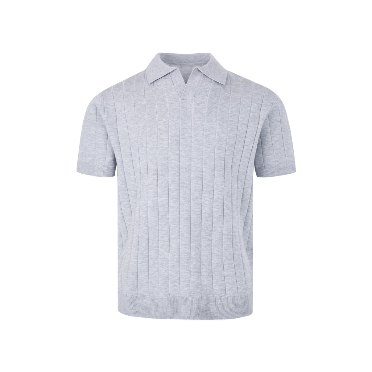 MADEEXTREME POLO Neck Vertical Texture Thread Hem Cuffs Knitted Short Sleeves