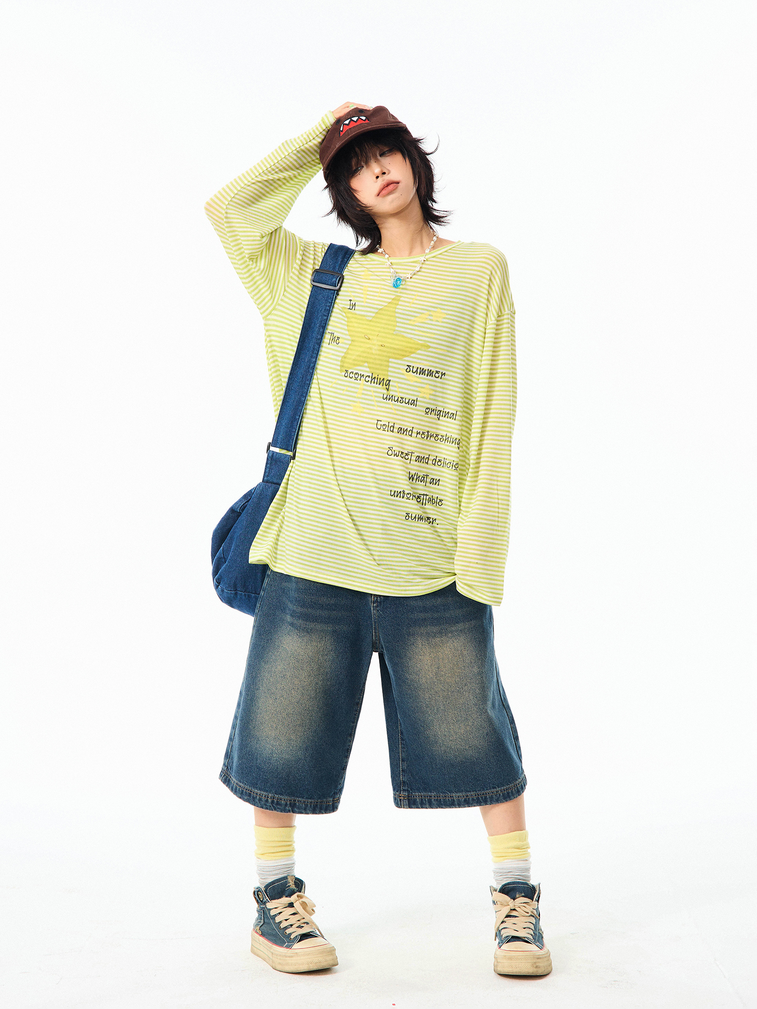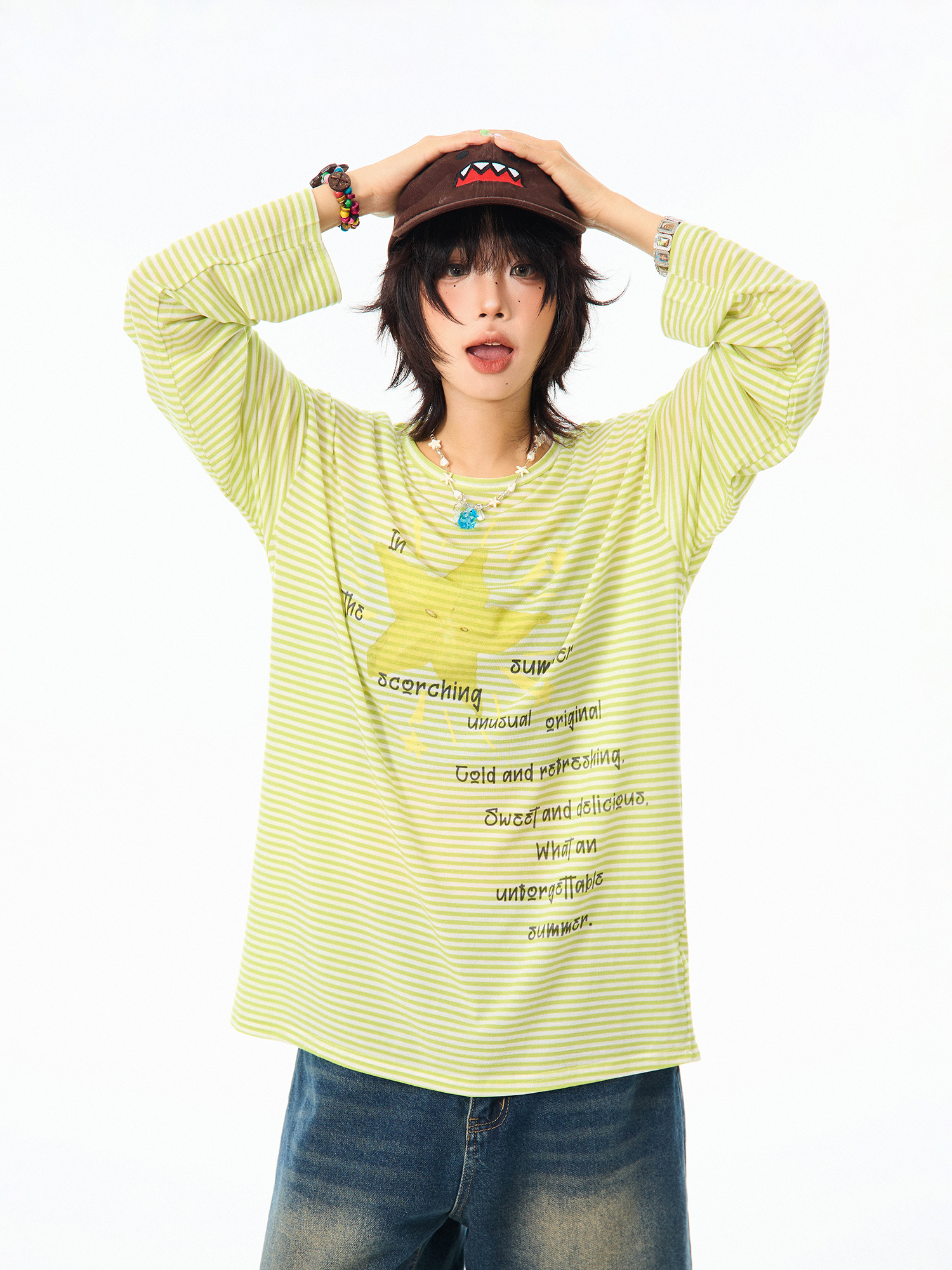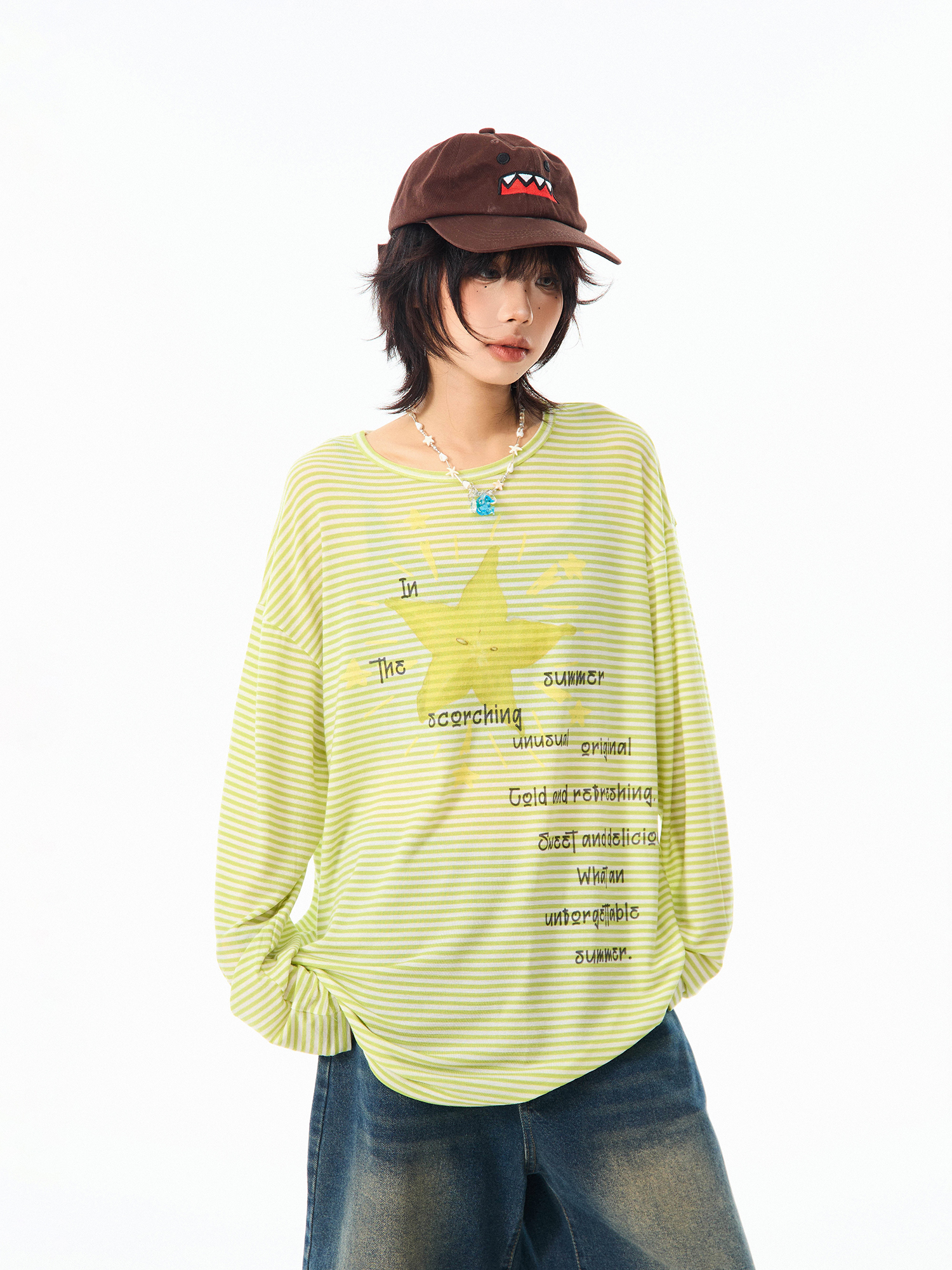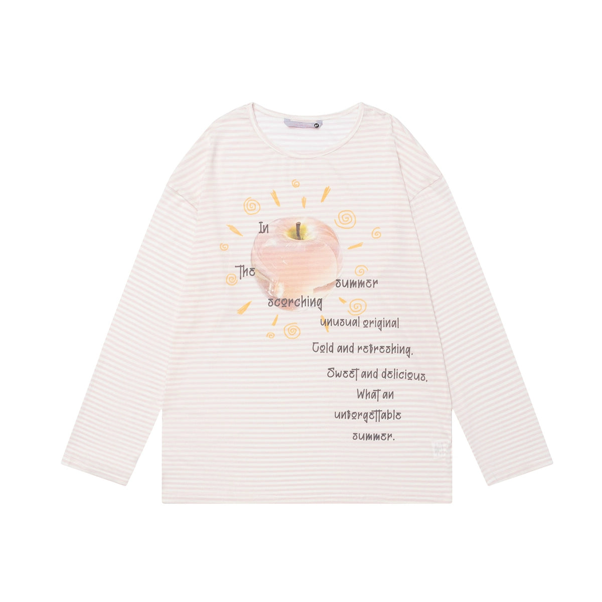 Jimmy The Crew Fruit Print Lazy Wind Loose Micro Transparent Sunscreen Blouse Long Sleeve T-Shirt