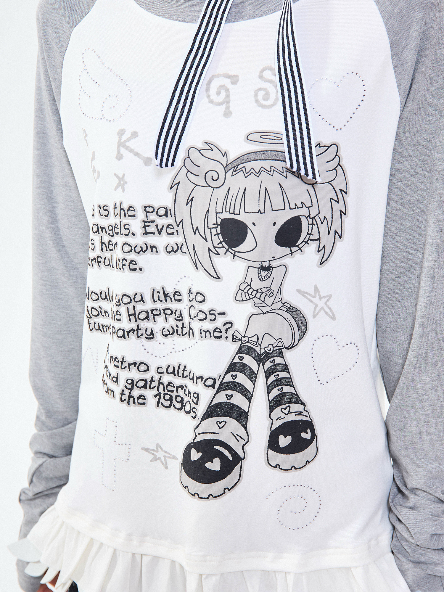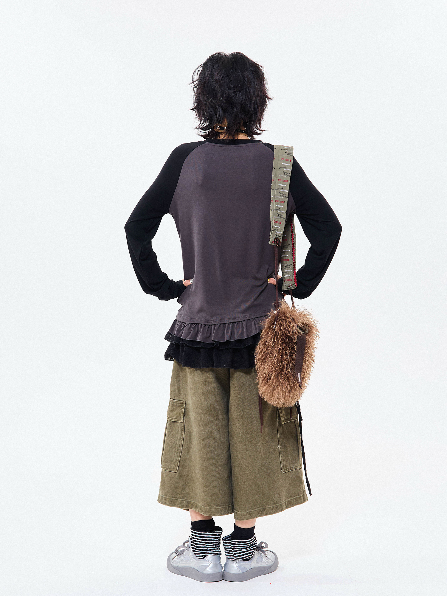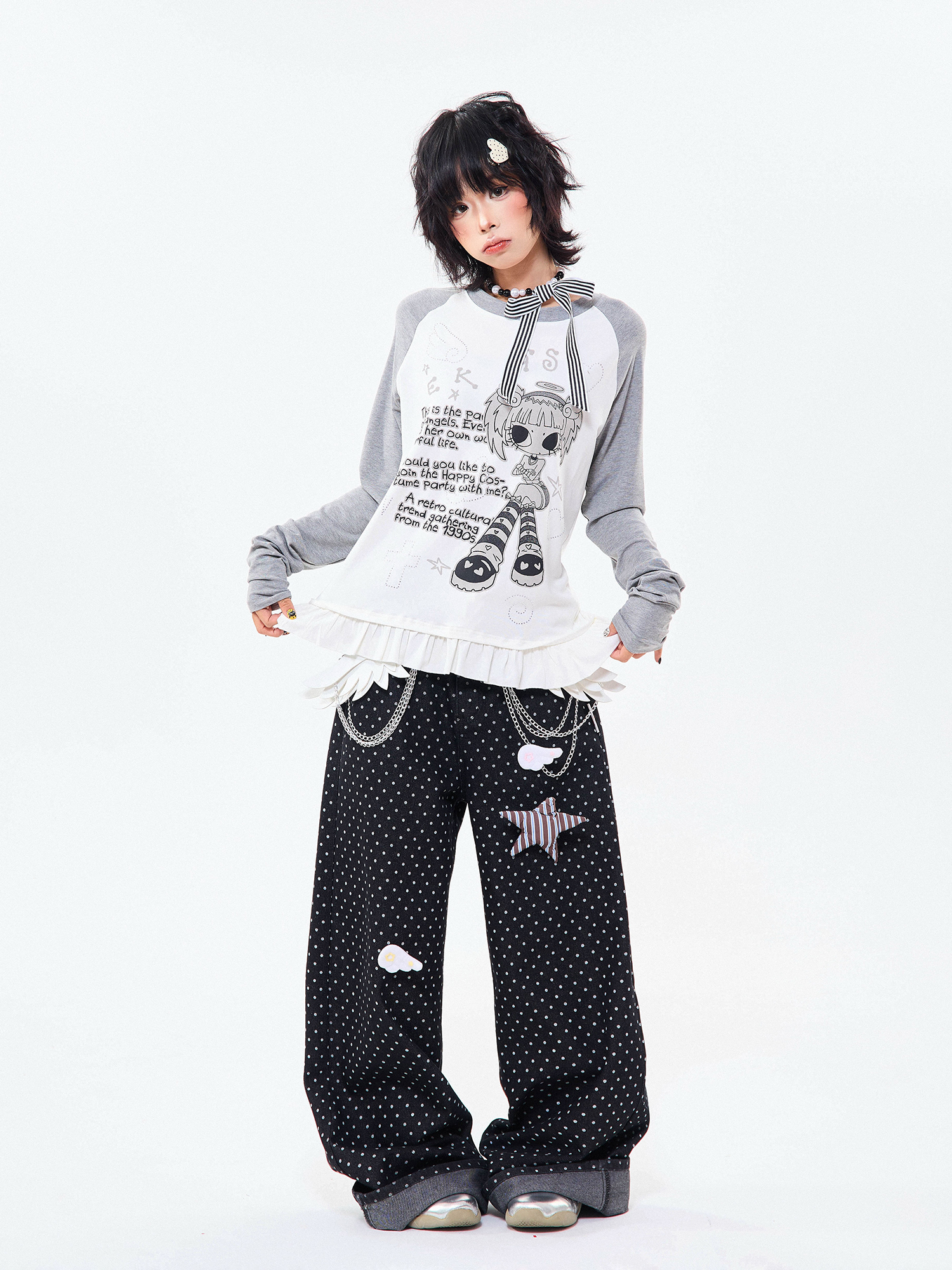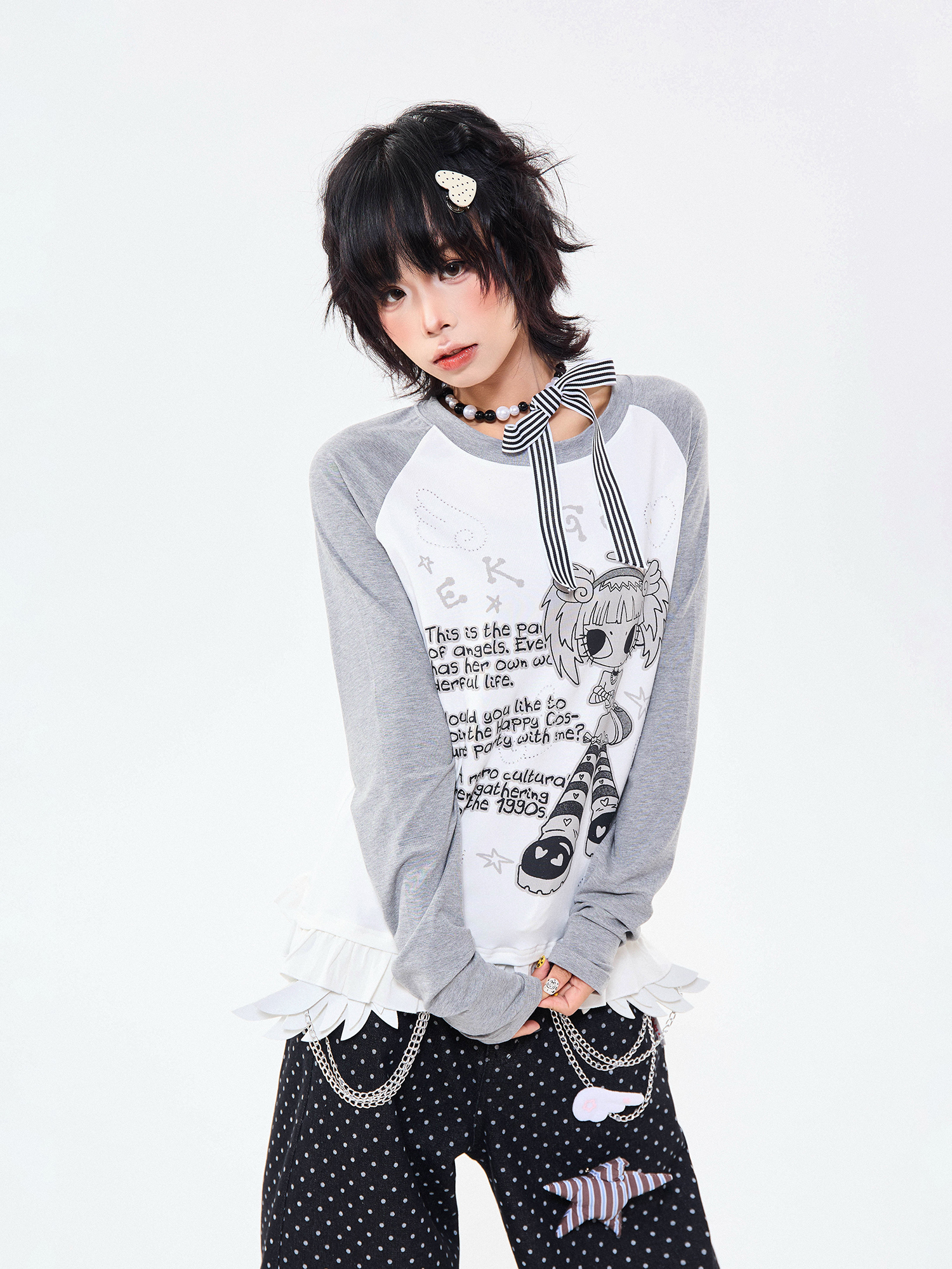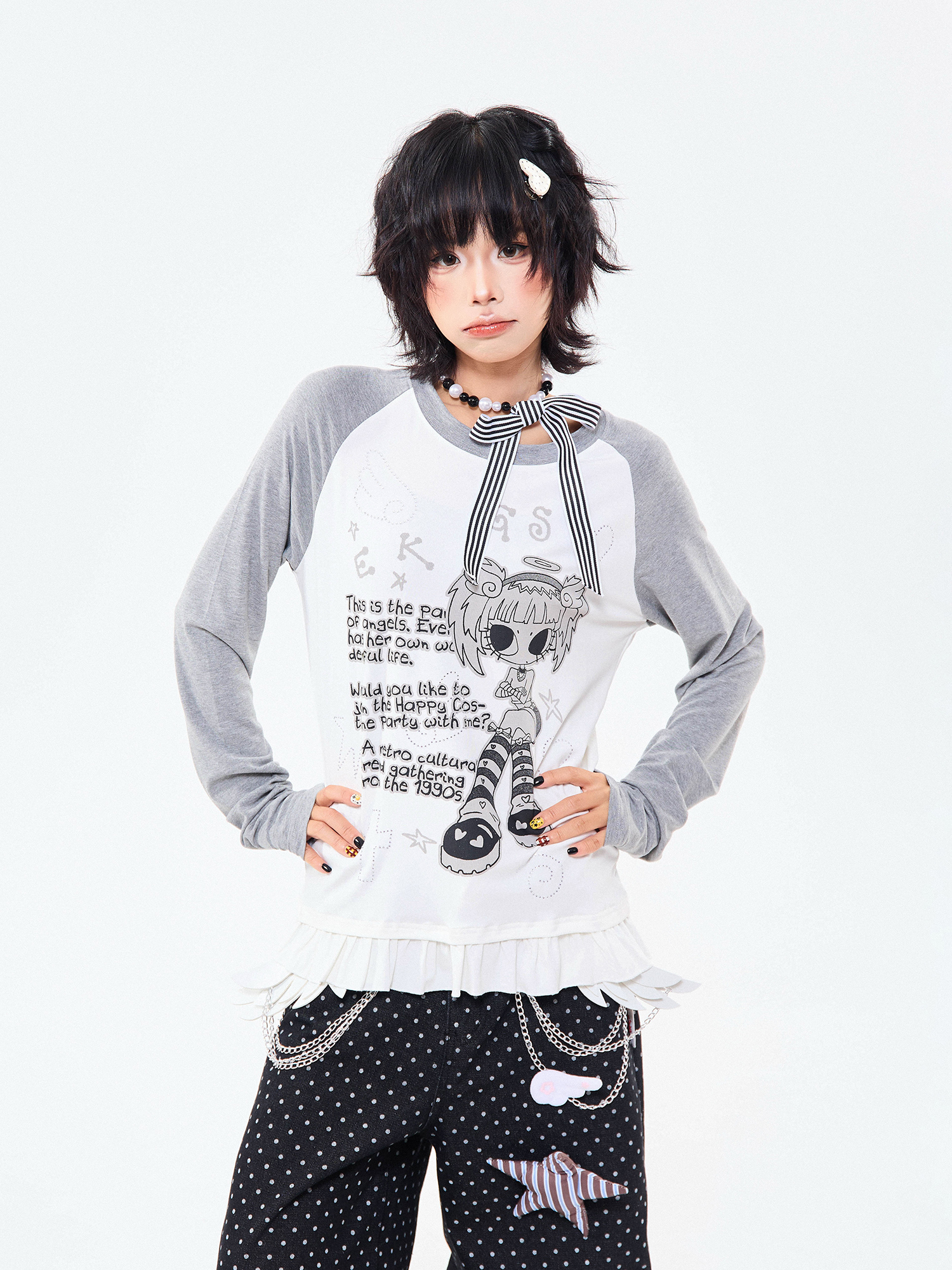 Jimmy The Crew Retro Girl Contrast Lace Long Sleeve Loose Skinny T-Shirt Top