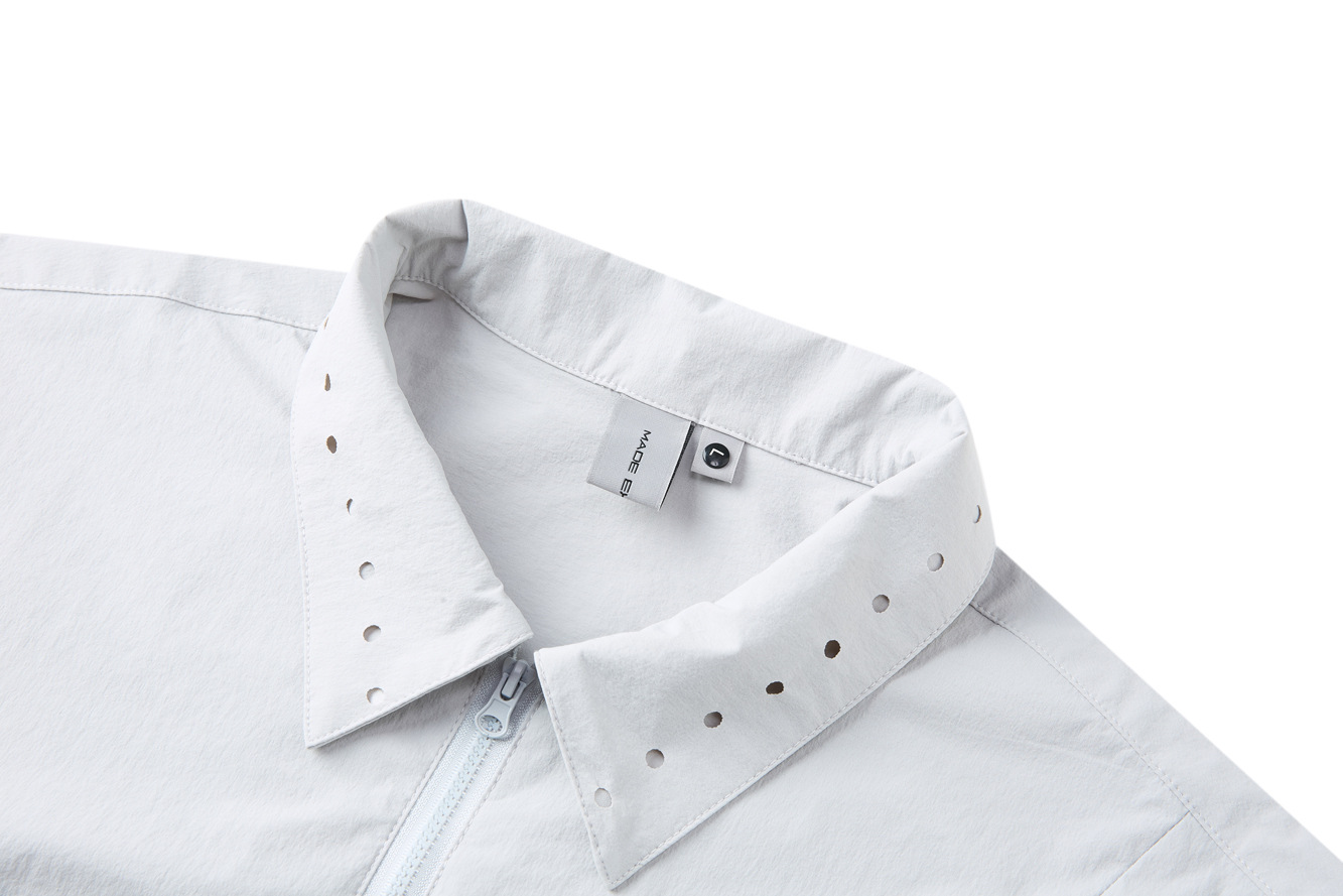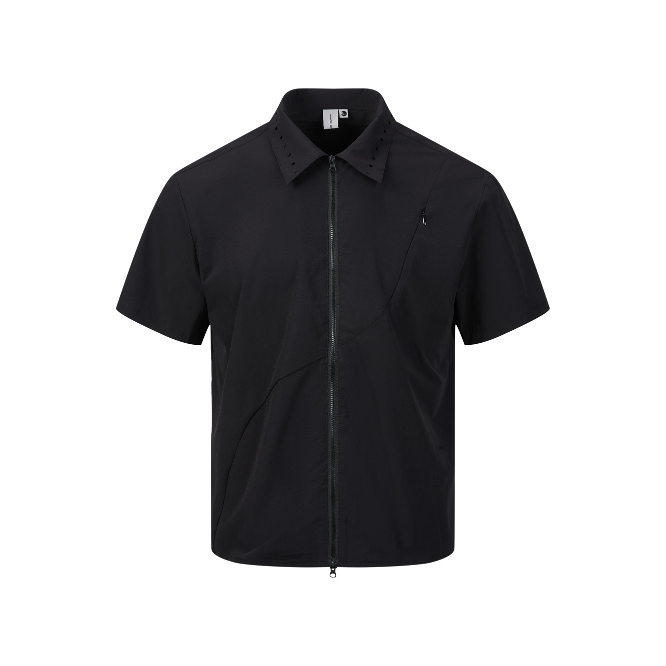 MADEEXTREME Laser Punching Oblique Zipper Splicing Basic Solid Color Short Sleeve