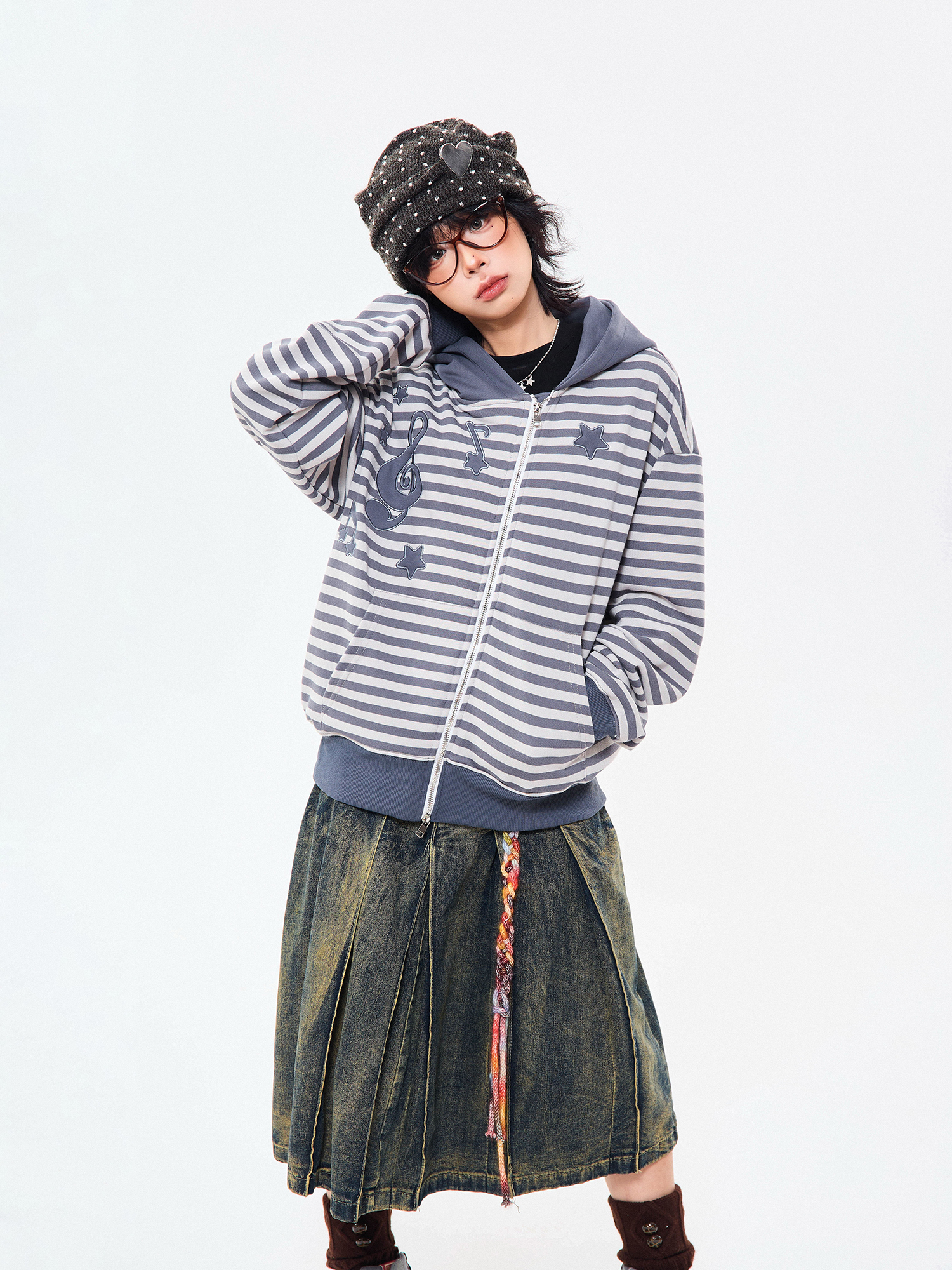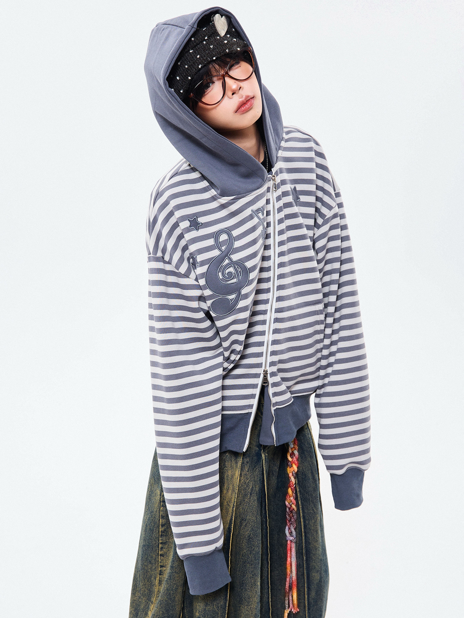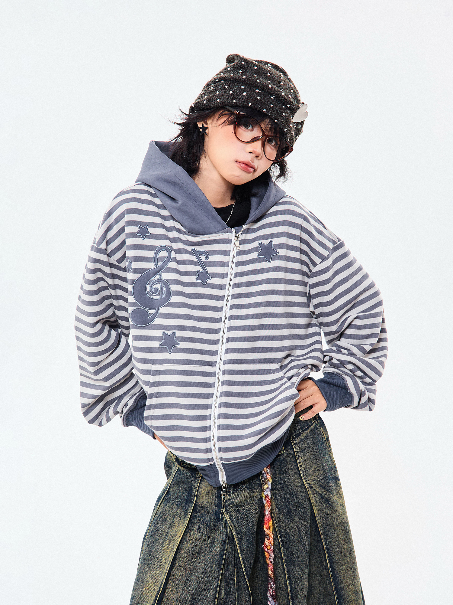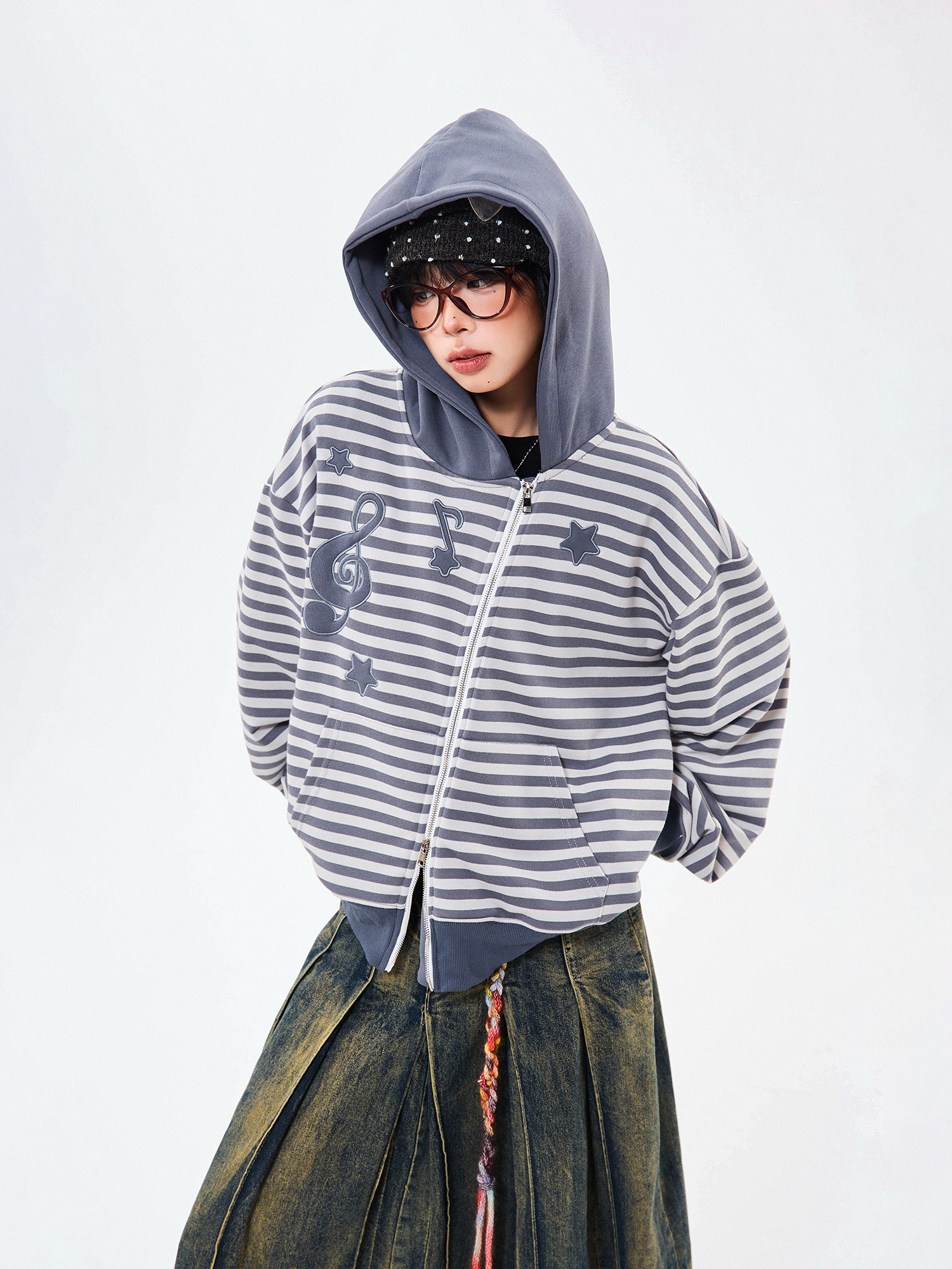 JimmyTheCrew Retro Diagonal Chain Pattern Slim Casual Hooded Cardigan Sweater