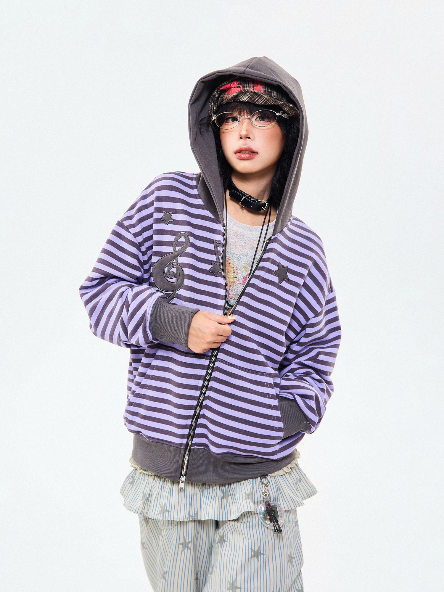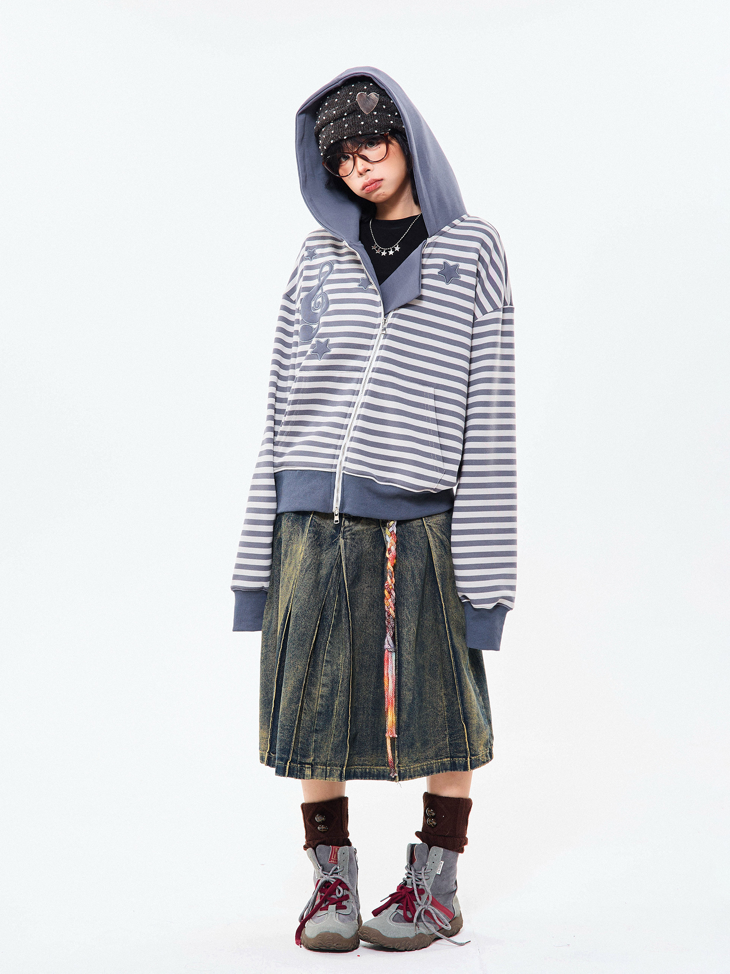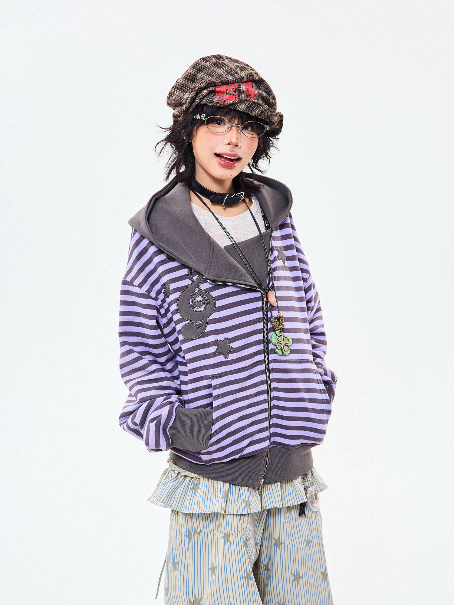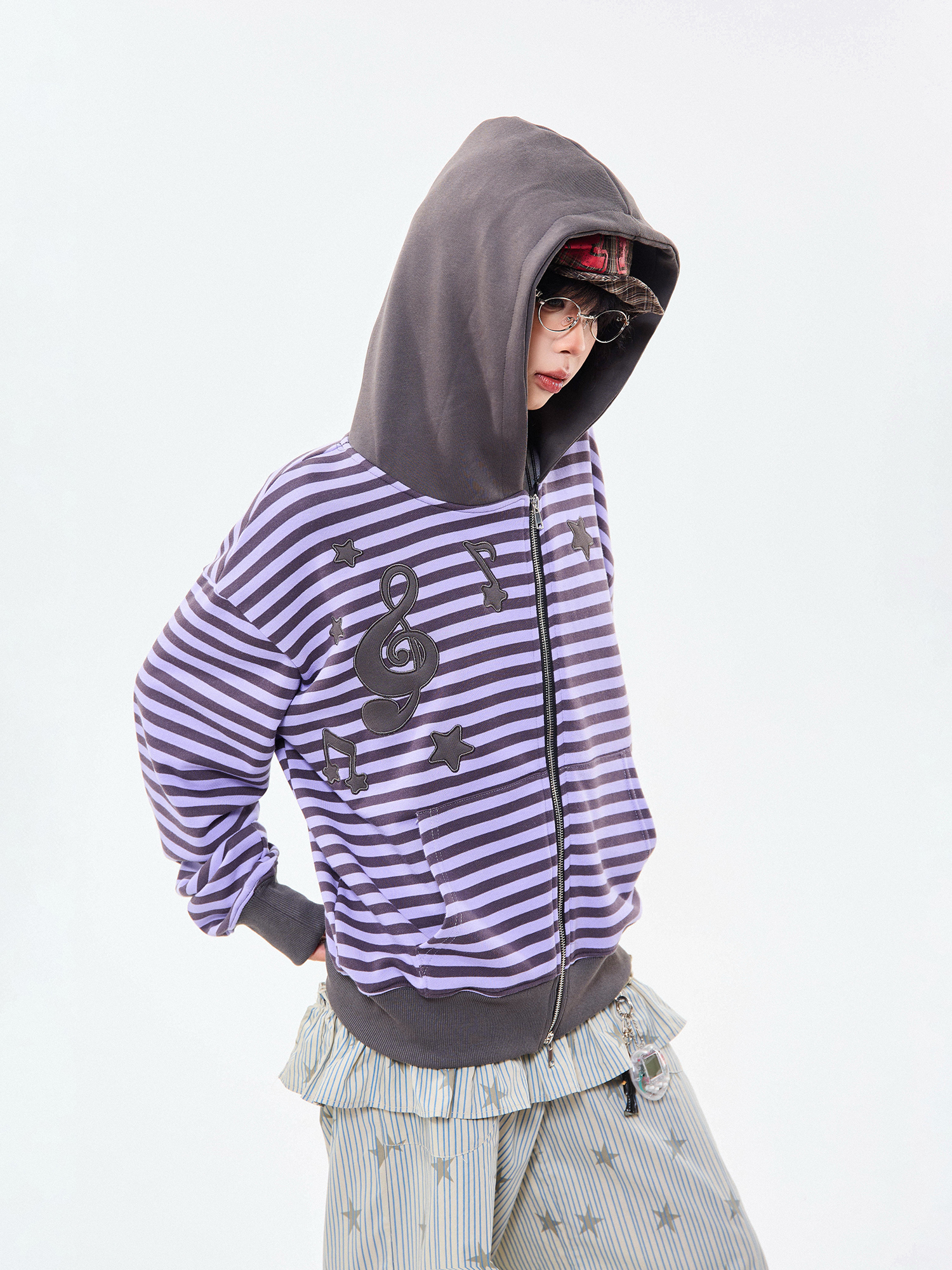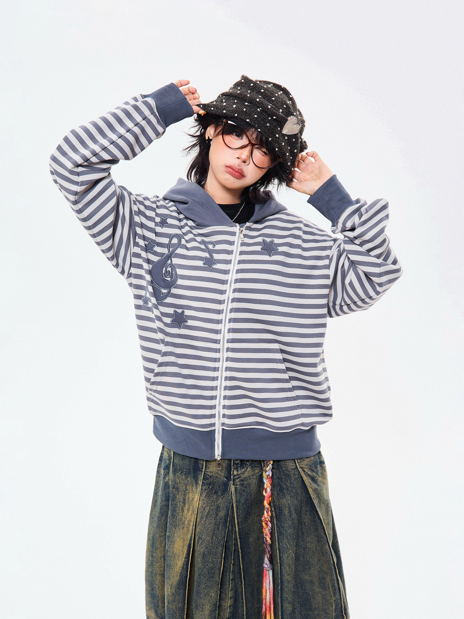 JimmyTheCrew Retro Diagonal Chain Pattern Slim Casual Hooded Cardigan Sweater