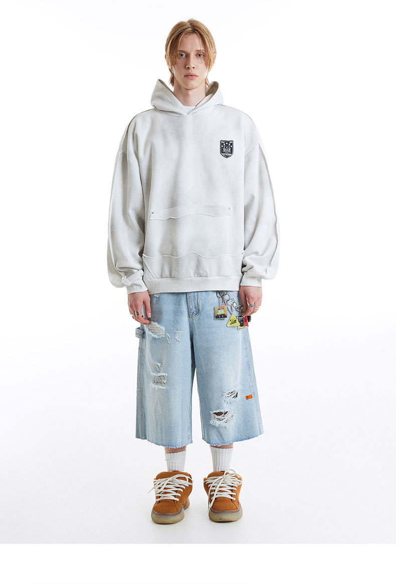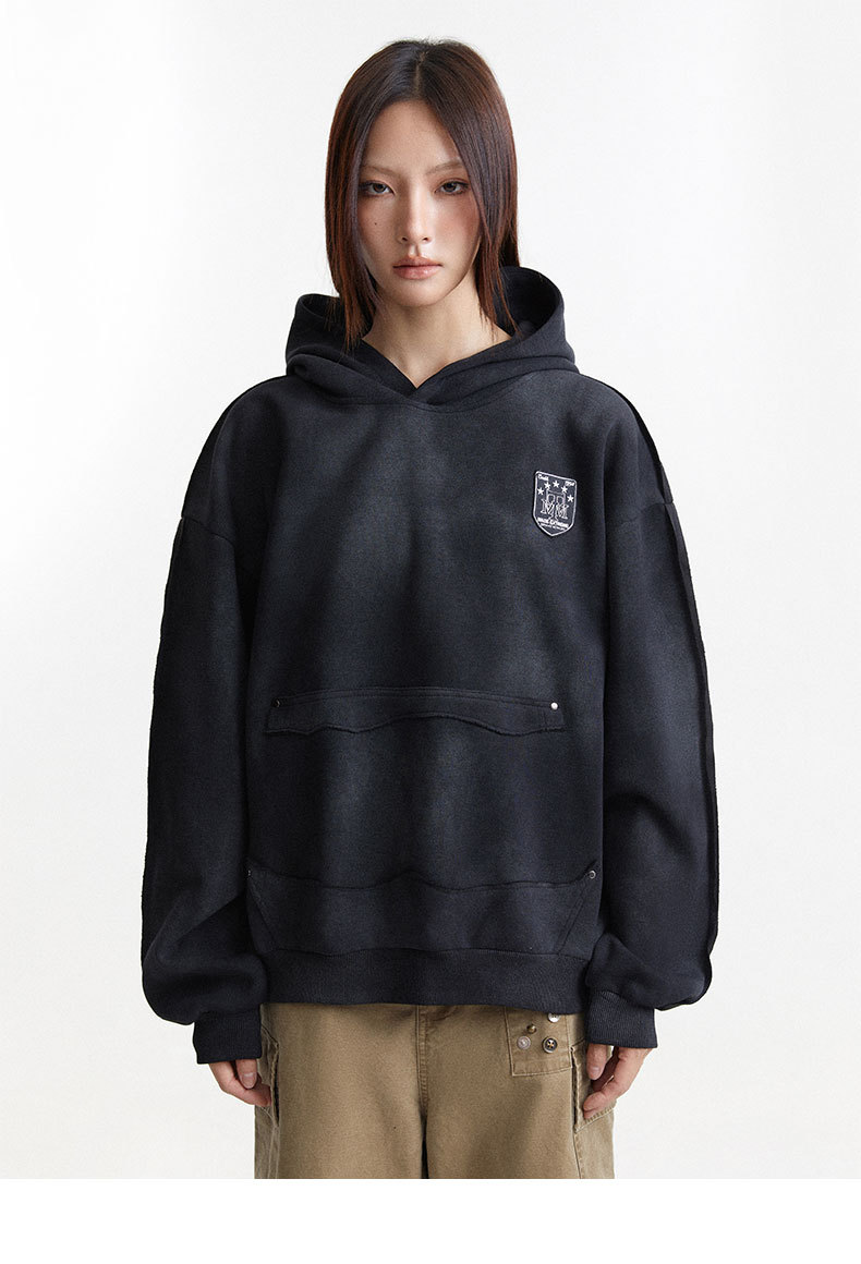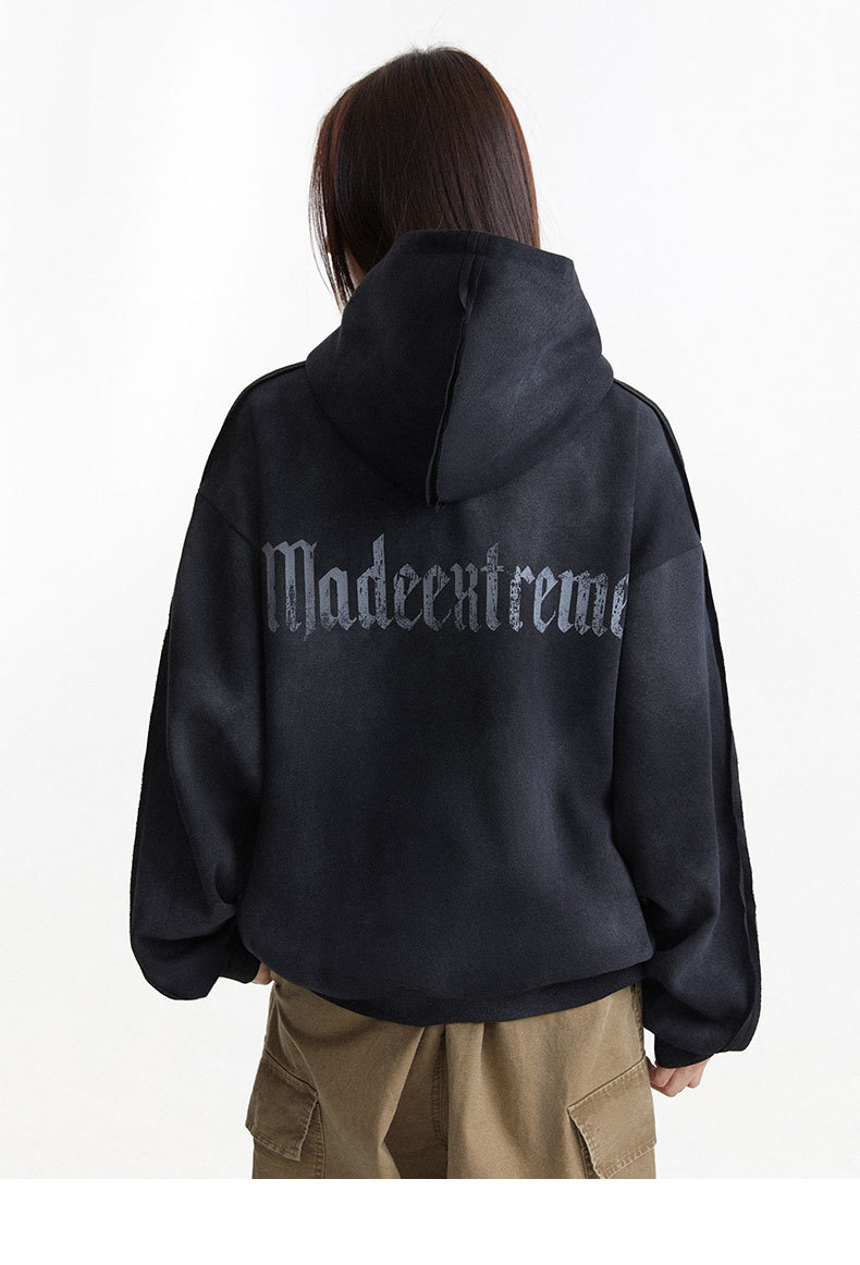 MADEEXTREME Batik-embroidered Print Hooded Loose Sweater