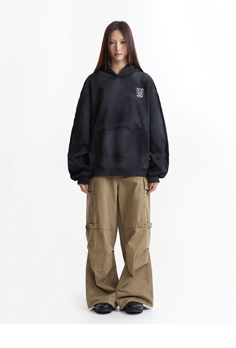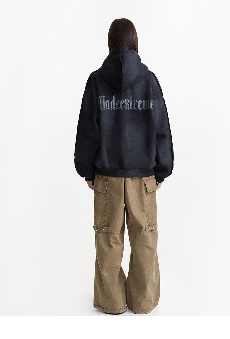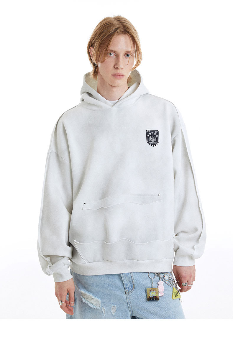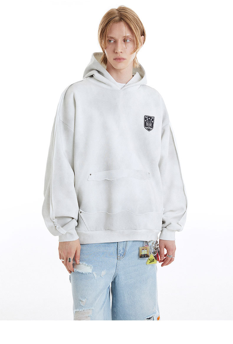 MADEEXTREME Batik-embroidered Print Hooded Loose Sweater