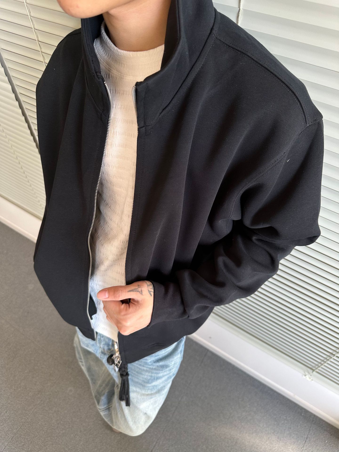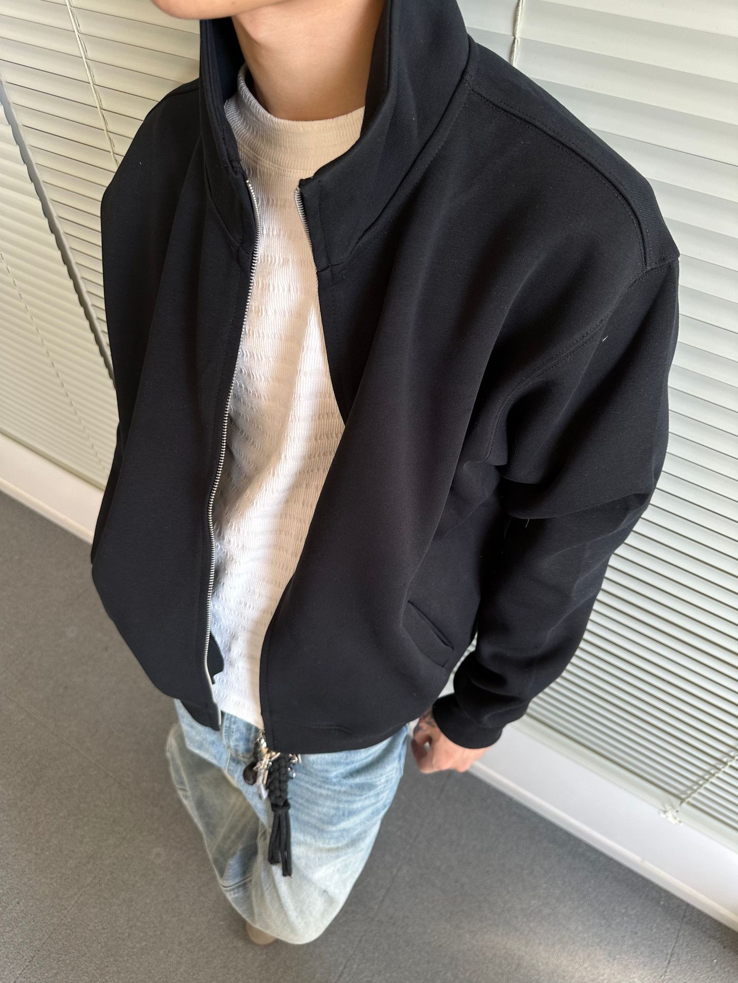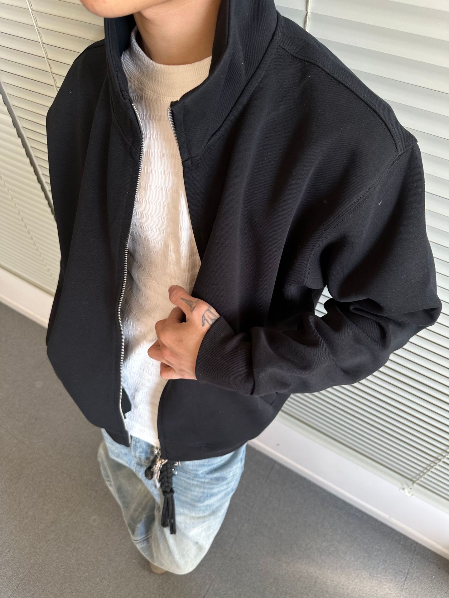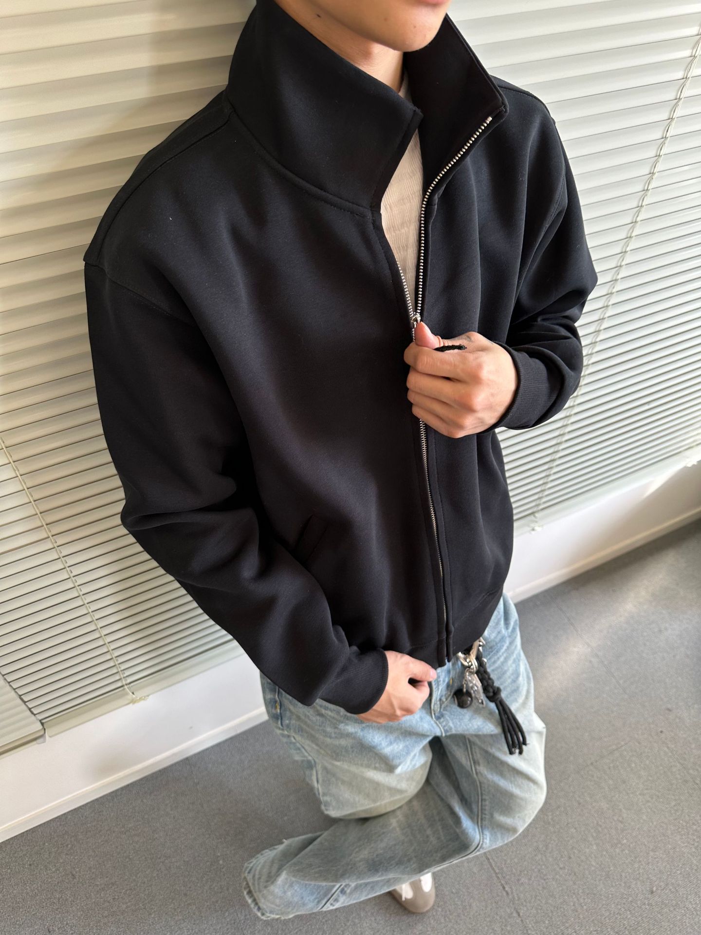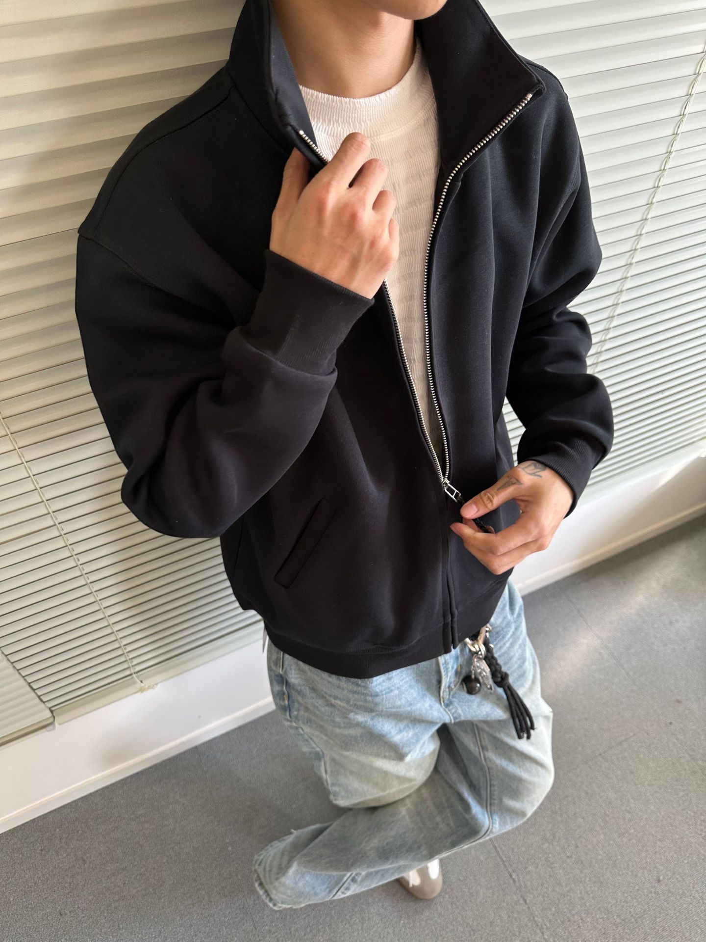 MADEEXTREME Milk Silk Stand-up Neck Zipper Premium Slack Sweater Jacket Top