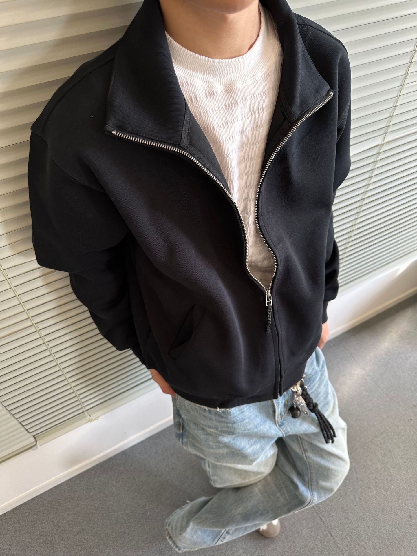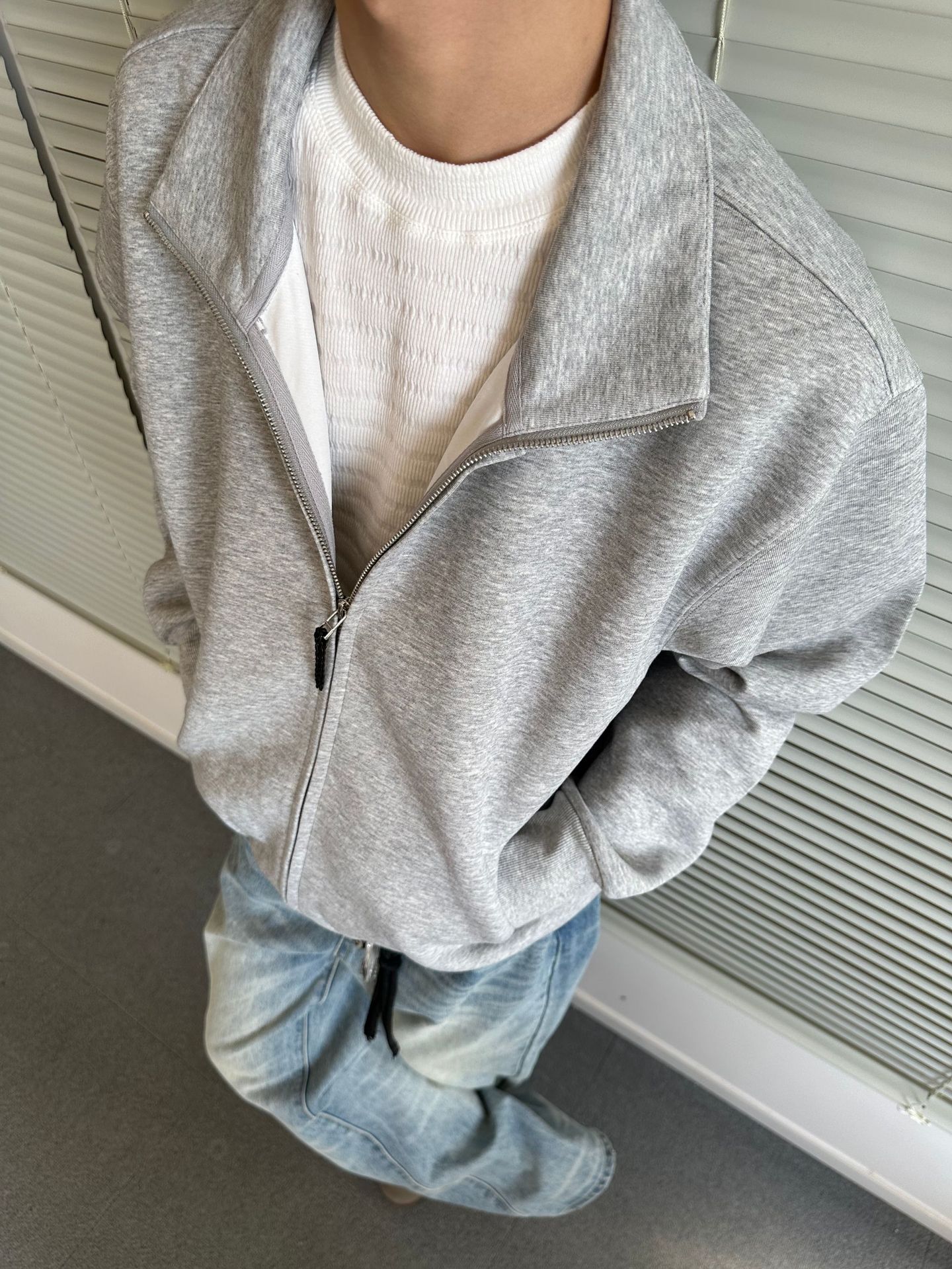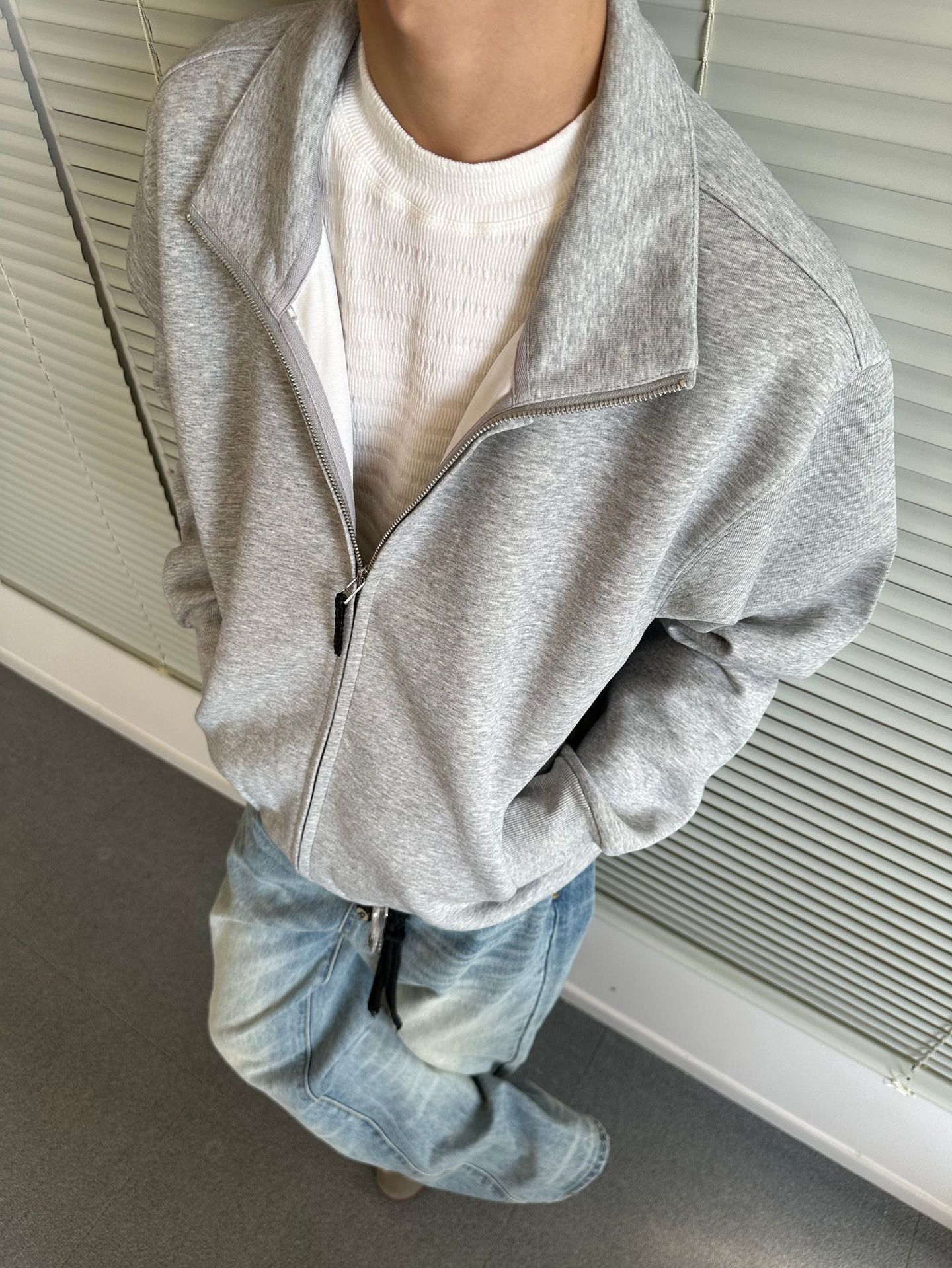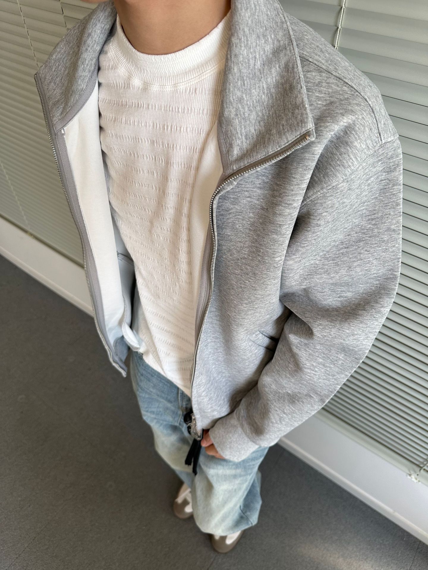 MADEEXTREME Milk Silk Stand-up Neck Zipper Premium Slack Sweater Jacket Top