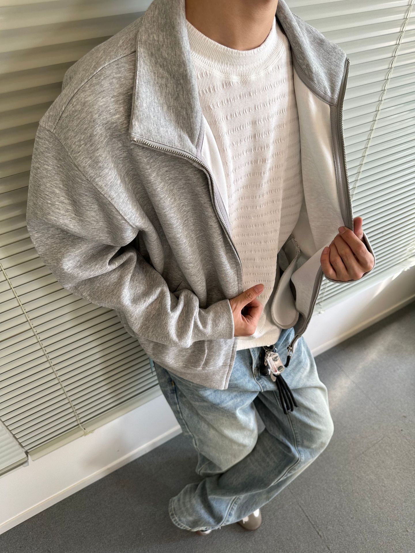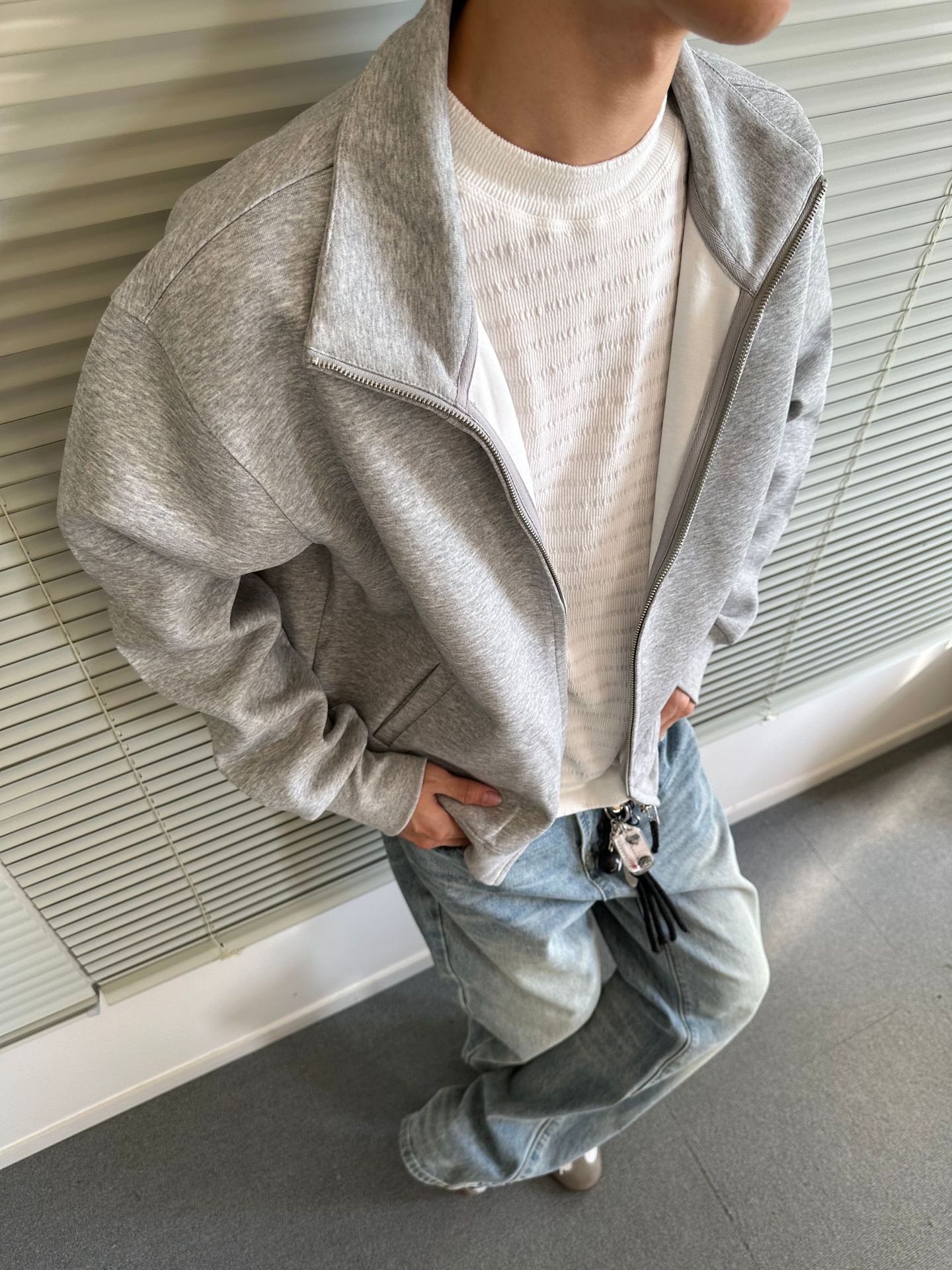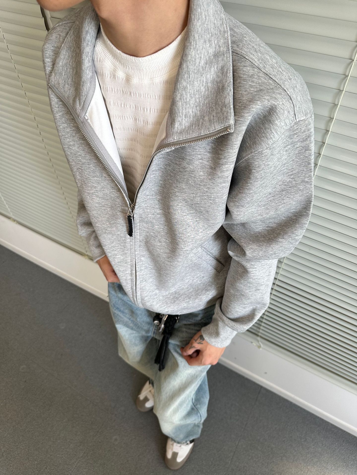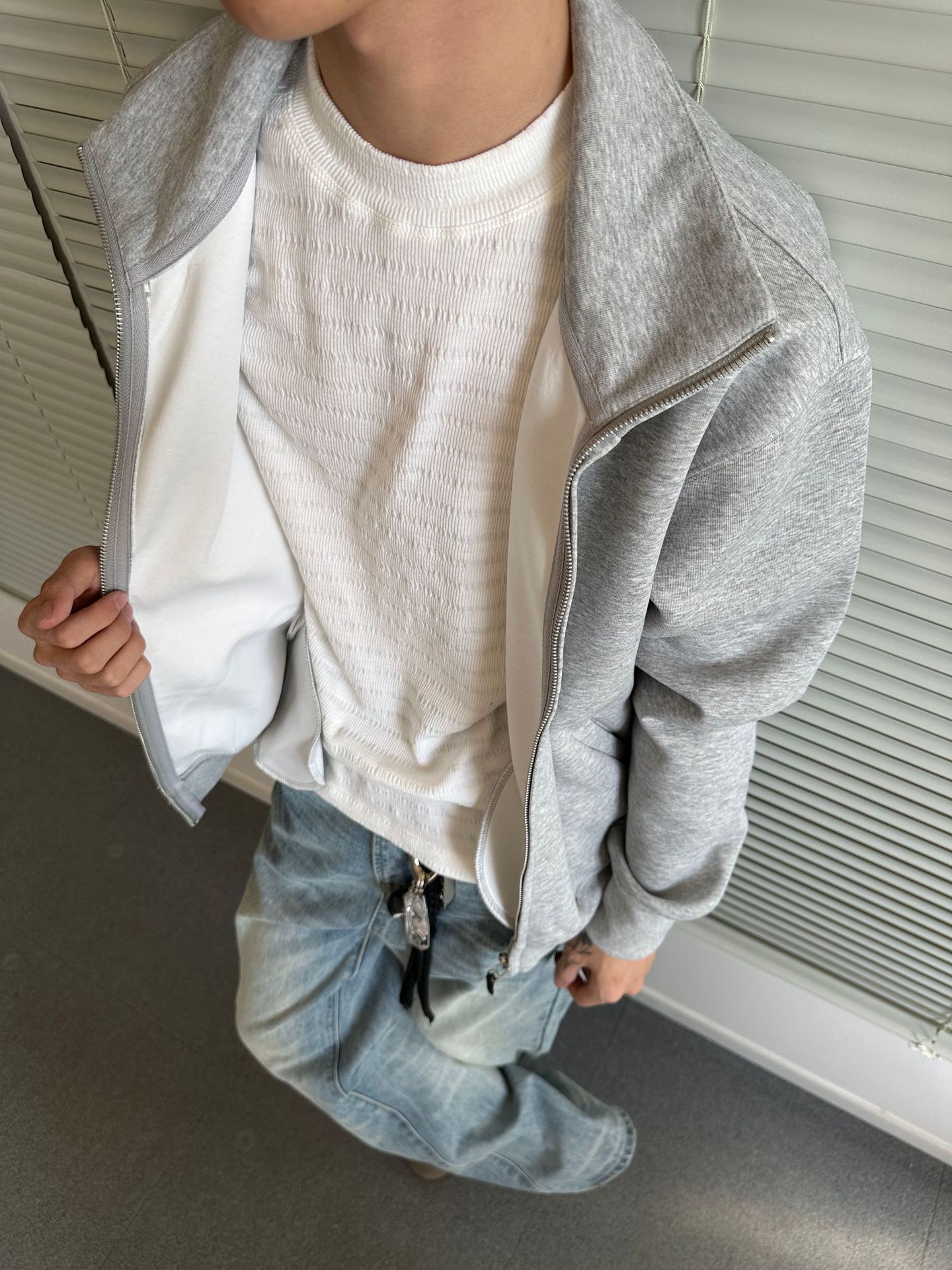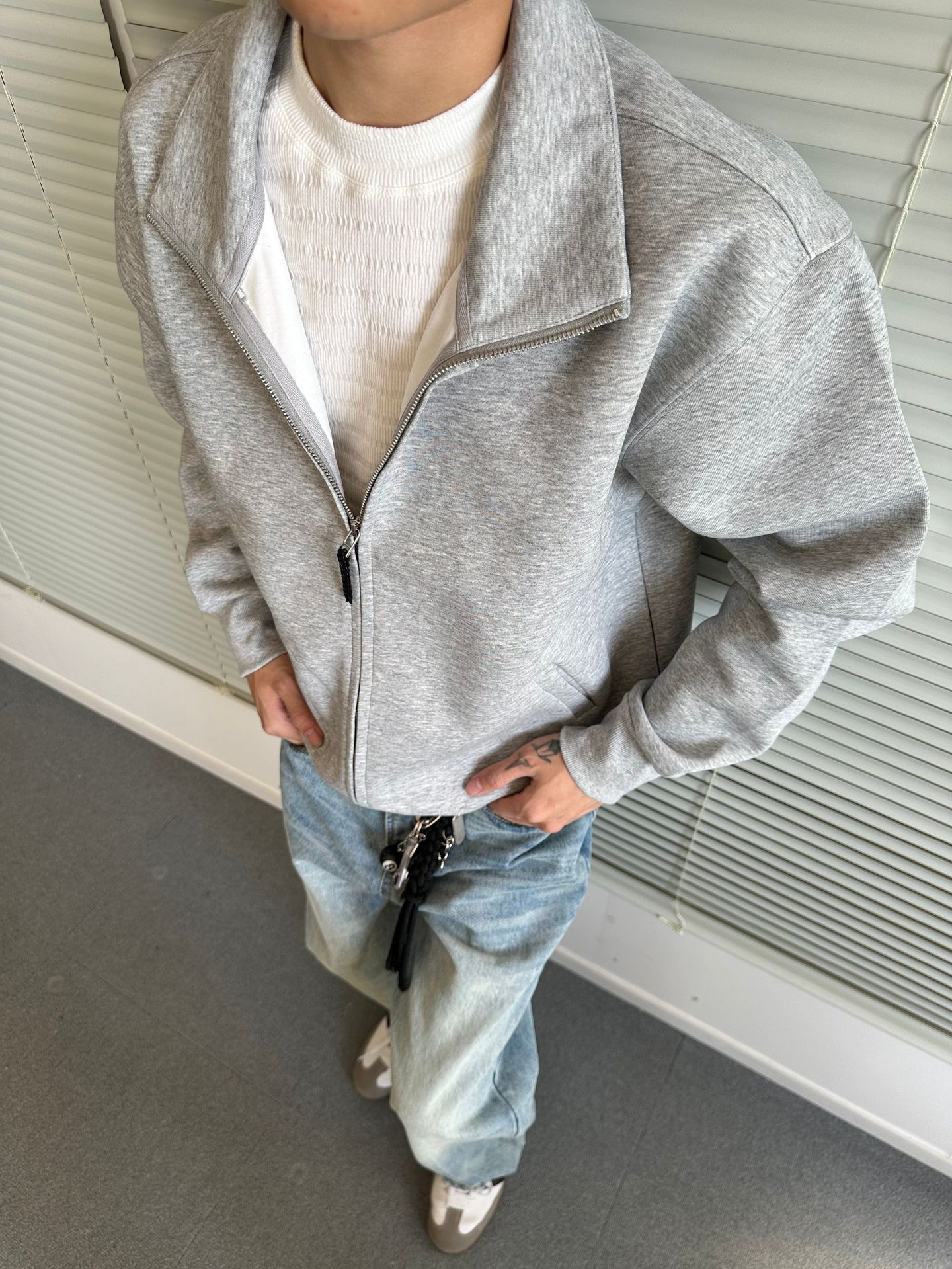 MADEEXTREME Milk Silk Stand-up Neck Zipper Premium Slack Sweater Jacket Top