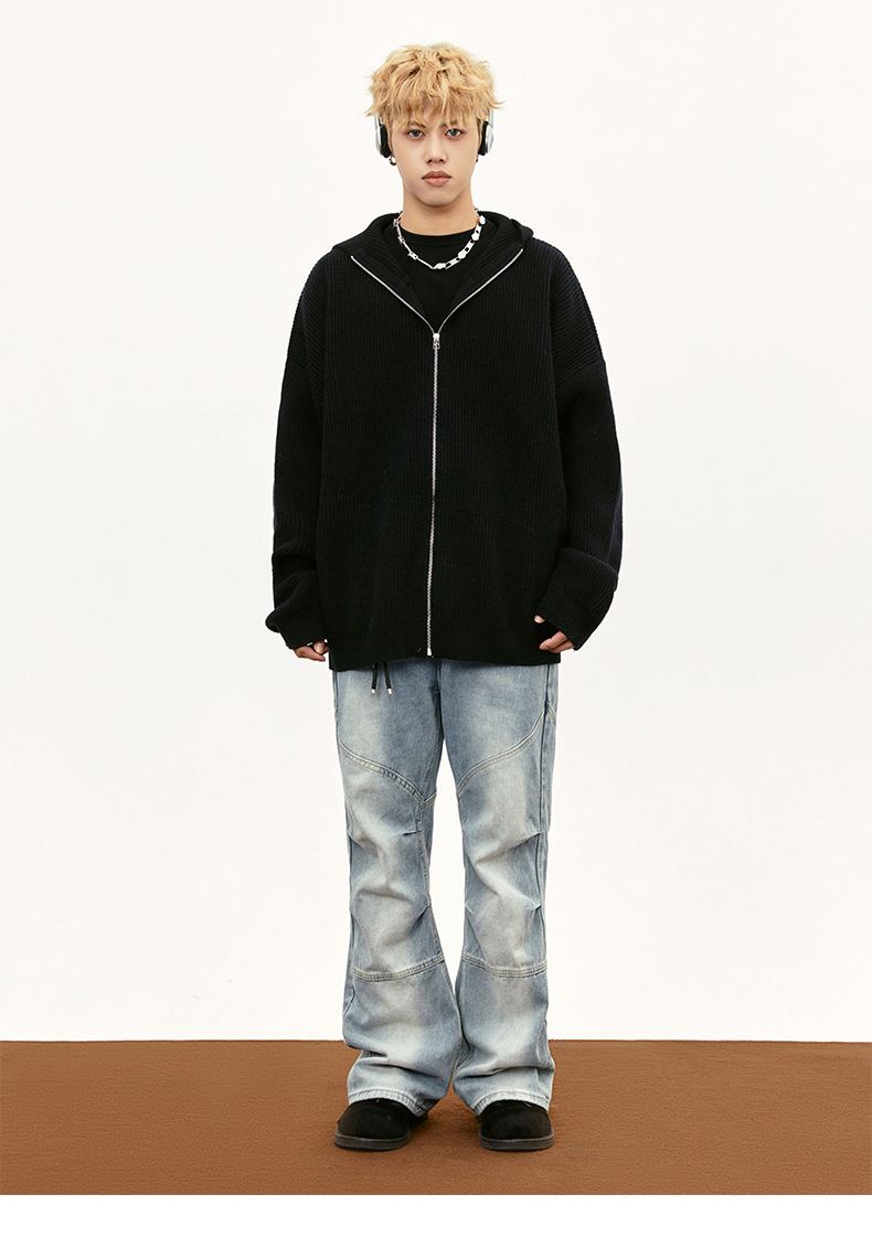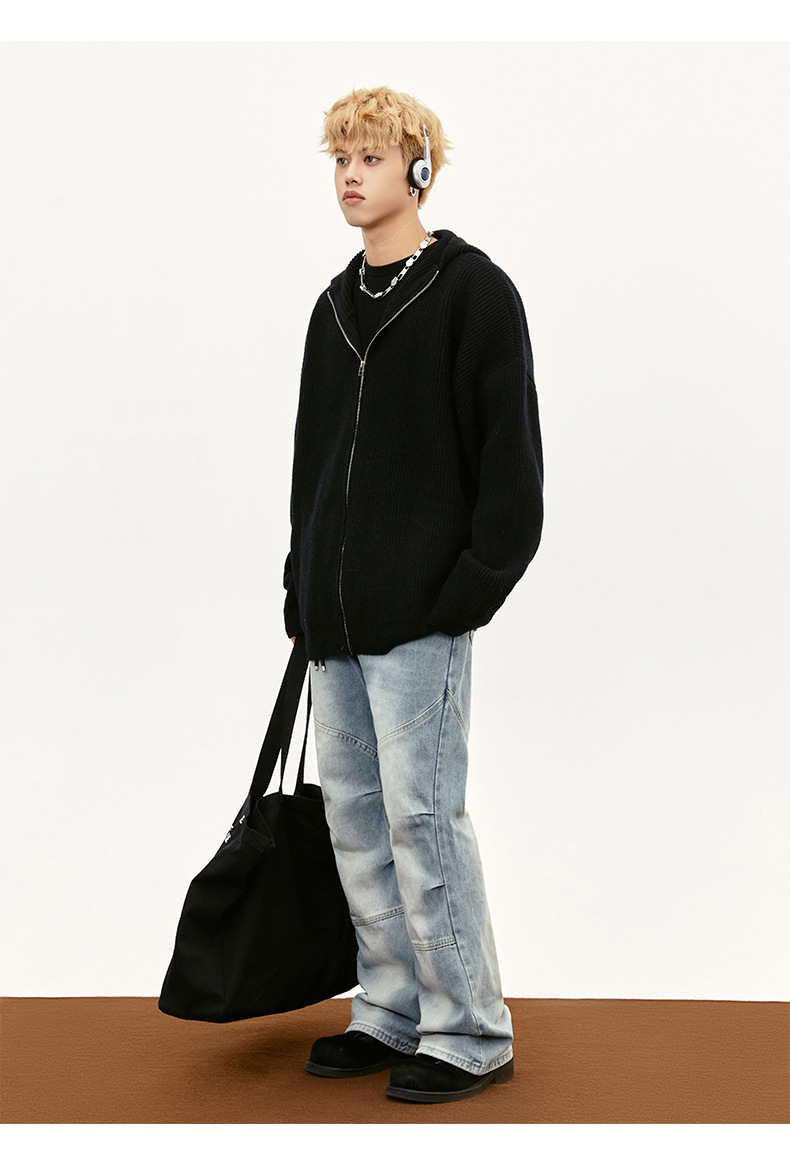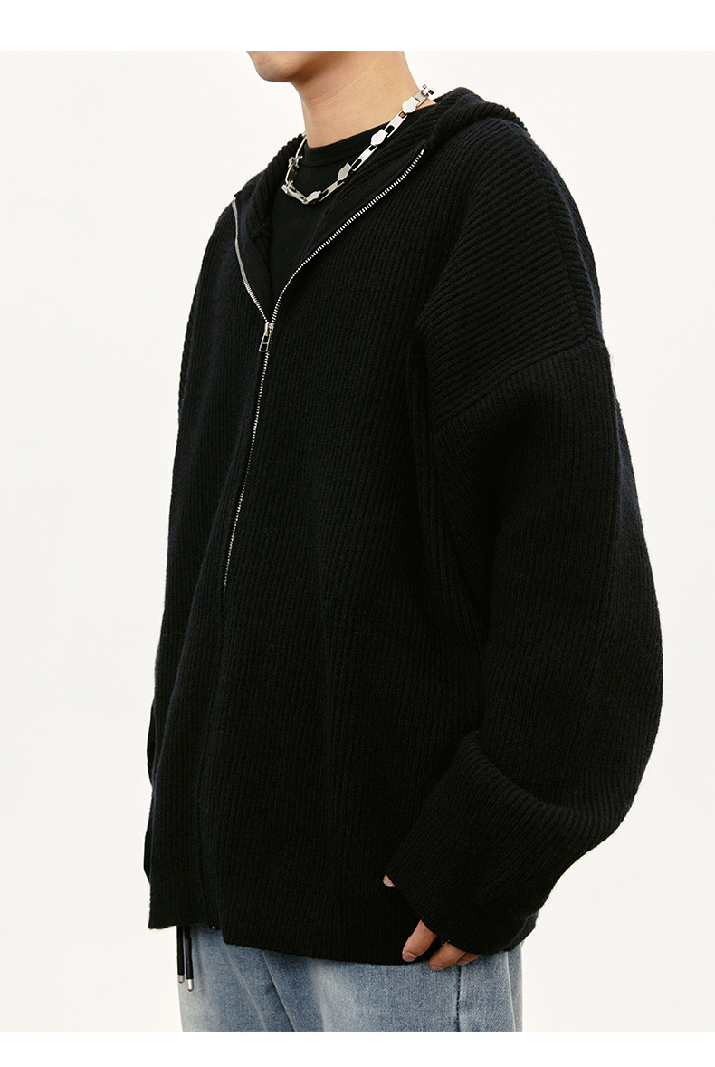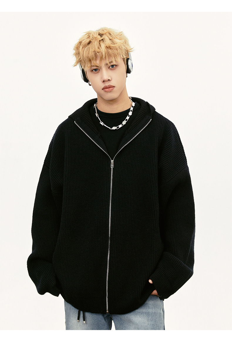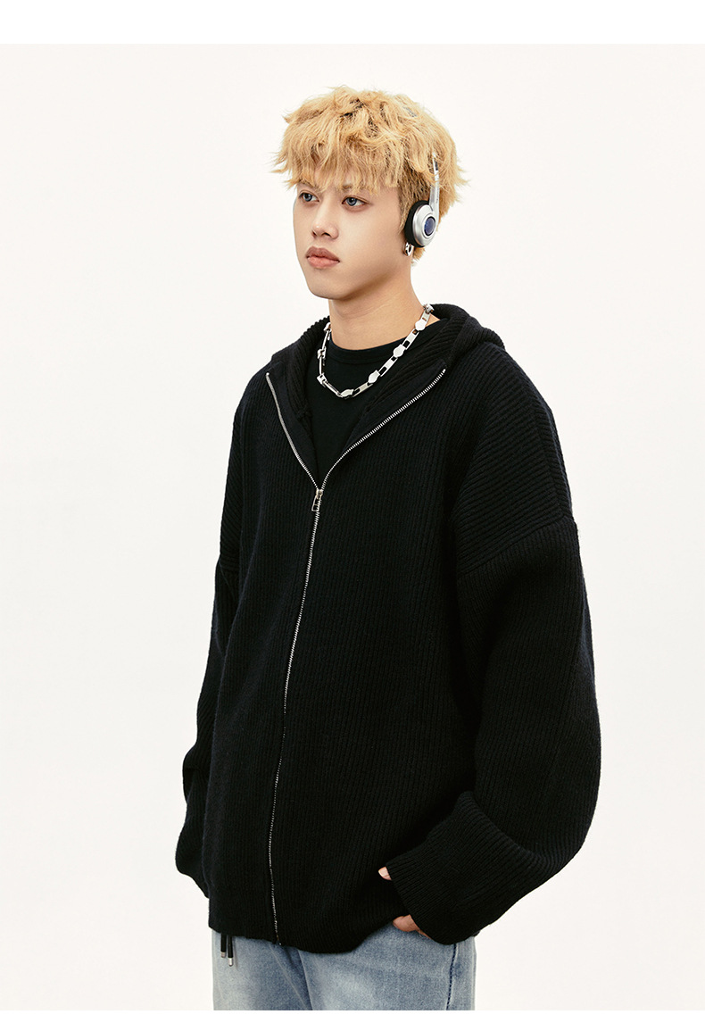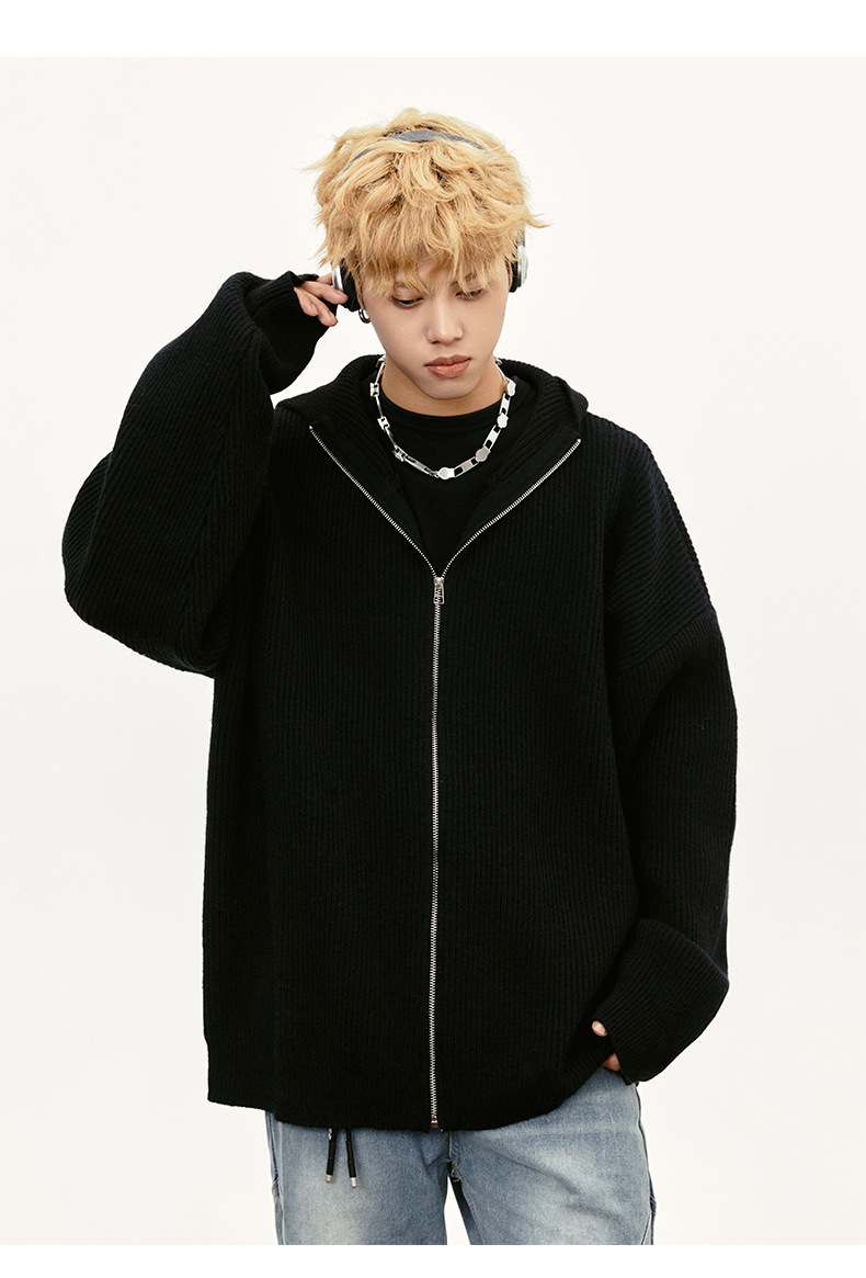 MADEEXTREME Minimalist Premium Zipper Hooded Blended Knitted Sweater Jacket