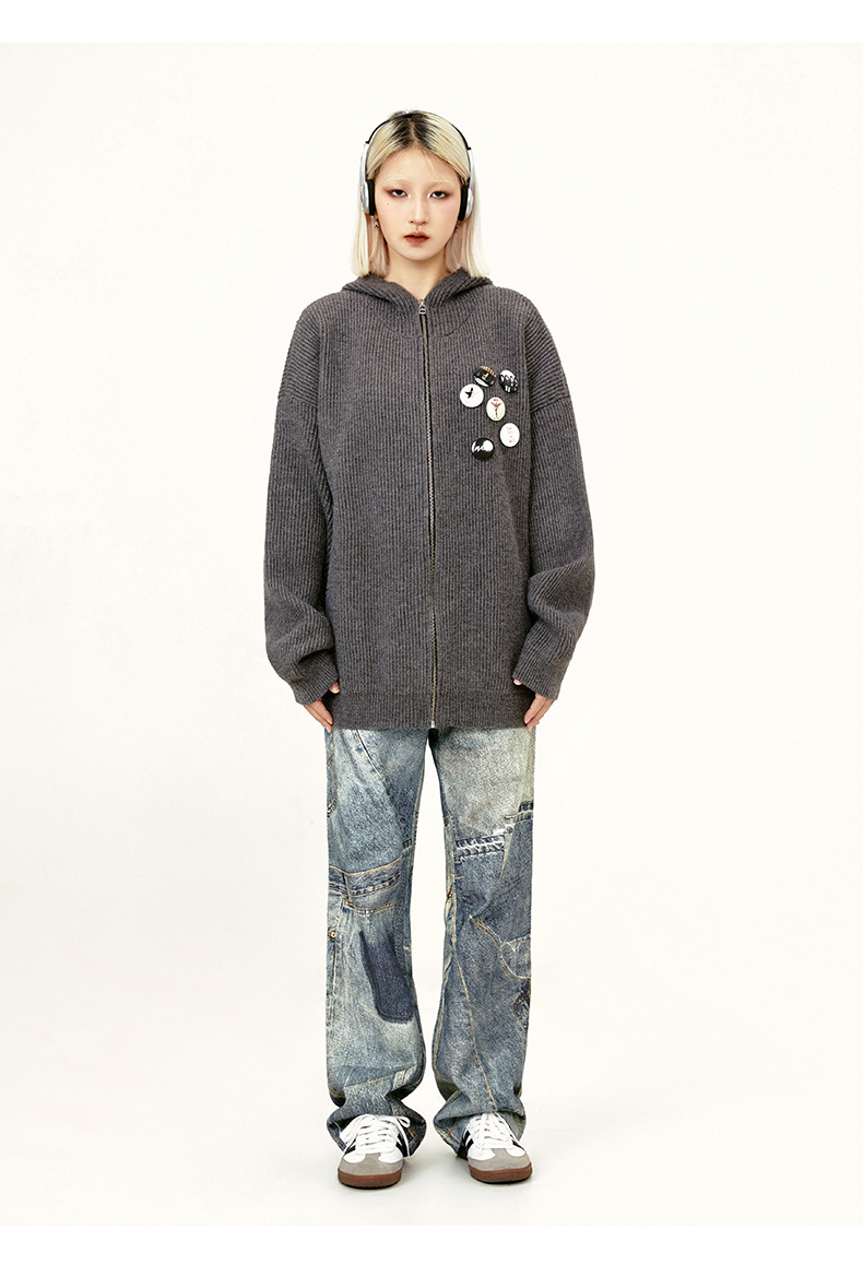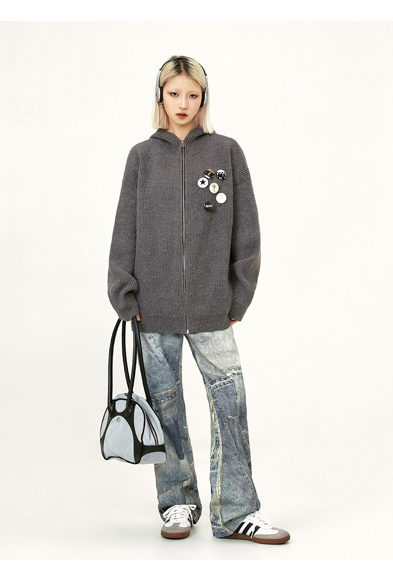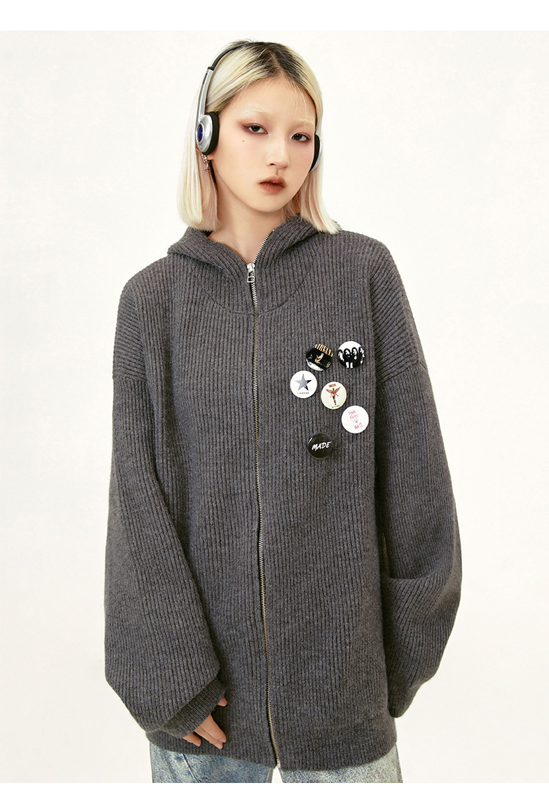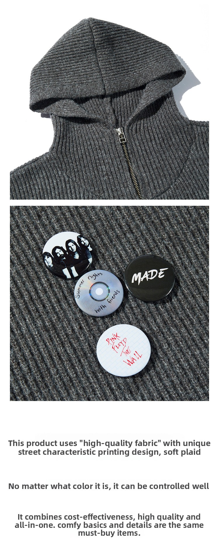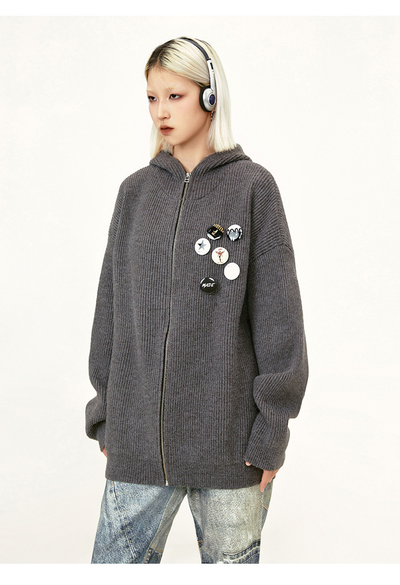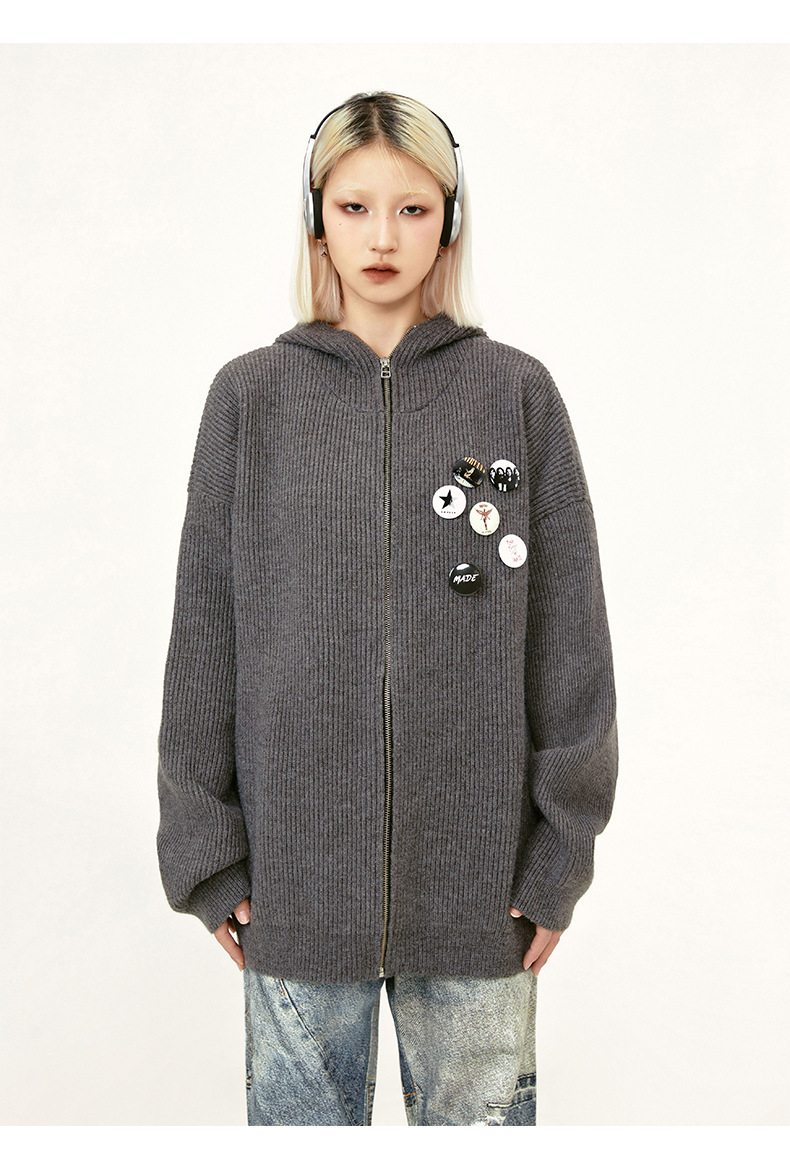 MADEEXTREME Minimalist Premium Zipper Hooded Blended Knitted Sweater Jacket