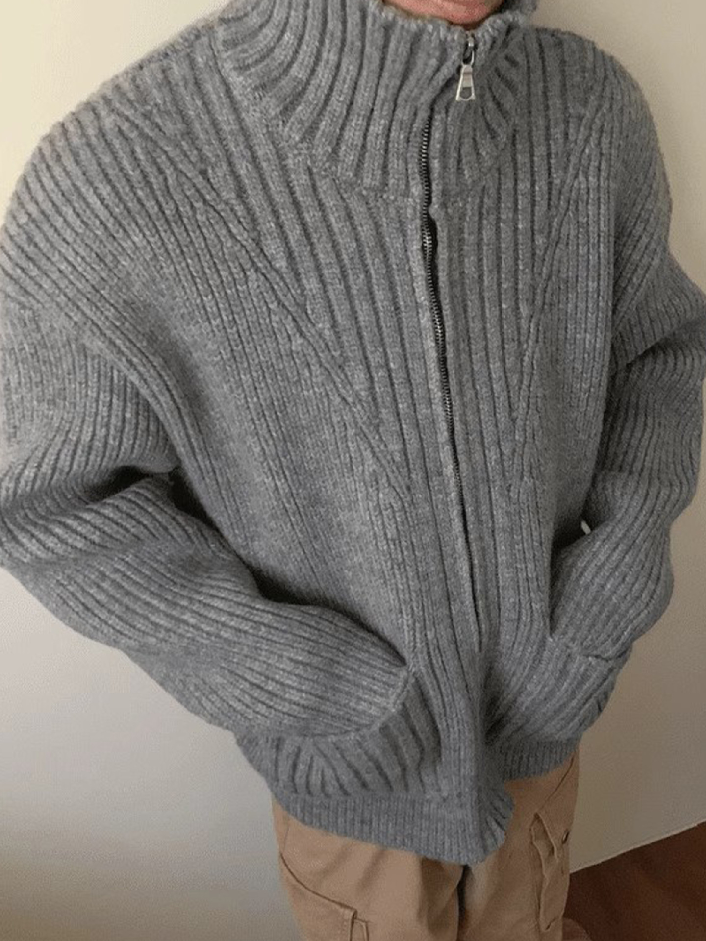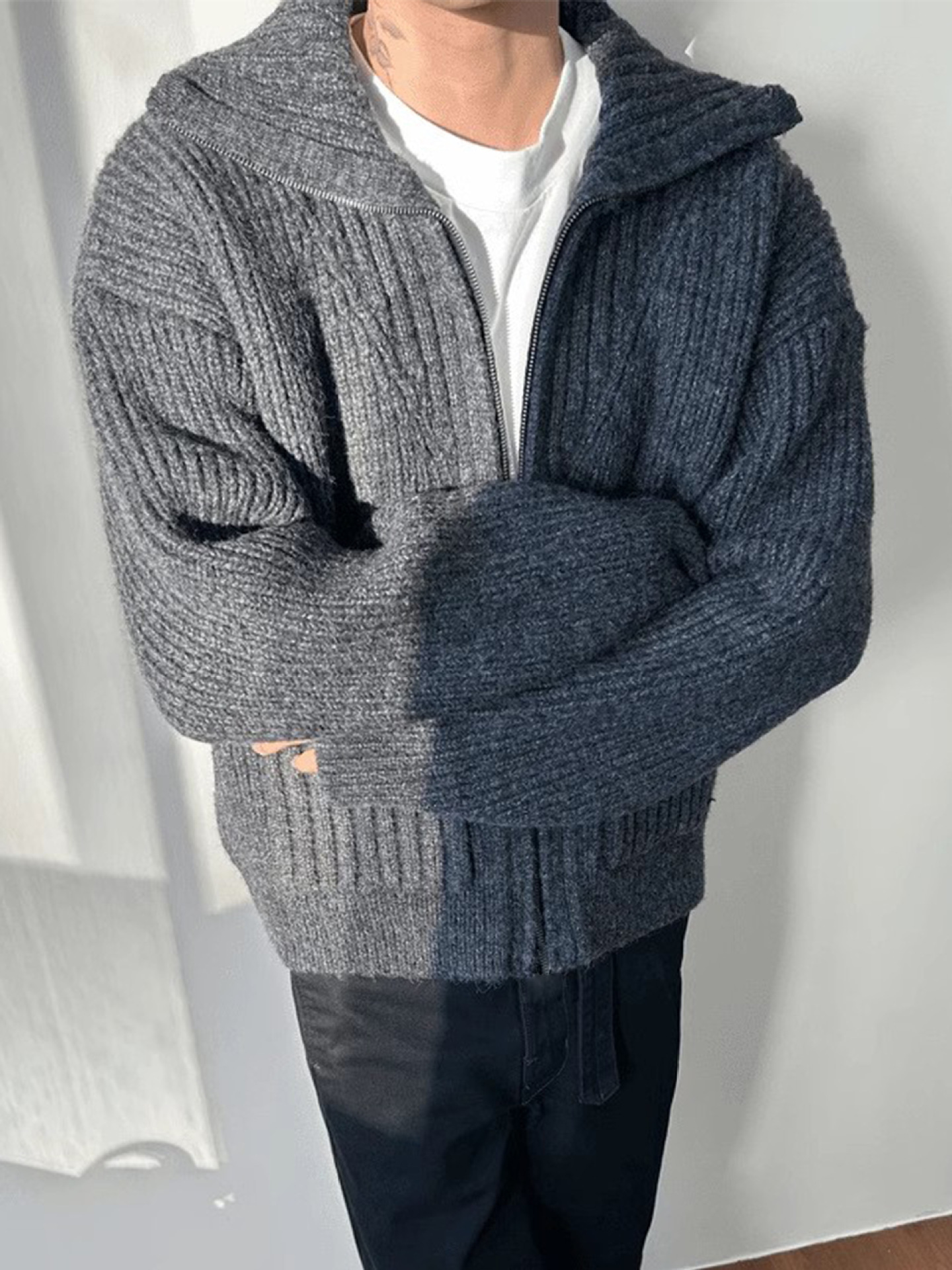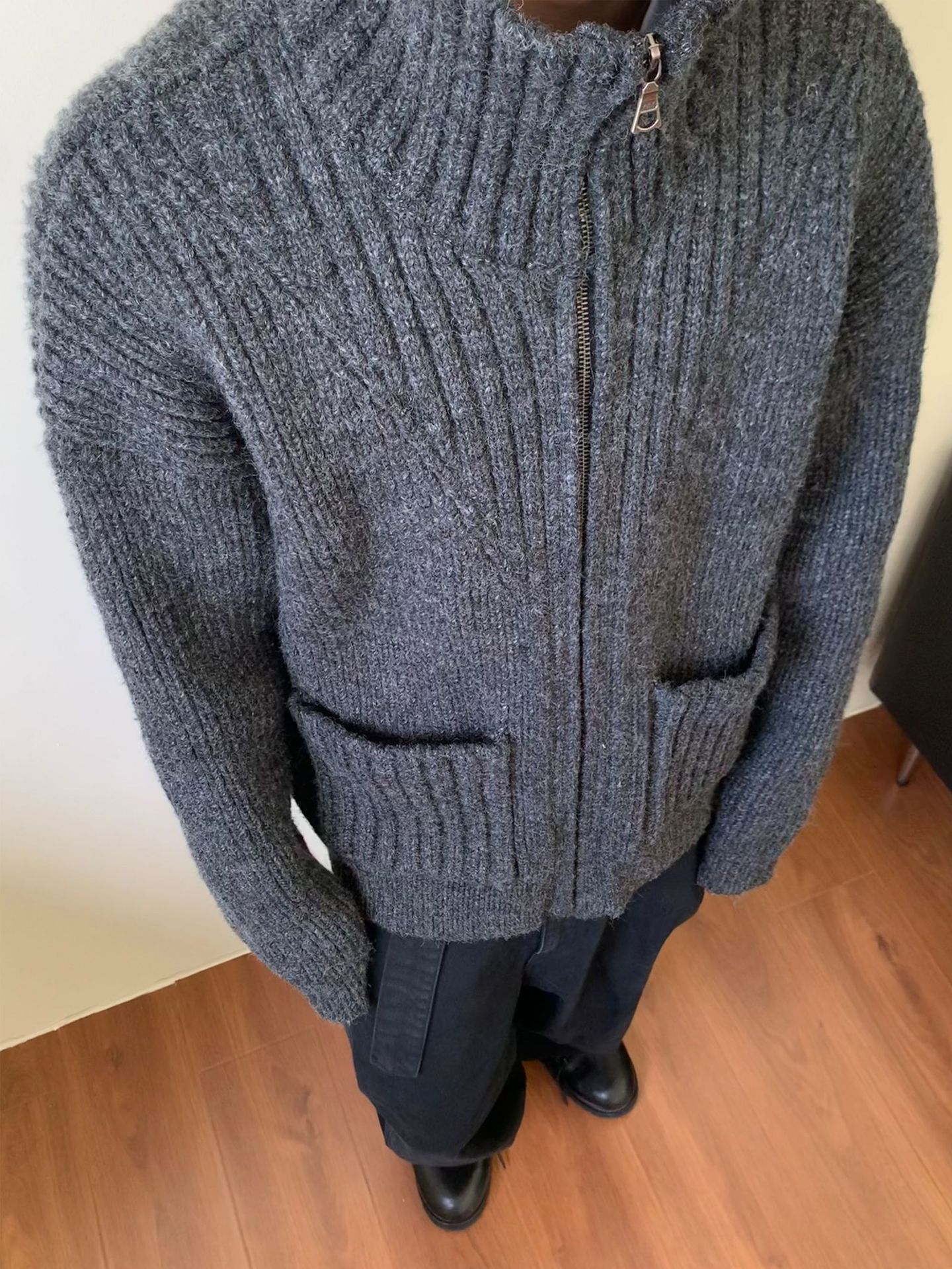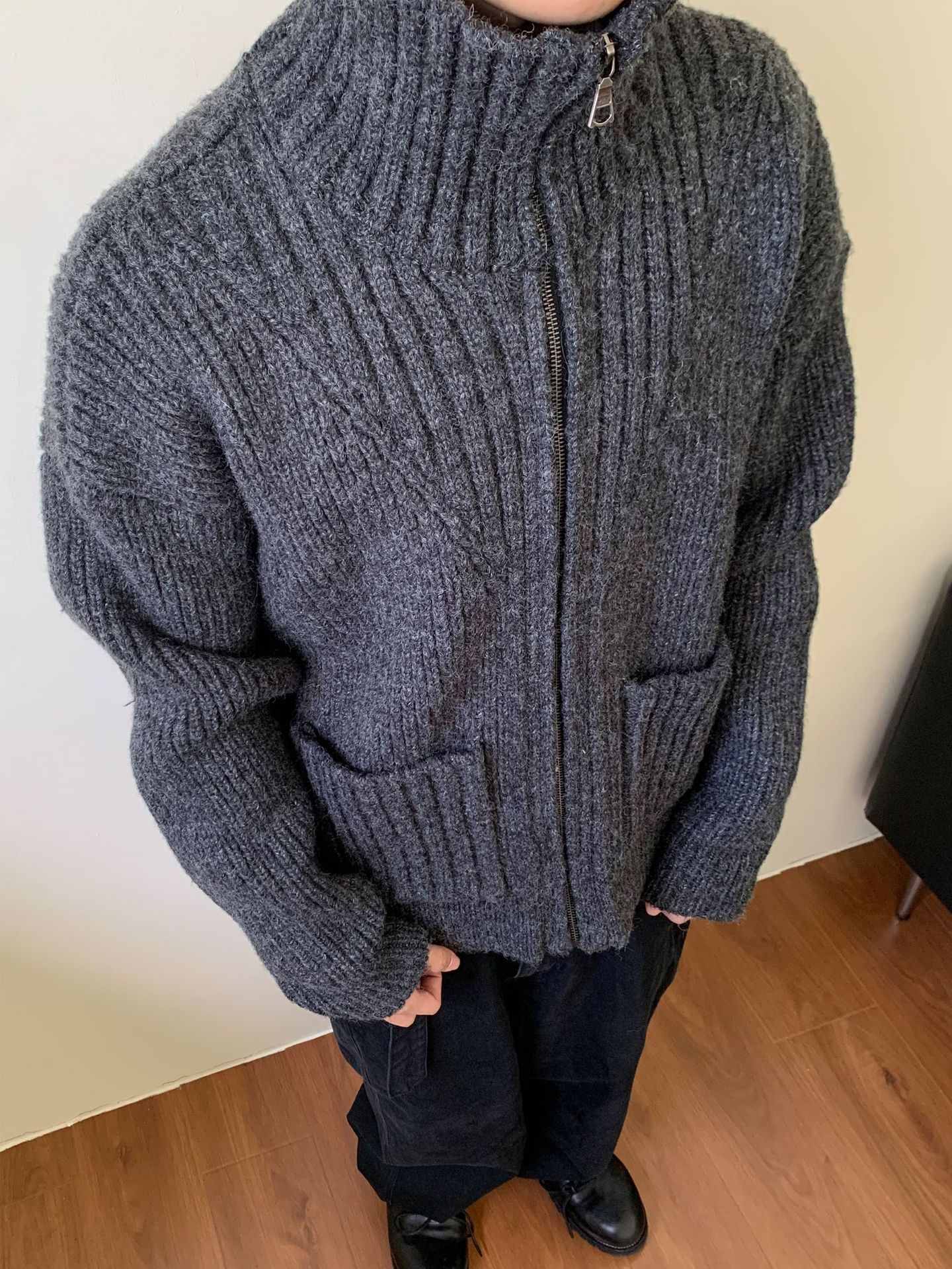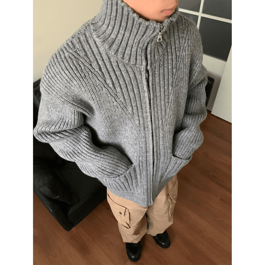 MADEEXTREME Neck Roman Pit Strip Blended Zipper Knitted Sweater Jacket Sweater