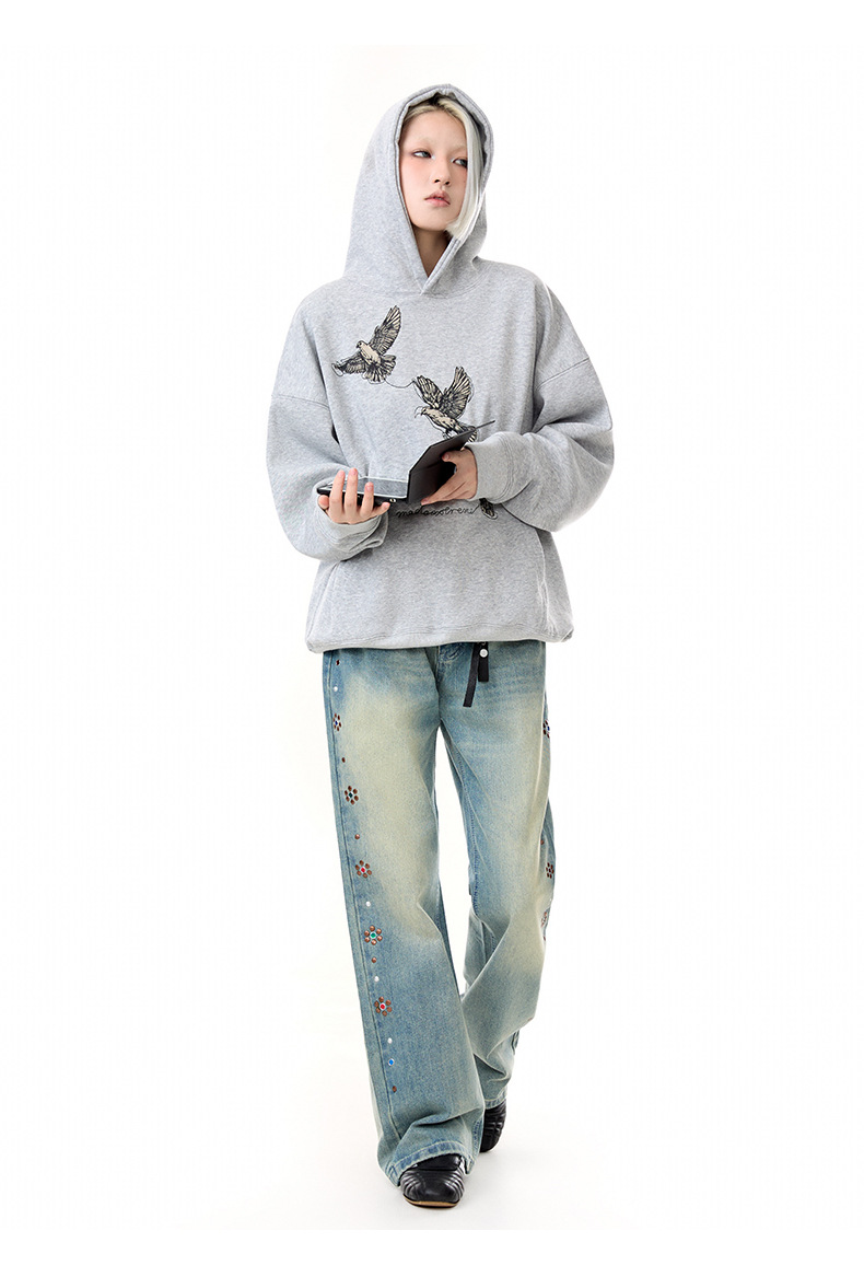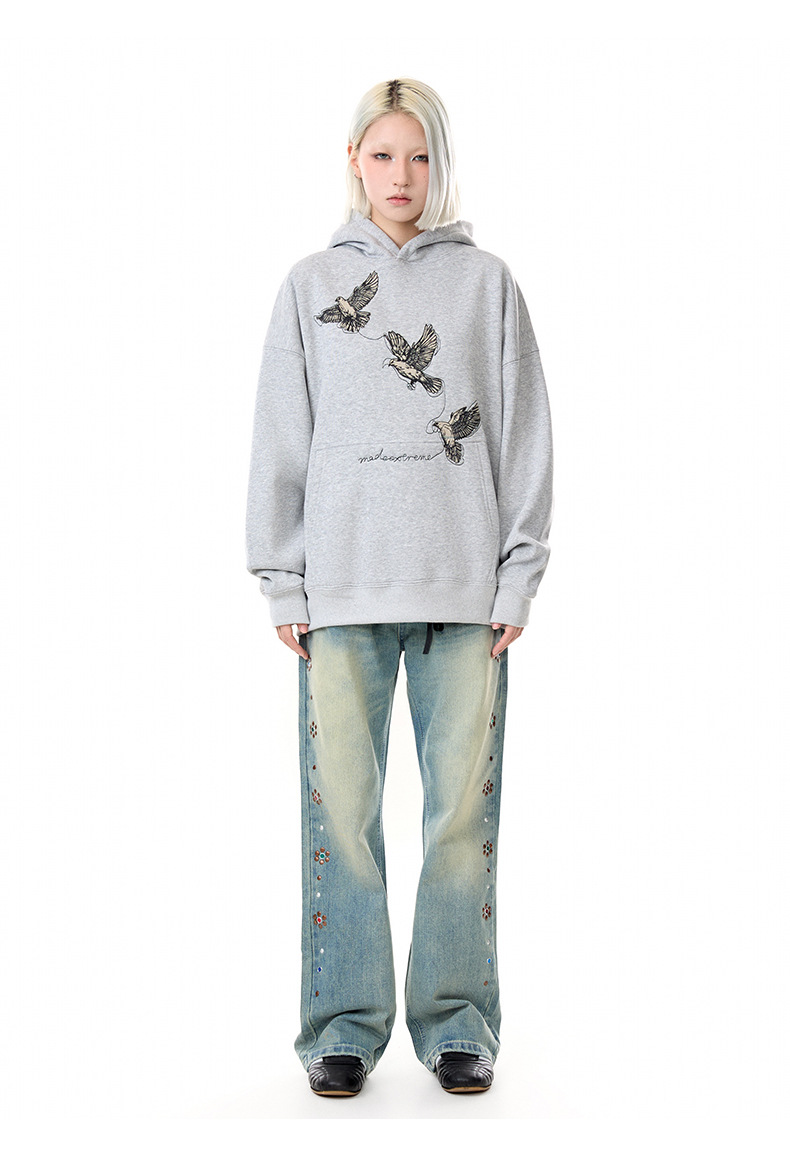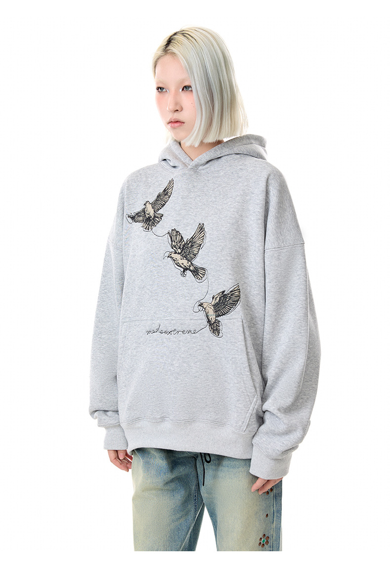 MADEEXTREME Peace Dove Print Silhouette Hoodie Sweater