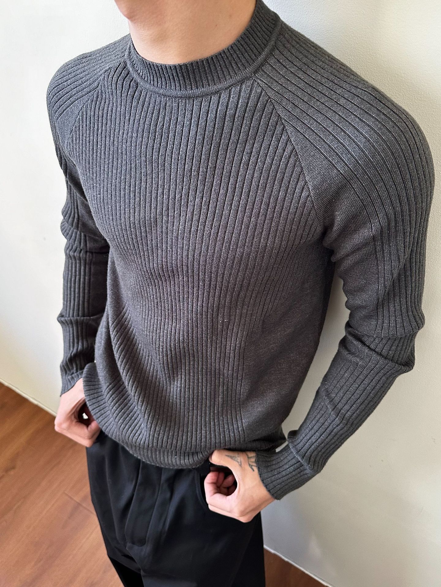 MADEEXTREME Pit Strip Knitted Slack Sweater Old Money Slim Crew Neck Sweater