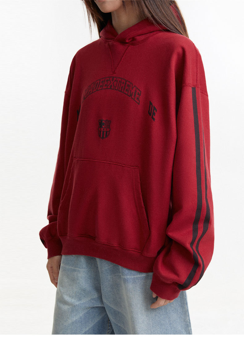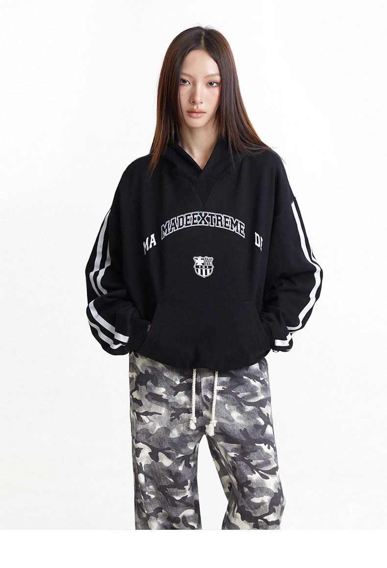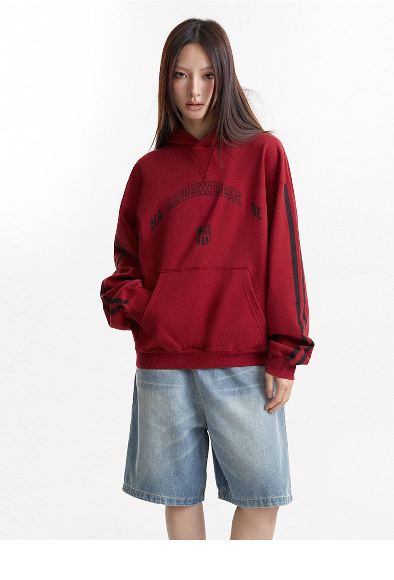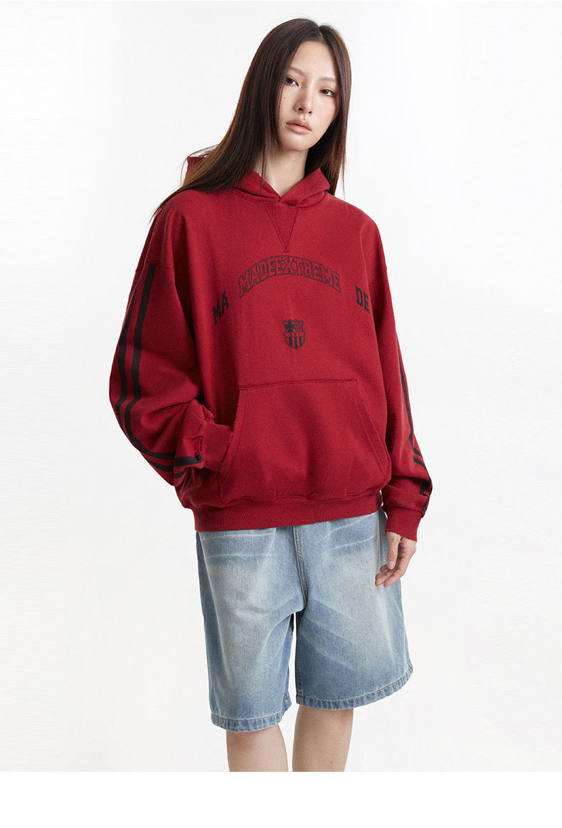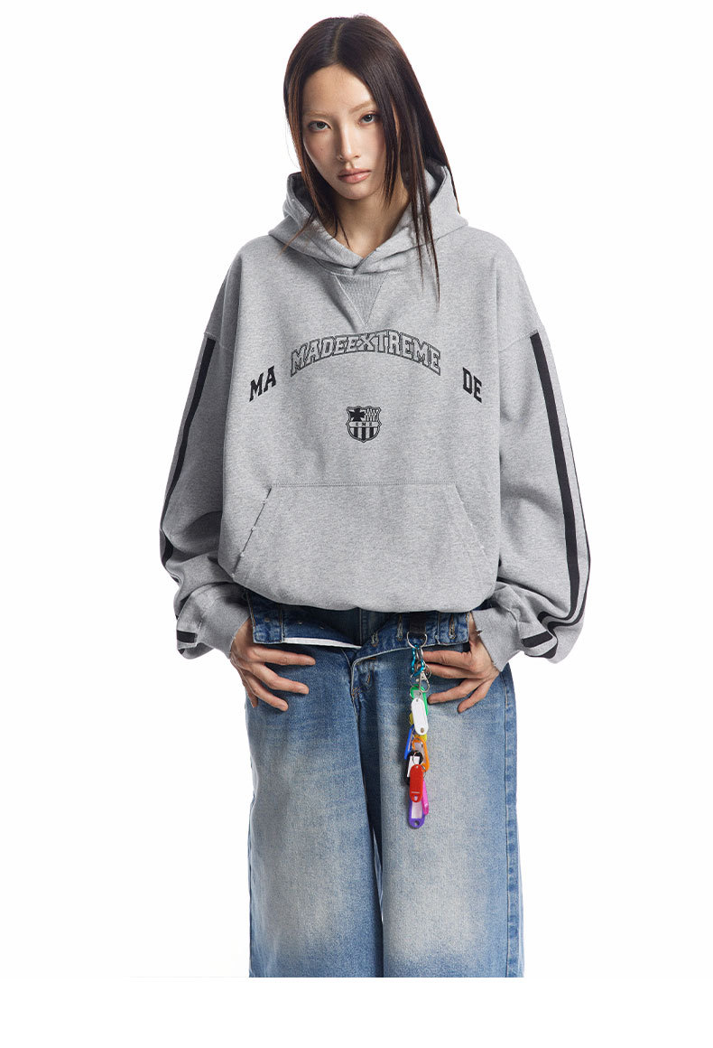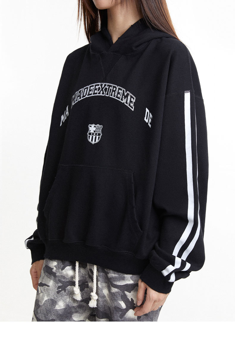 MADEEXTREME Terry Hook-up Retro Letter Loose Casual Hooded Sweater