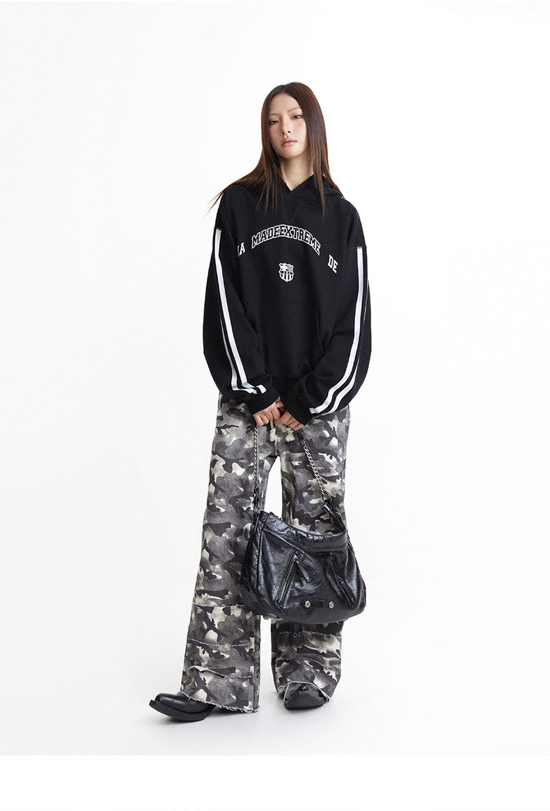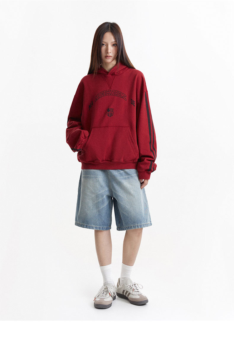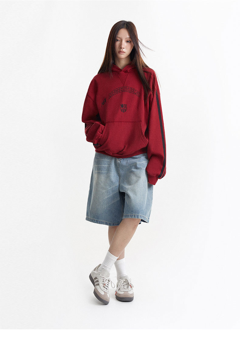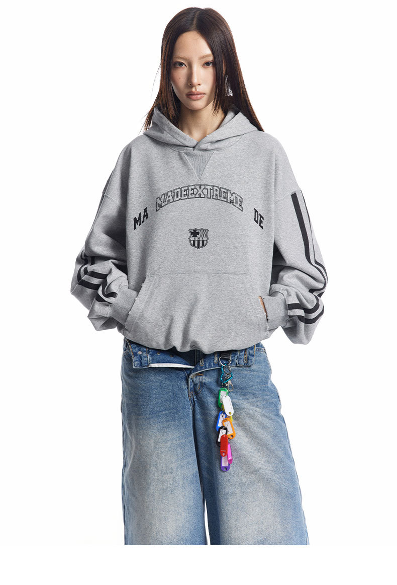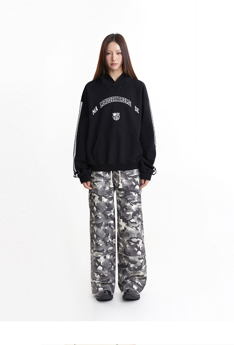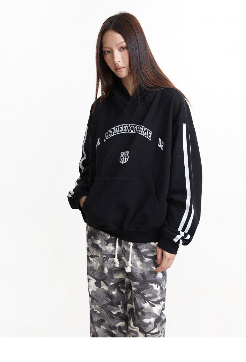MADEEXTREME Terry Hook-up Retro Letter Loose Casual Hooded Sweater