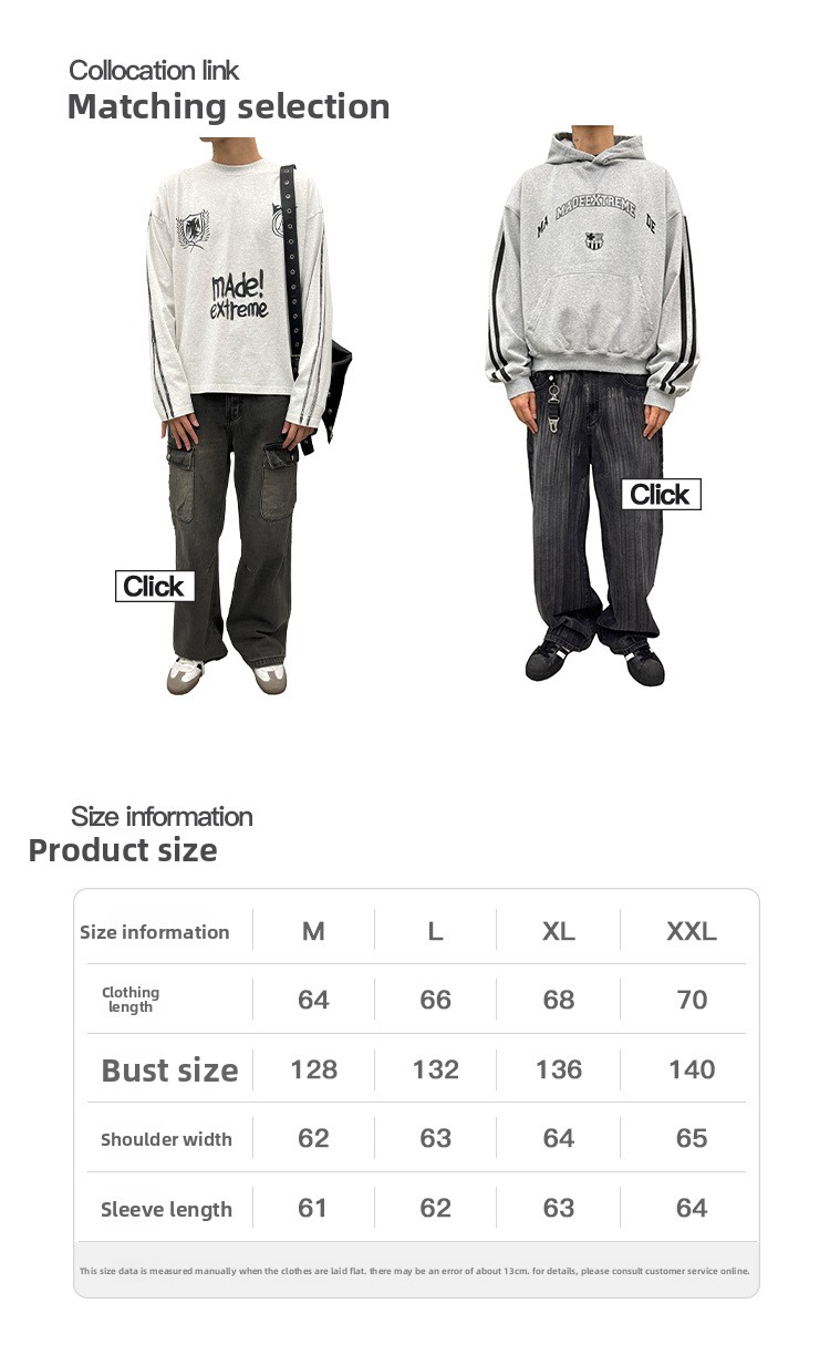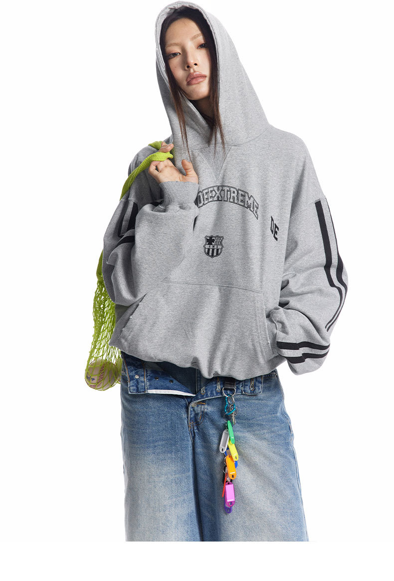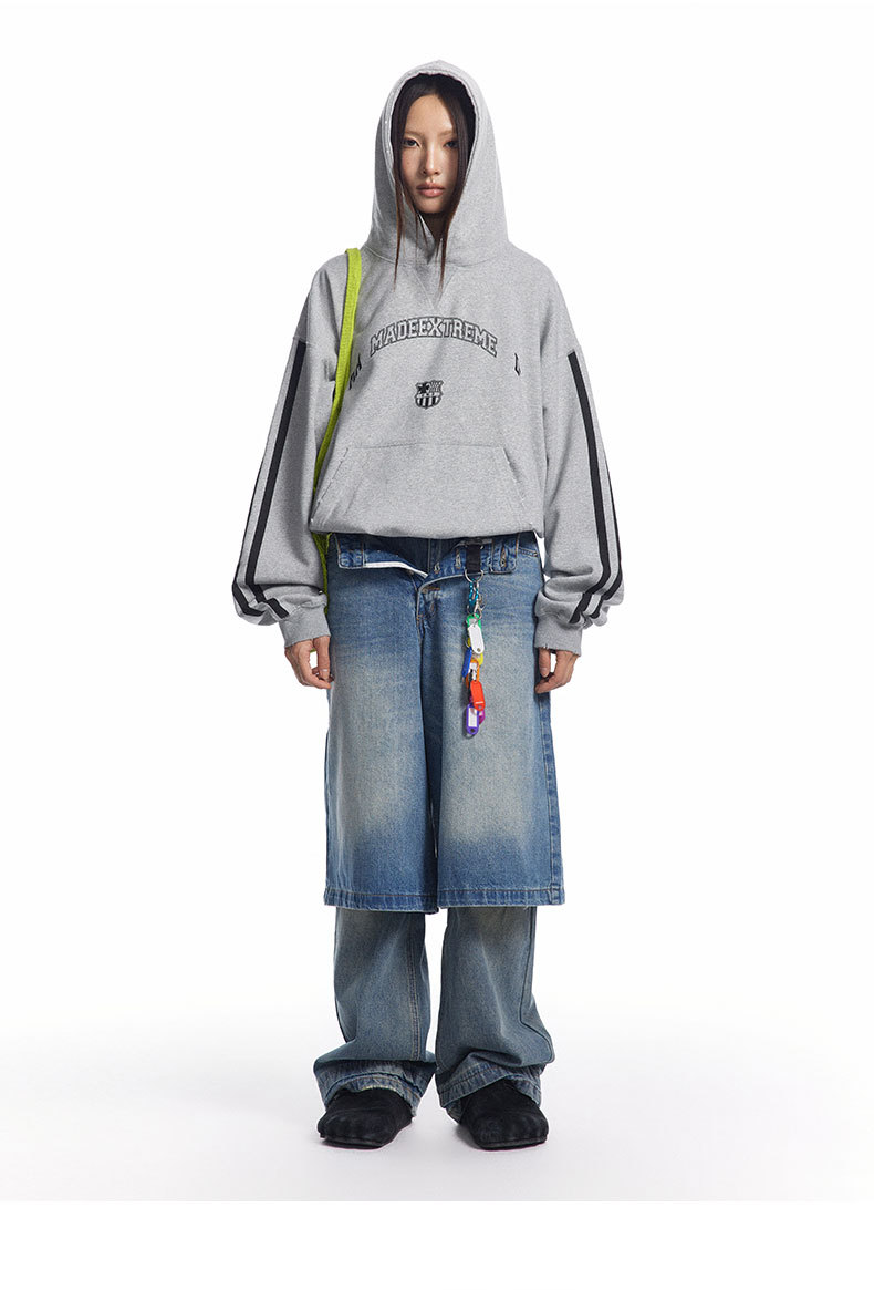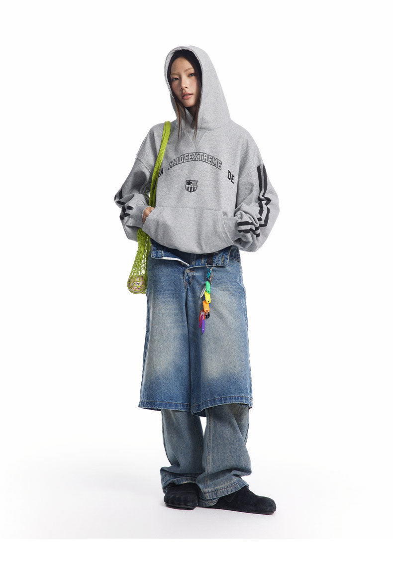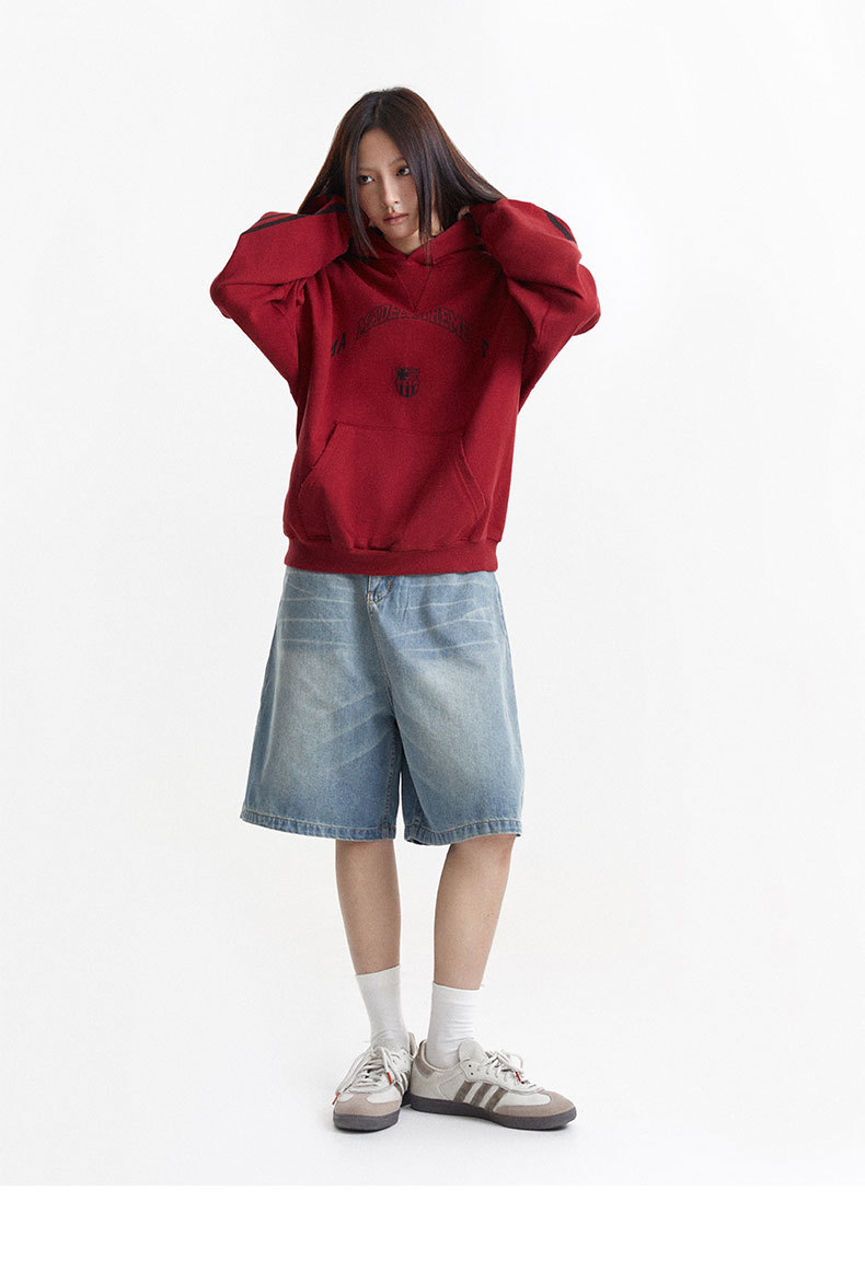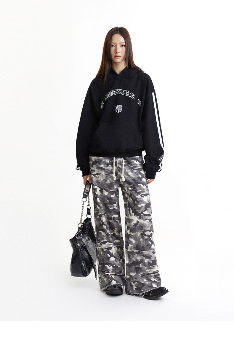 MADEEXTREME Terry Hook-up Retro Letter Loose Casual Hooded Sweater