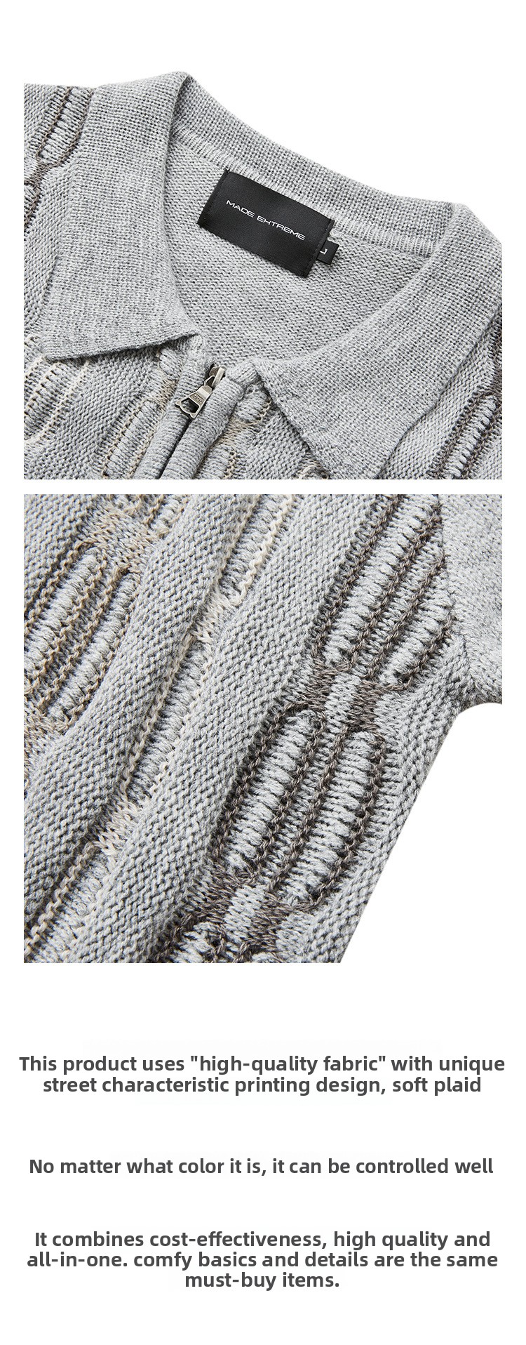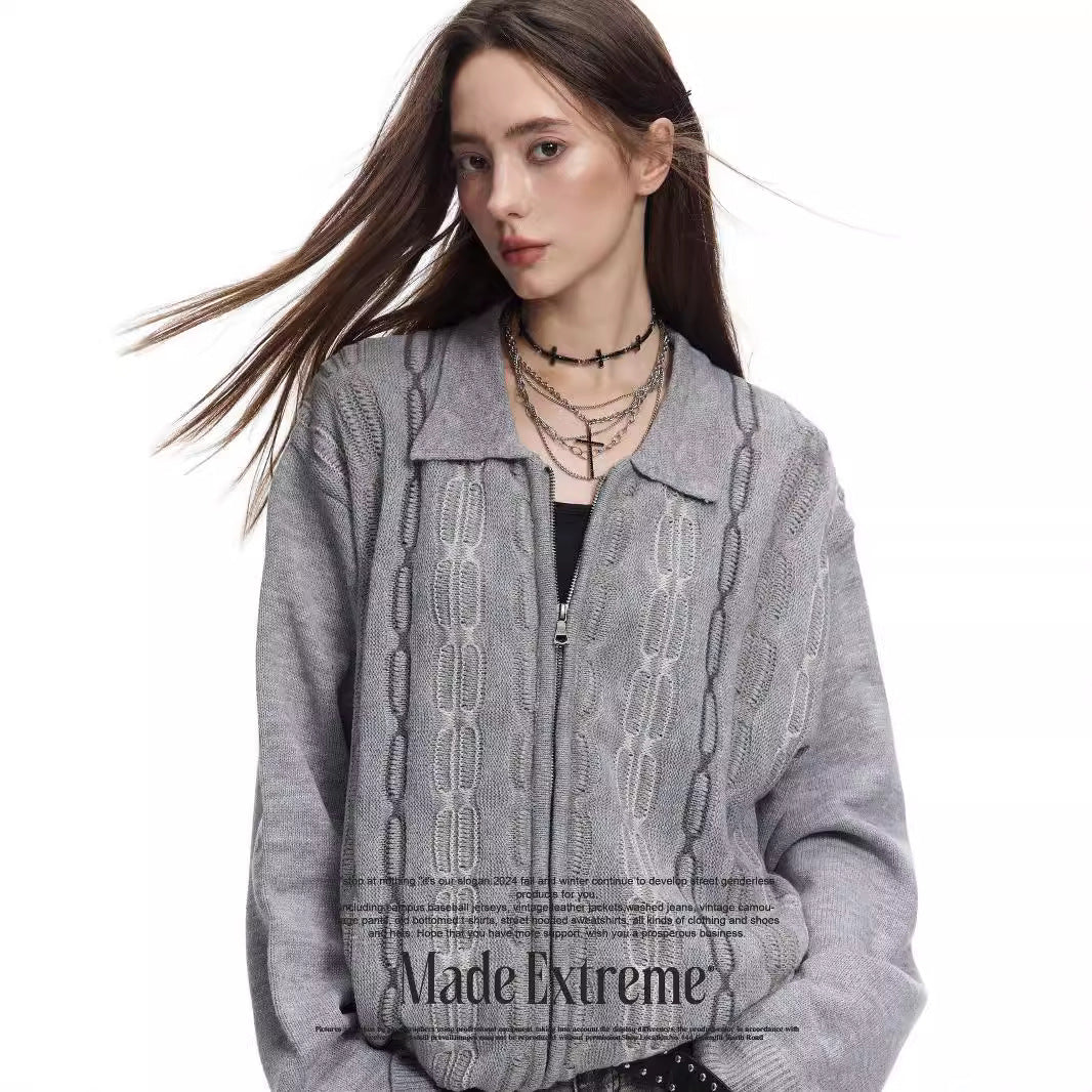 MADEEXTREME Vintage Jacquard Thick Needle Cleanfit Zipper Sweater Knitted Sweater