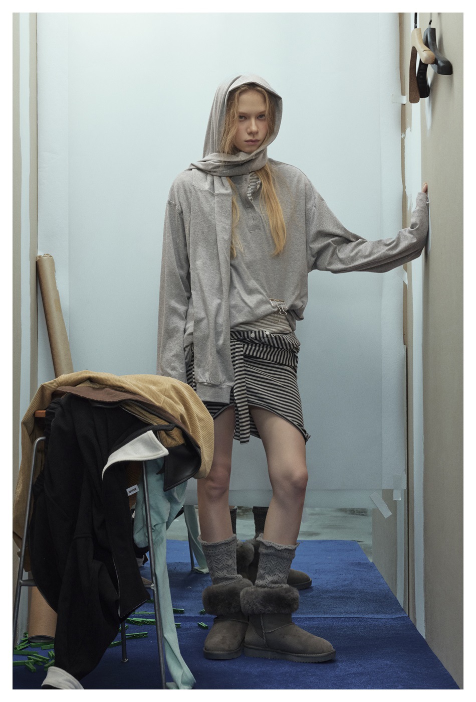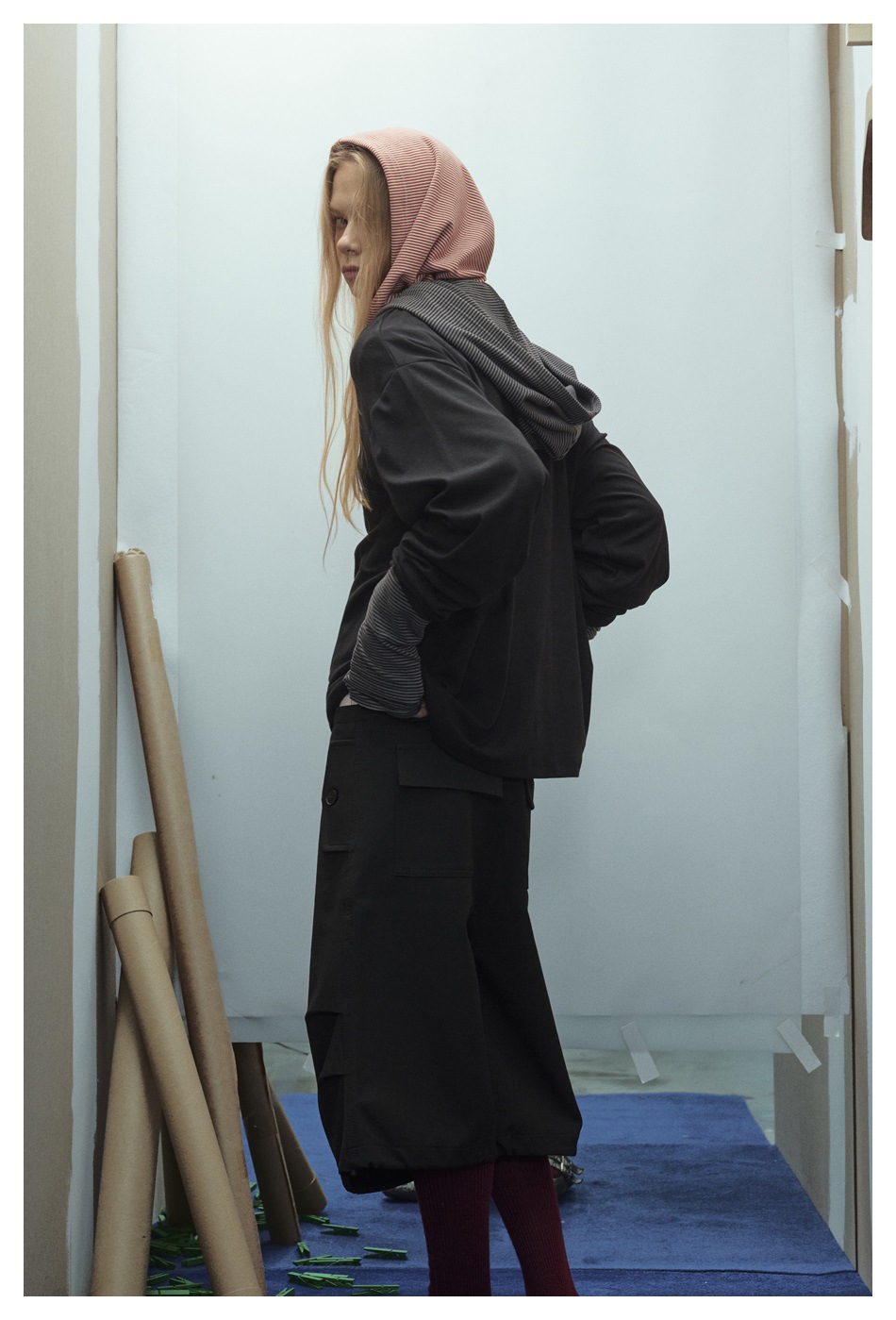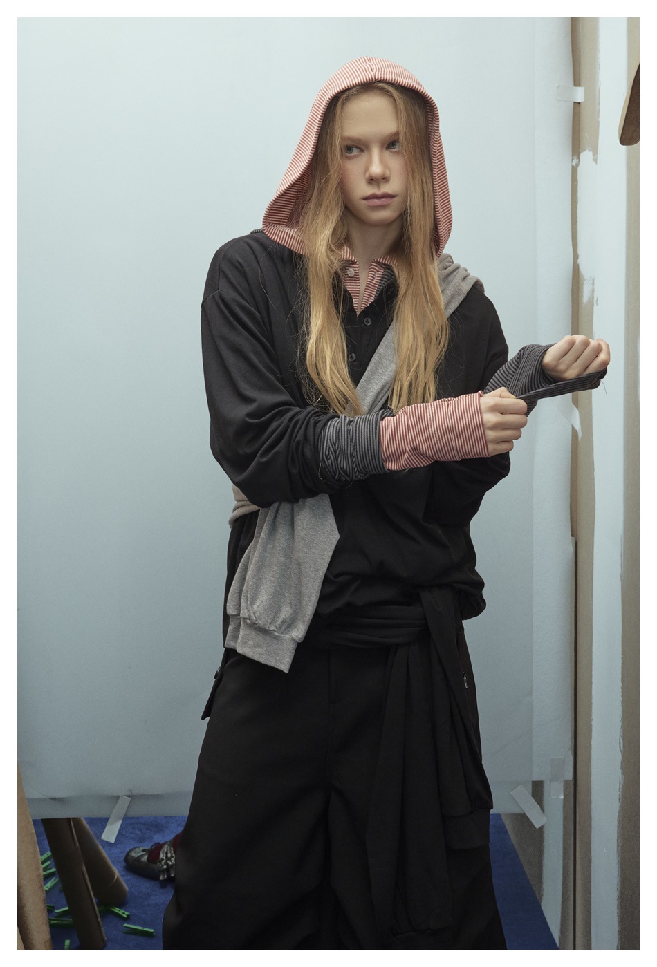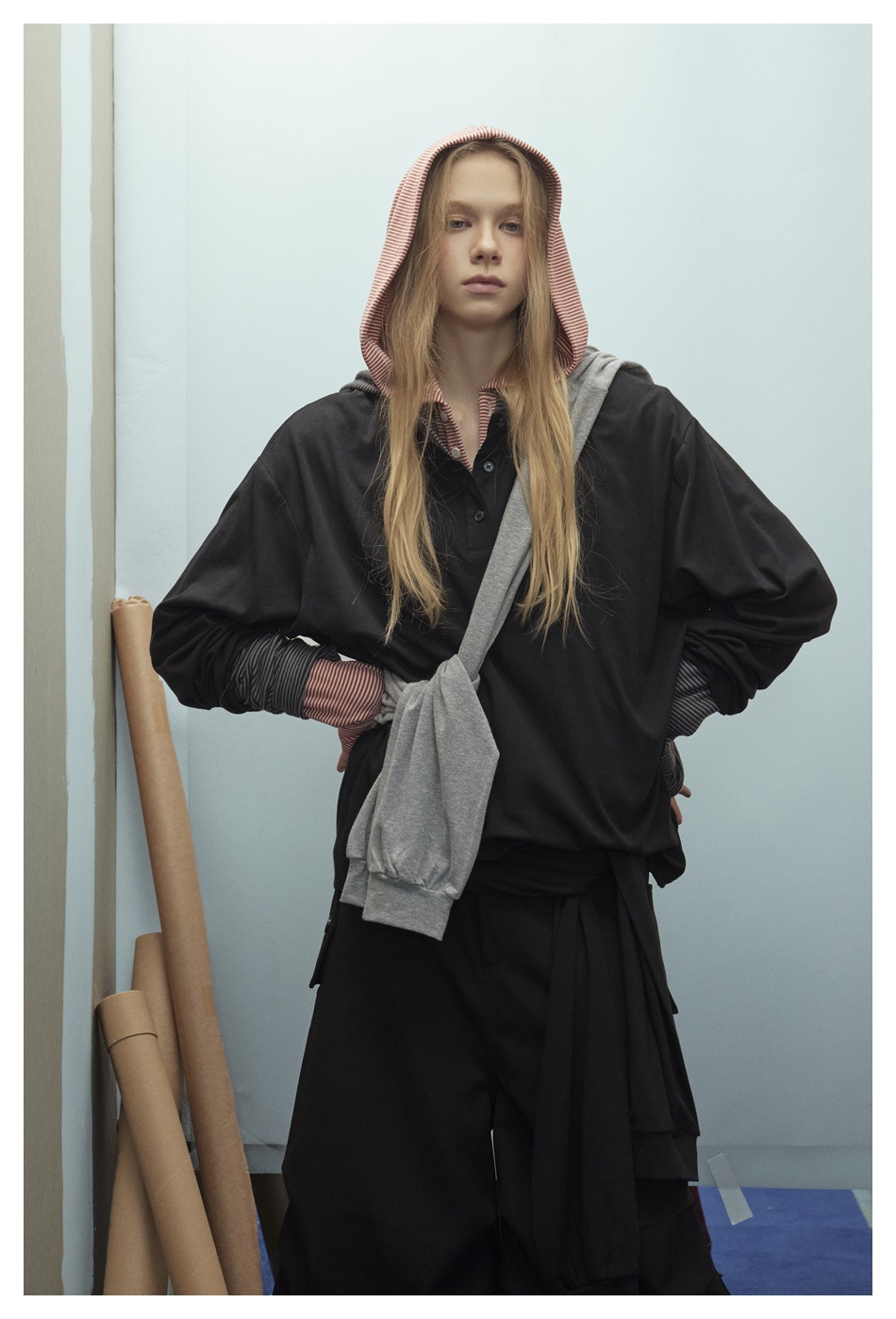 STAFFPICK College Style Loose Crew Neck Shawl Hooded Top Sweater