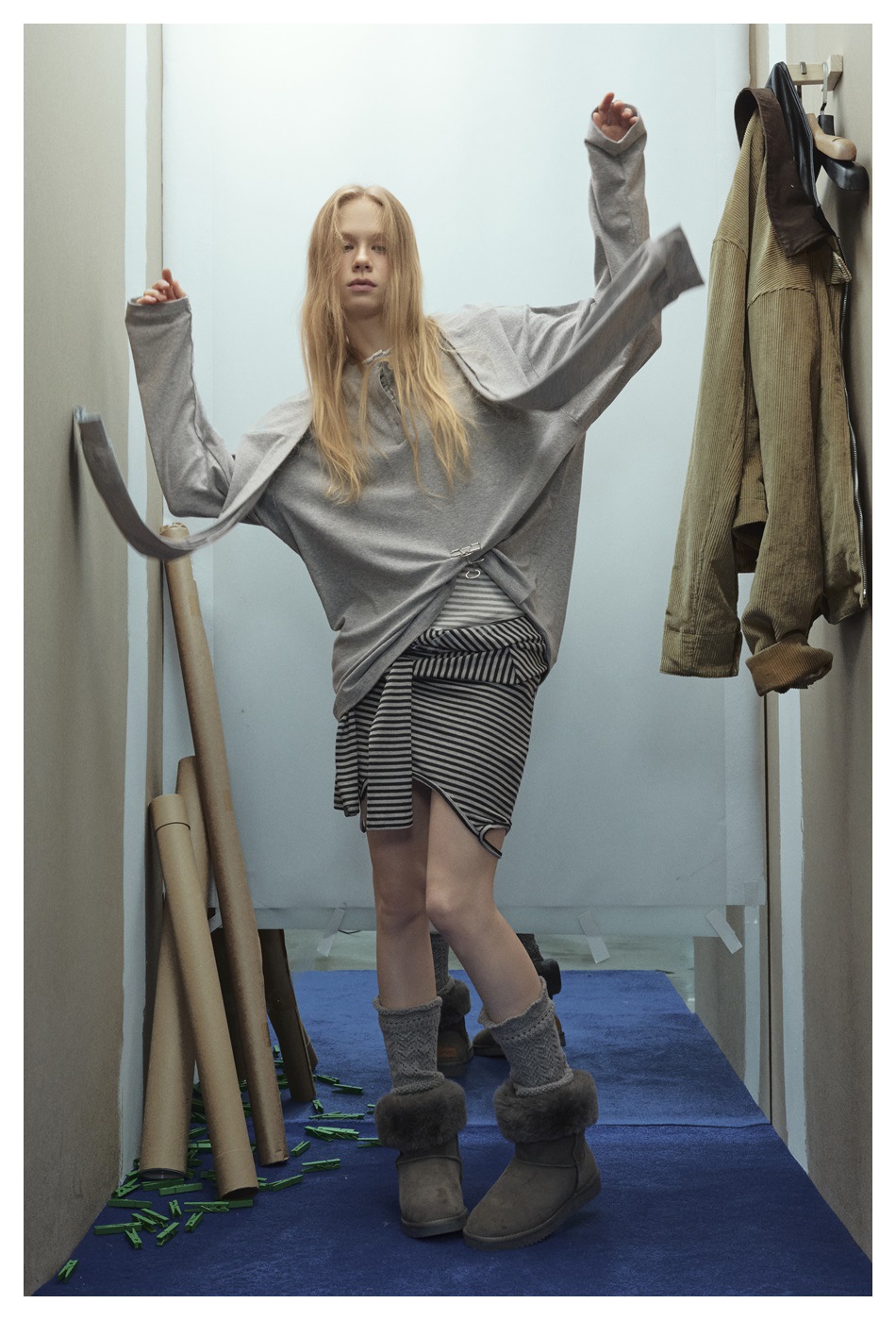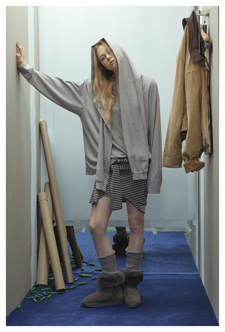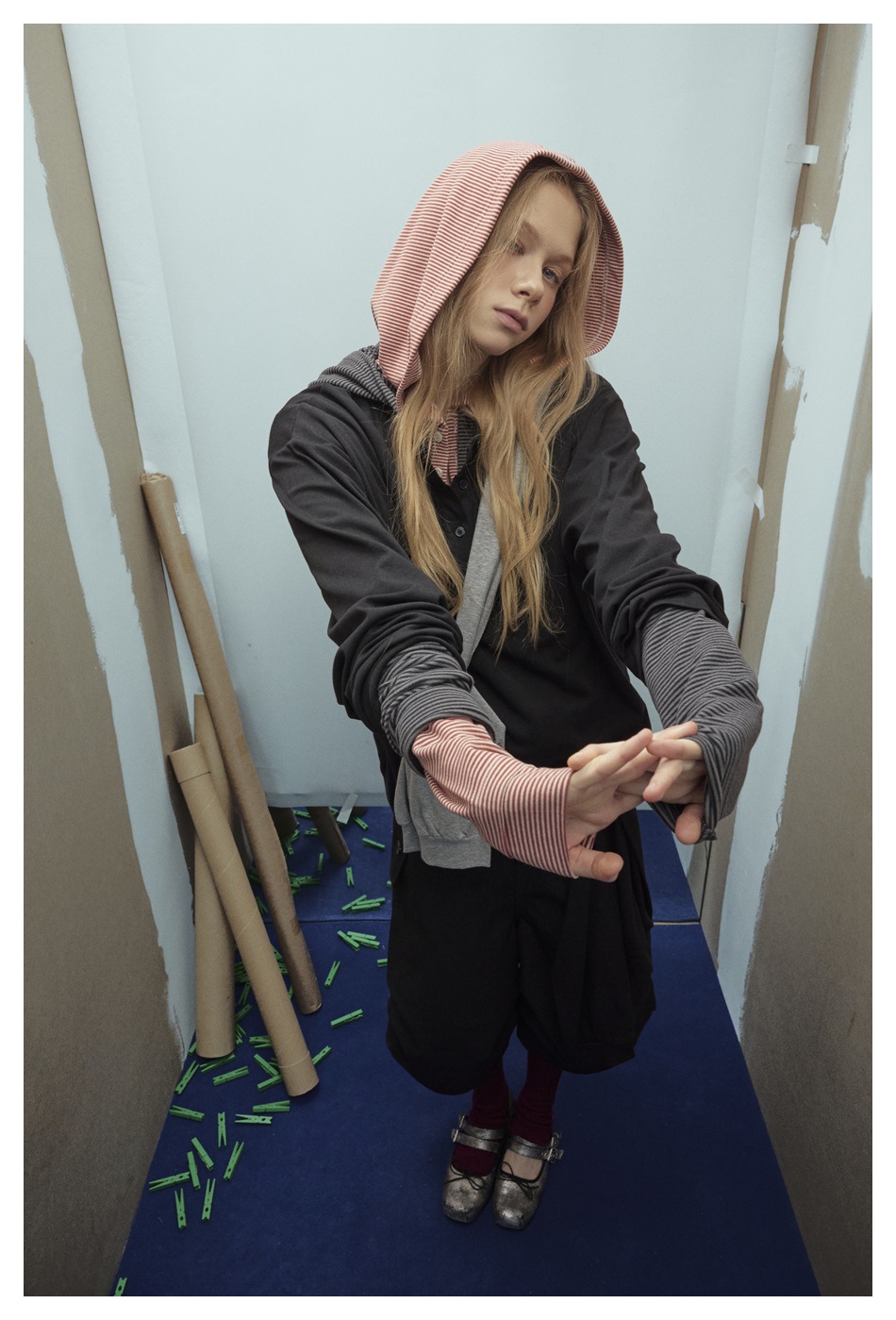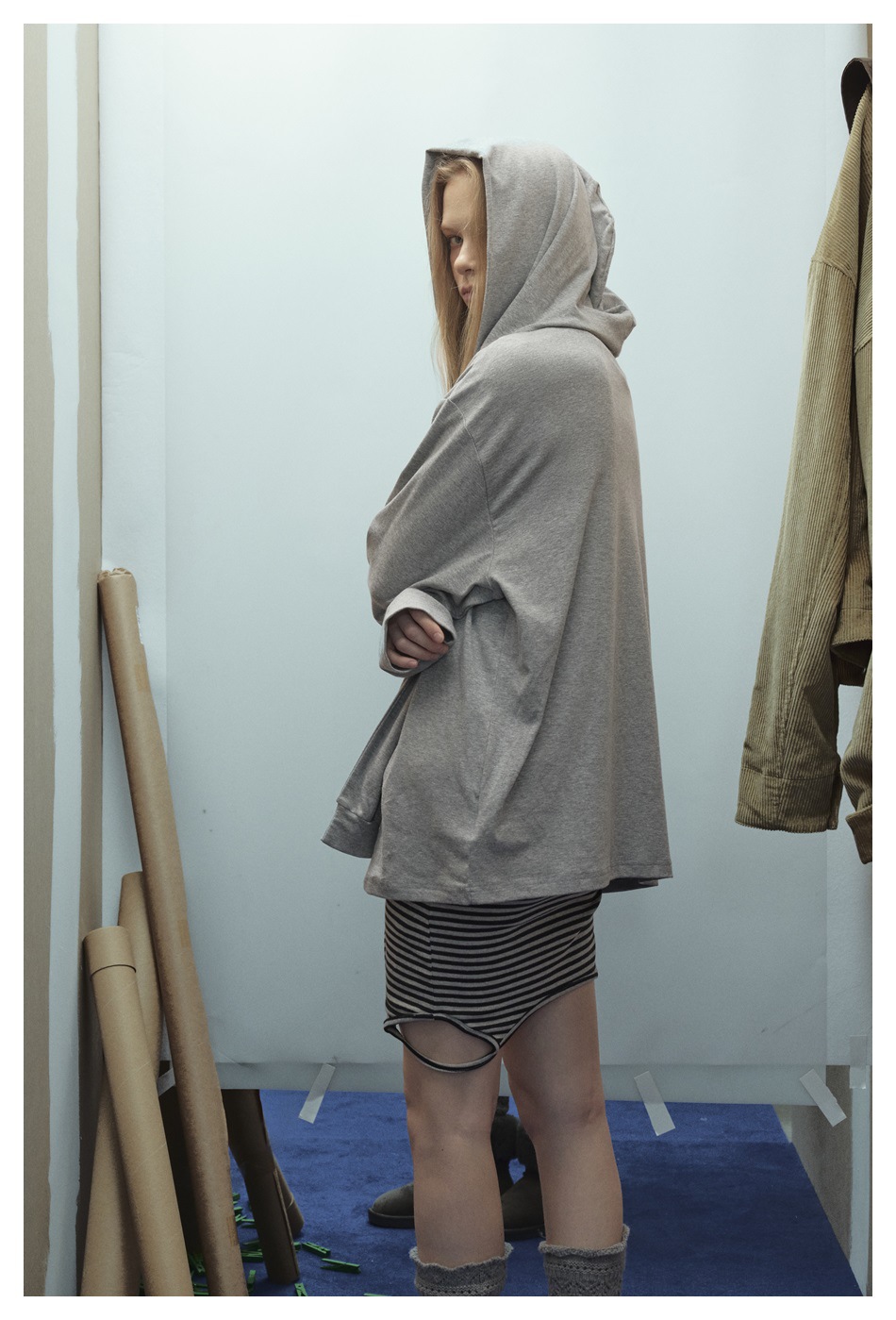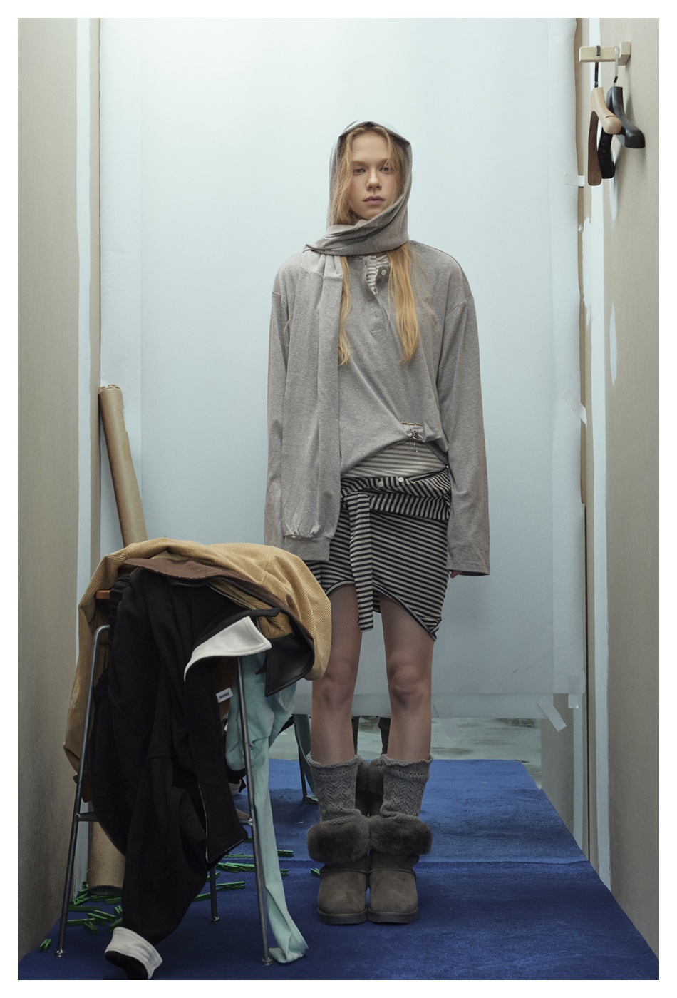 STAFFPICK College Style Loose Crew Neck Shawl Hooded Top Sweater