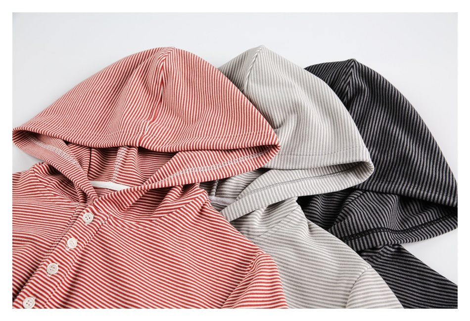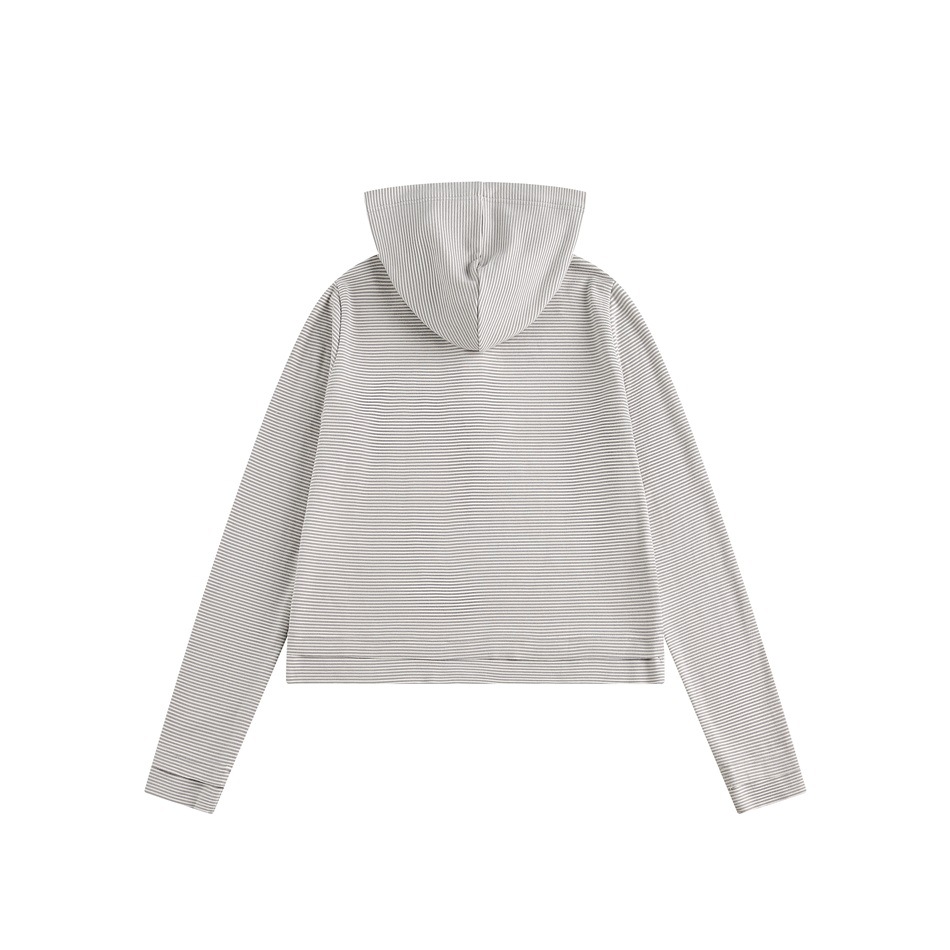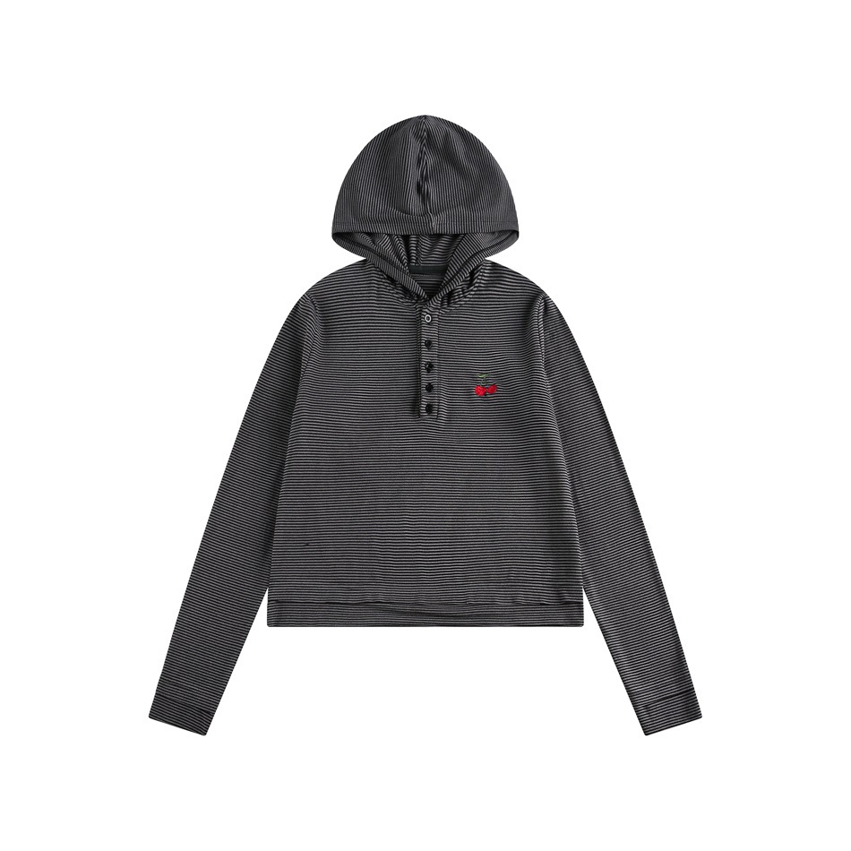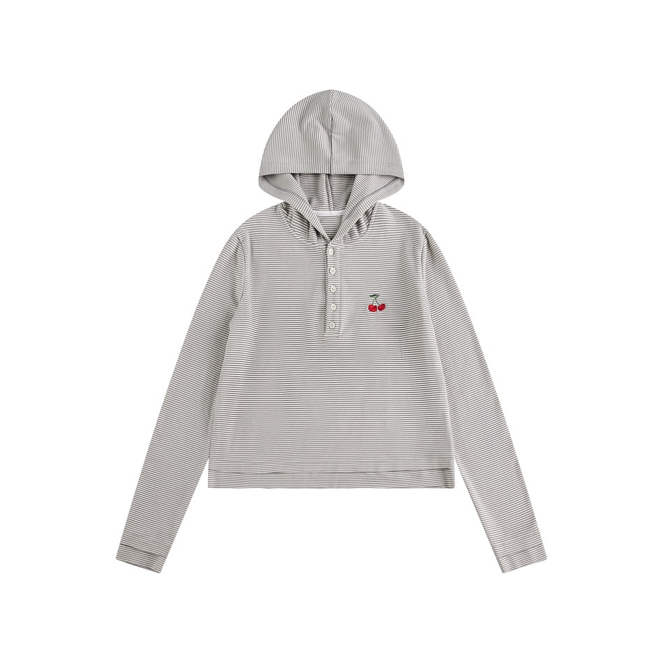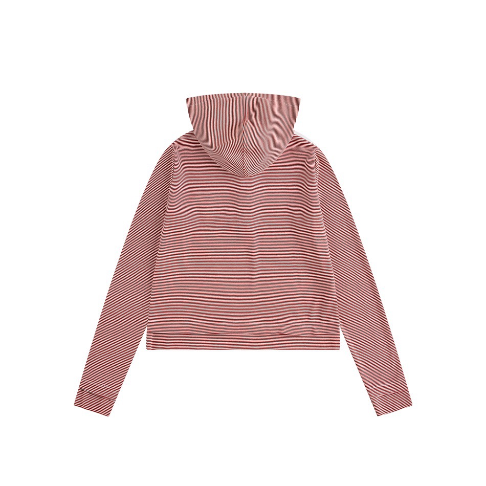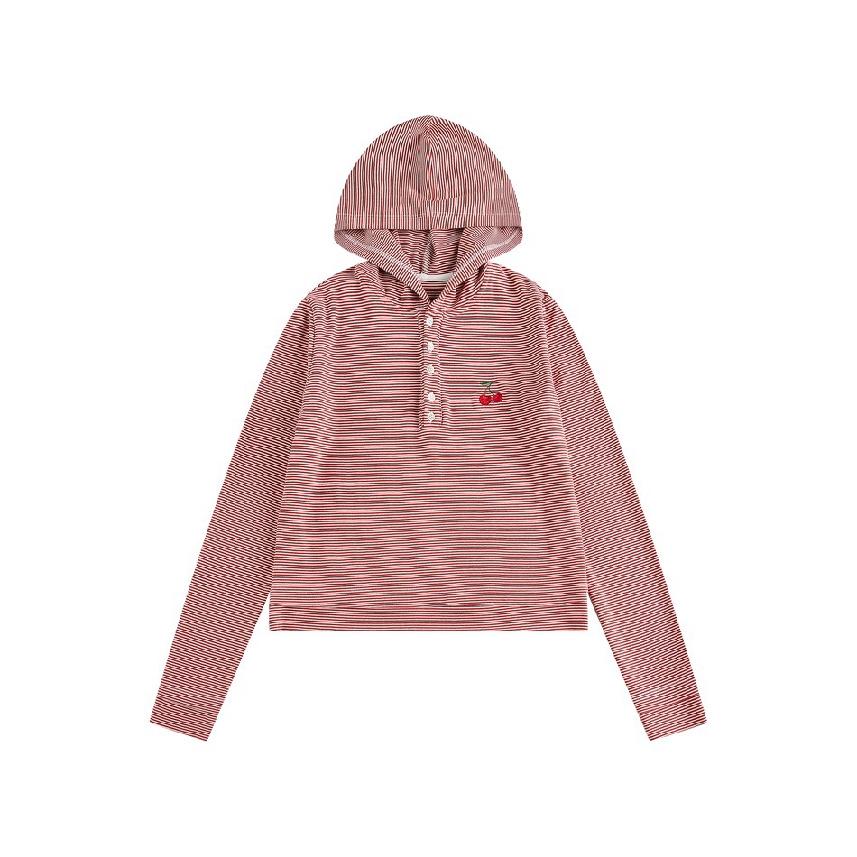 STAFFPICK Girly Striped Top Skinny Embroidered Hooded Sweater