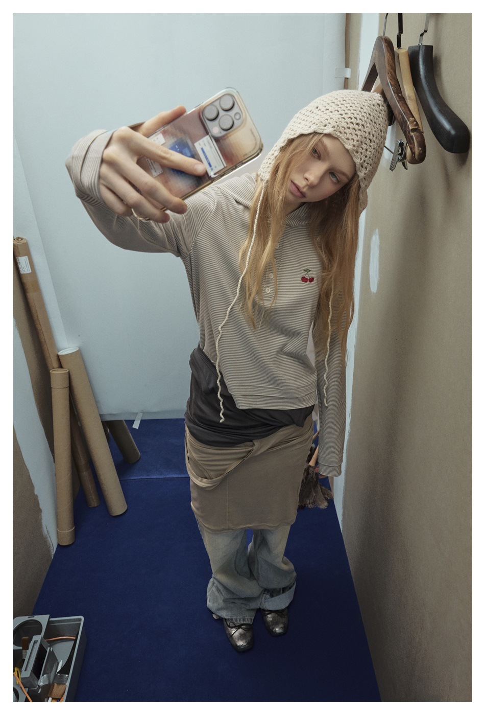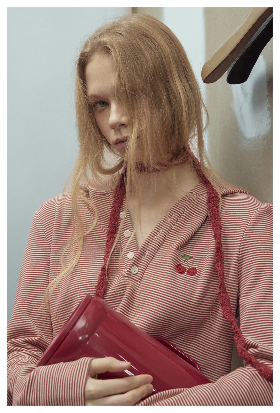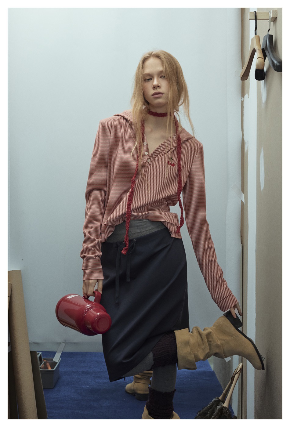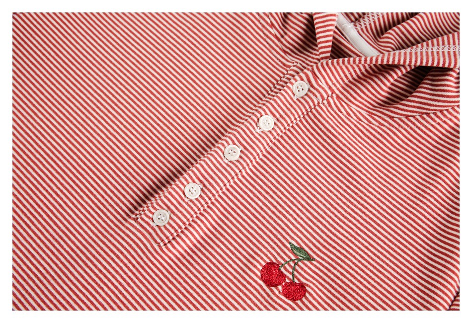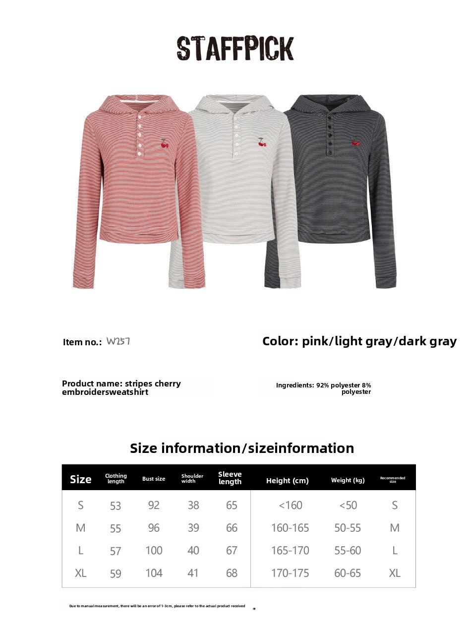 STAFFPICK Girly Striped Top Skinny Embroidered Hooded Sweater
