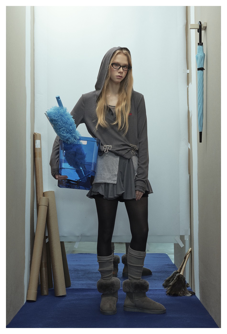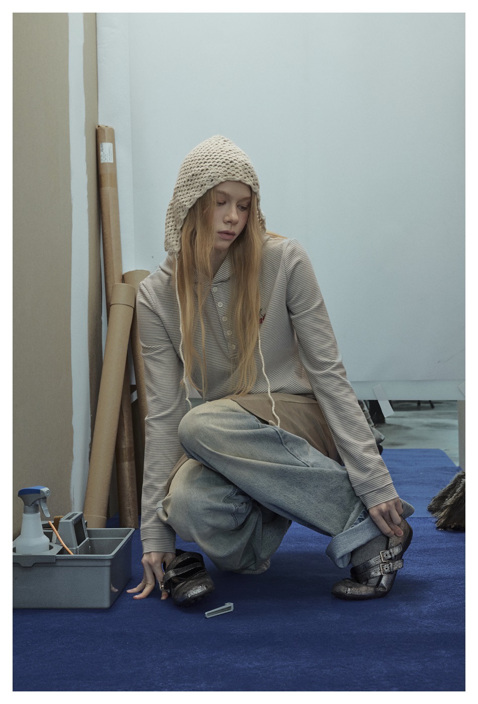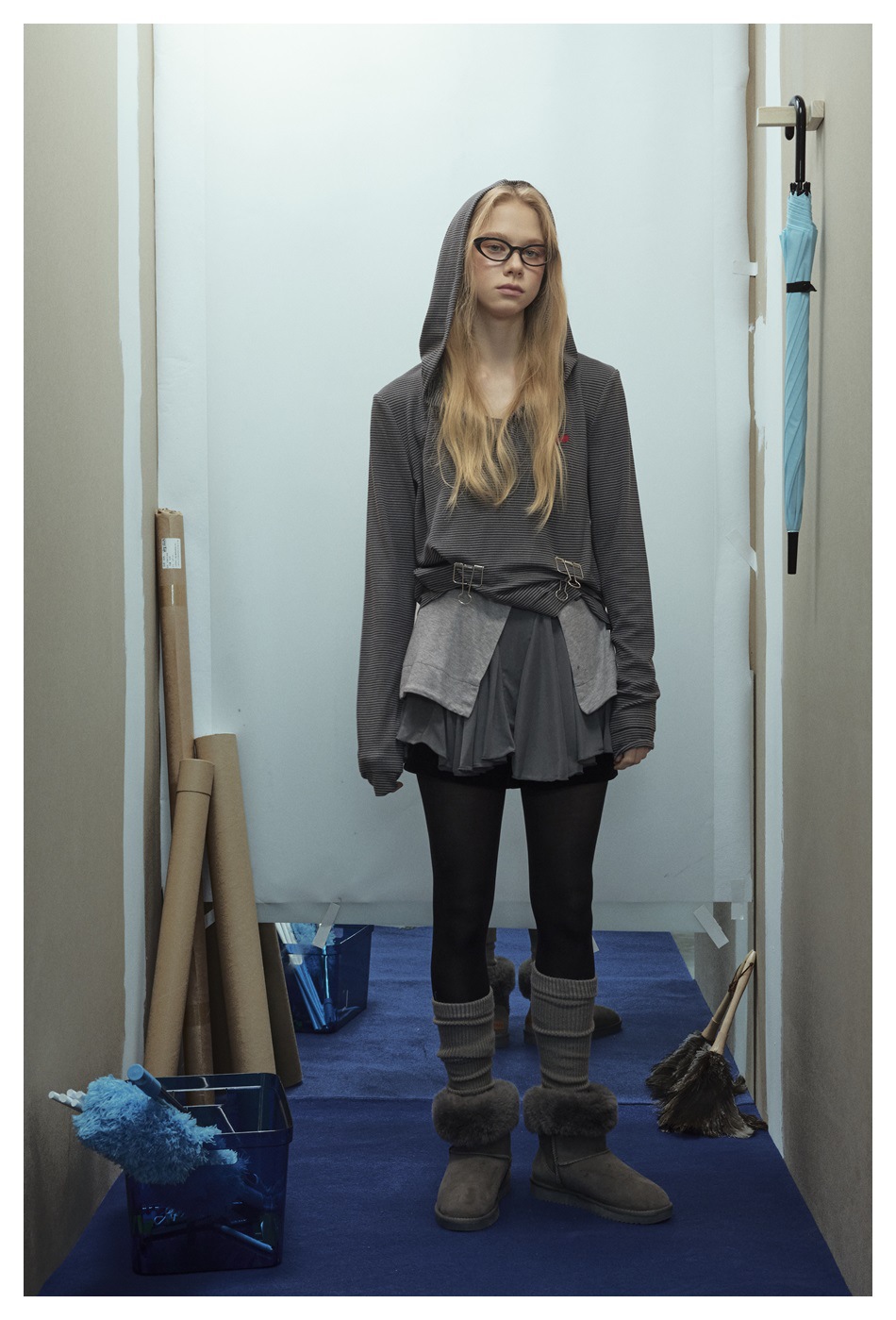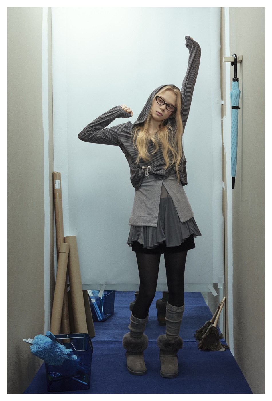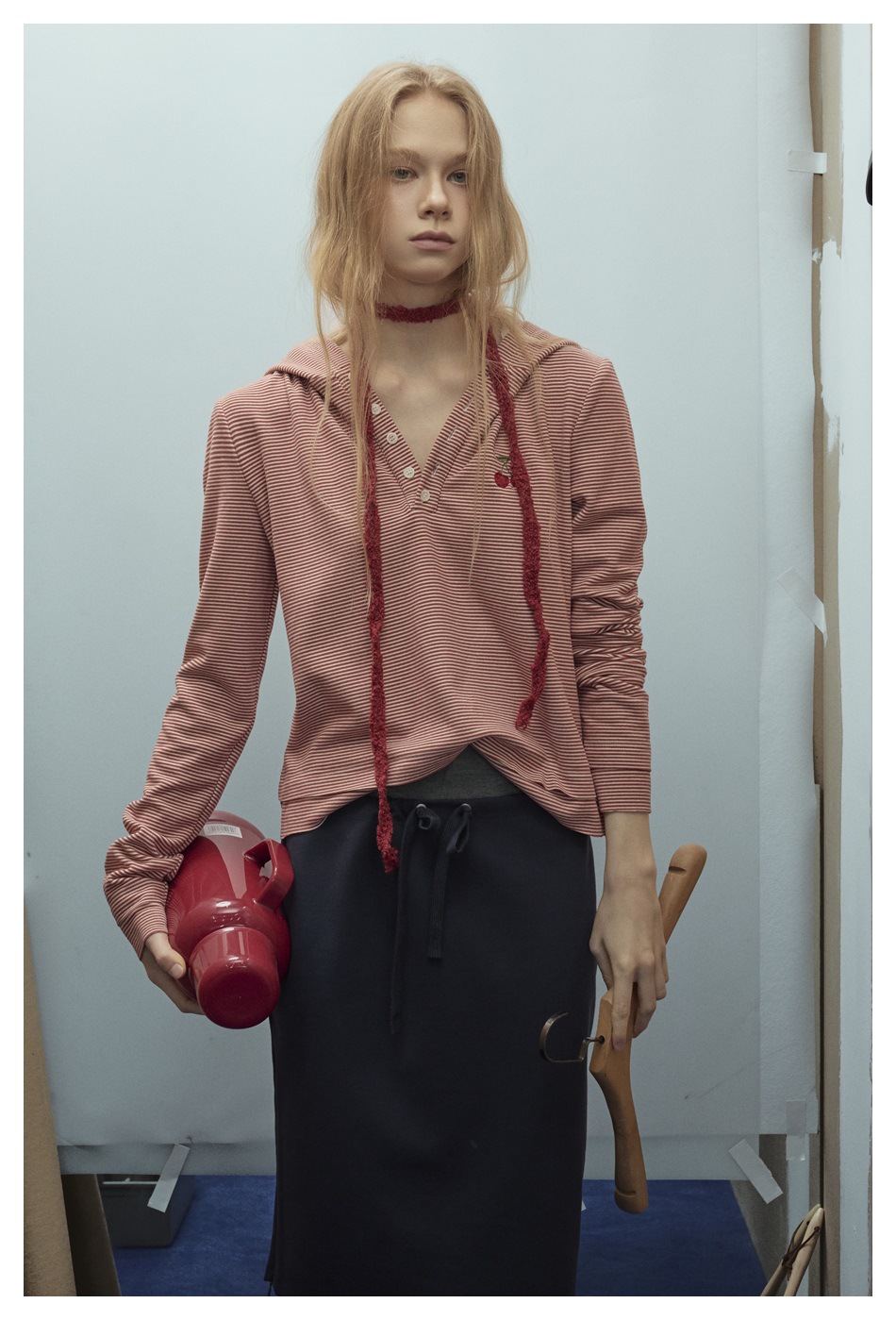 STAFFPICK Girly Striped Top Skinny Embroidered Hooded Sweater
