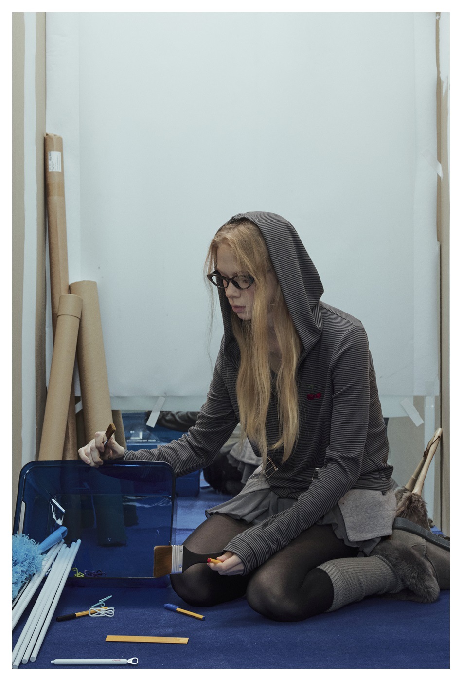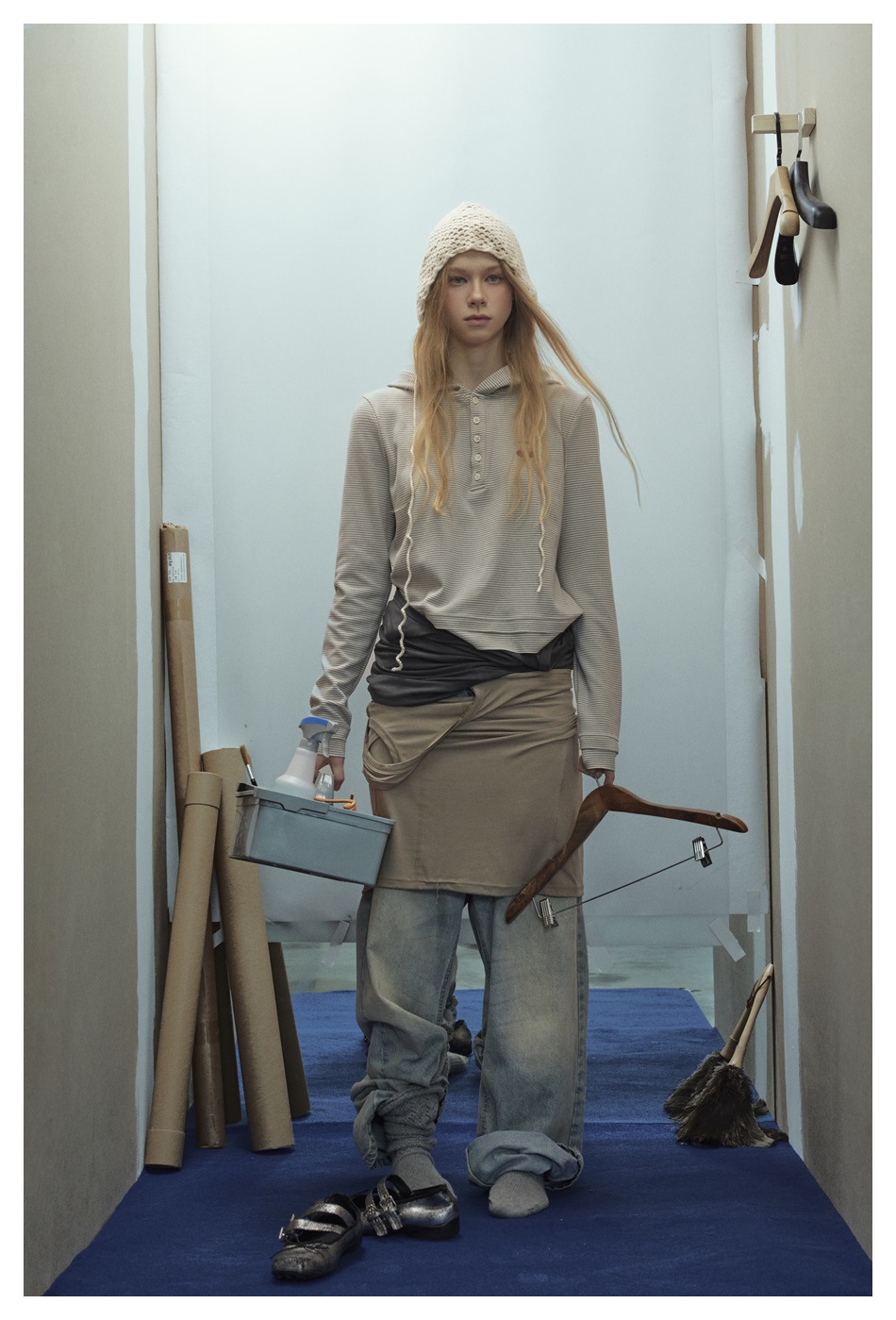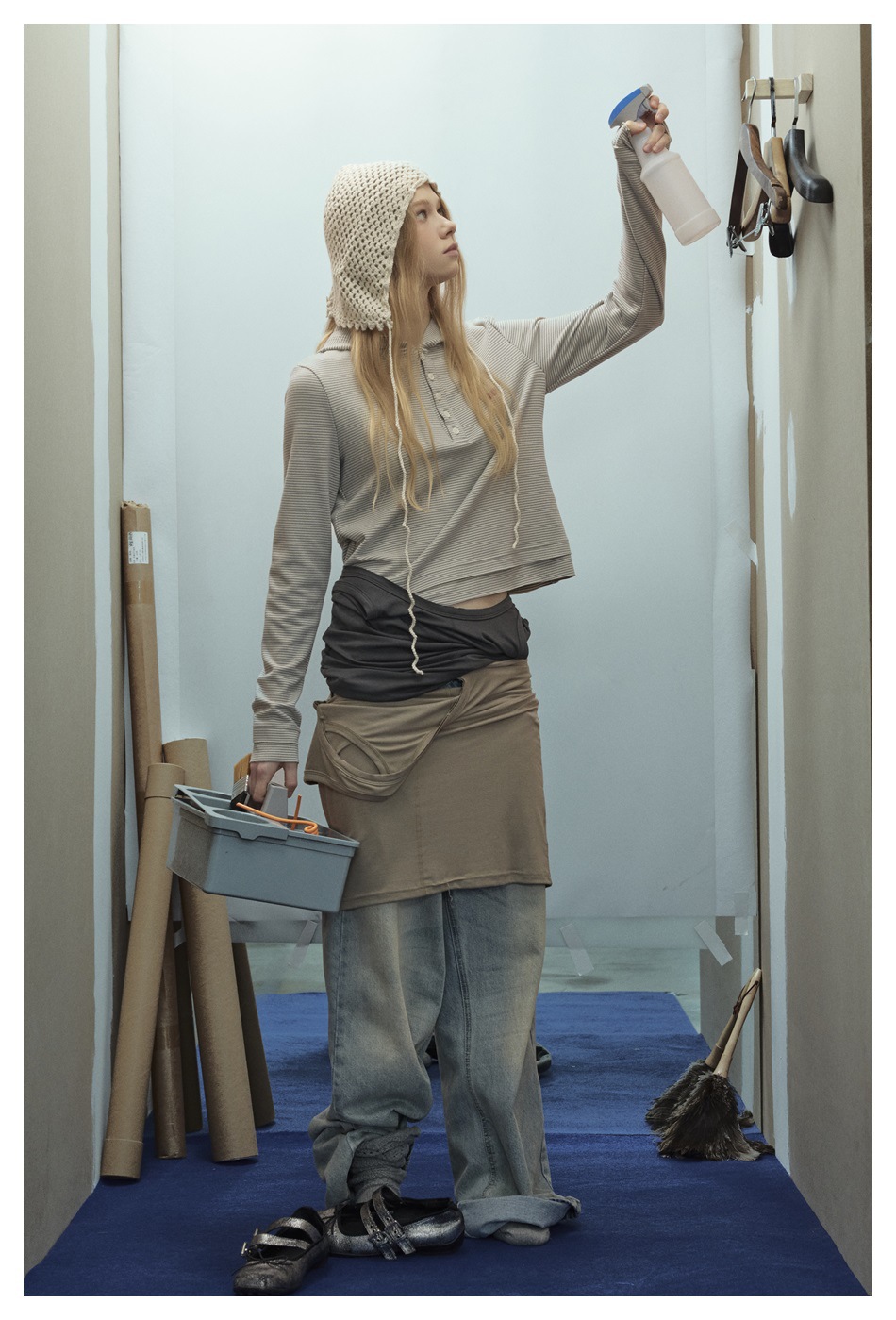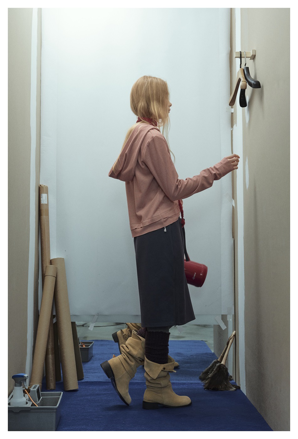 STAFFPICK Girly Striped Top Skinny Embroidered Hooded Sweater