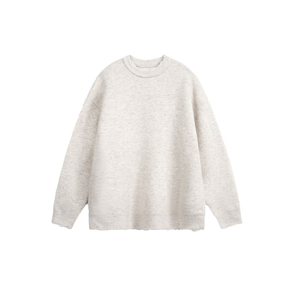 YEOOTI Design Sweater Crew Neck Loose Knitted Sweater