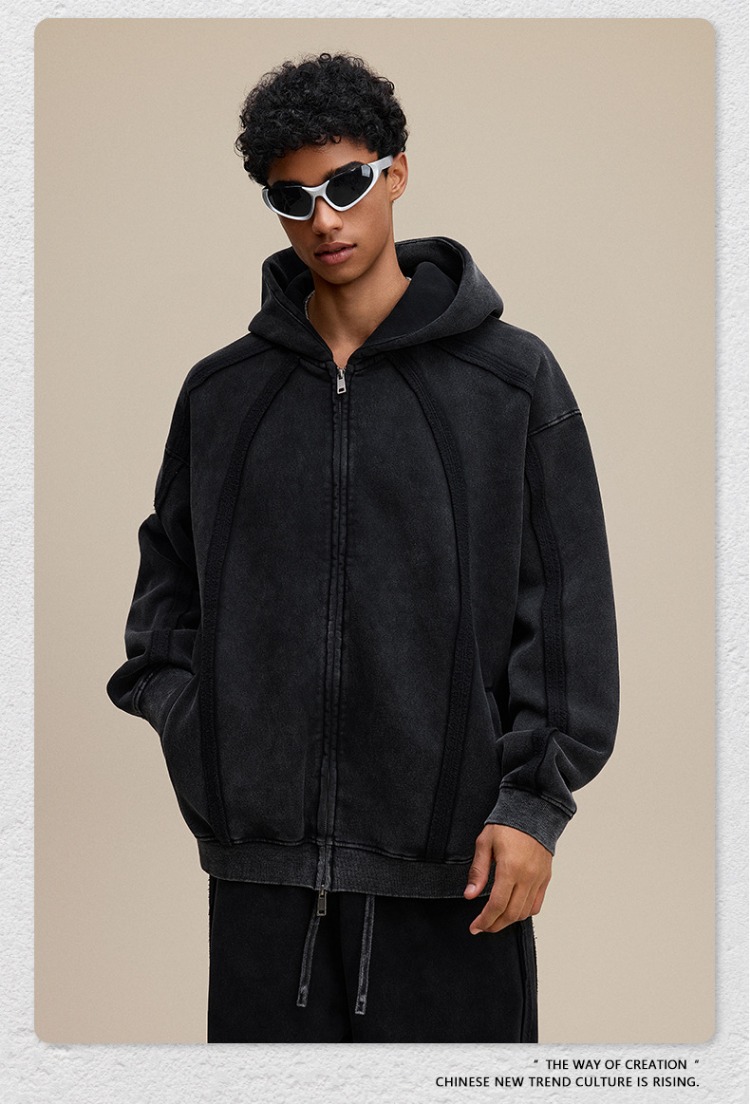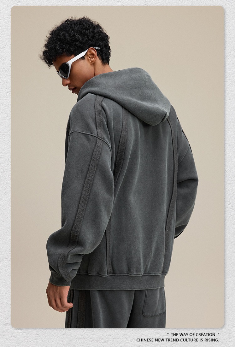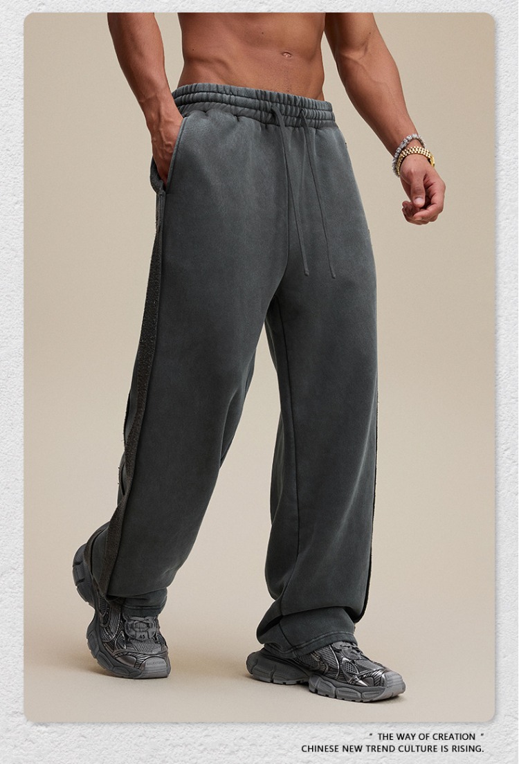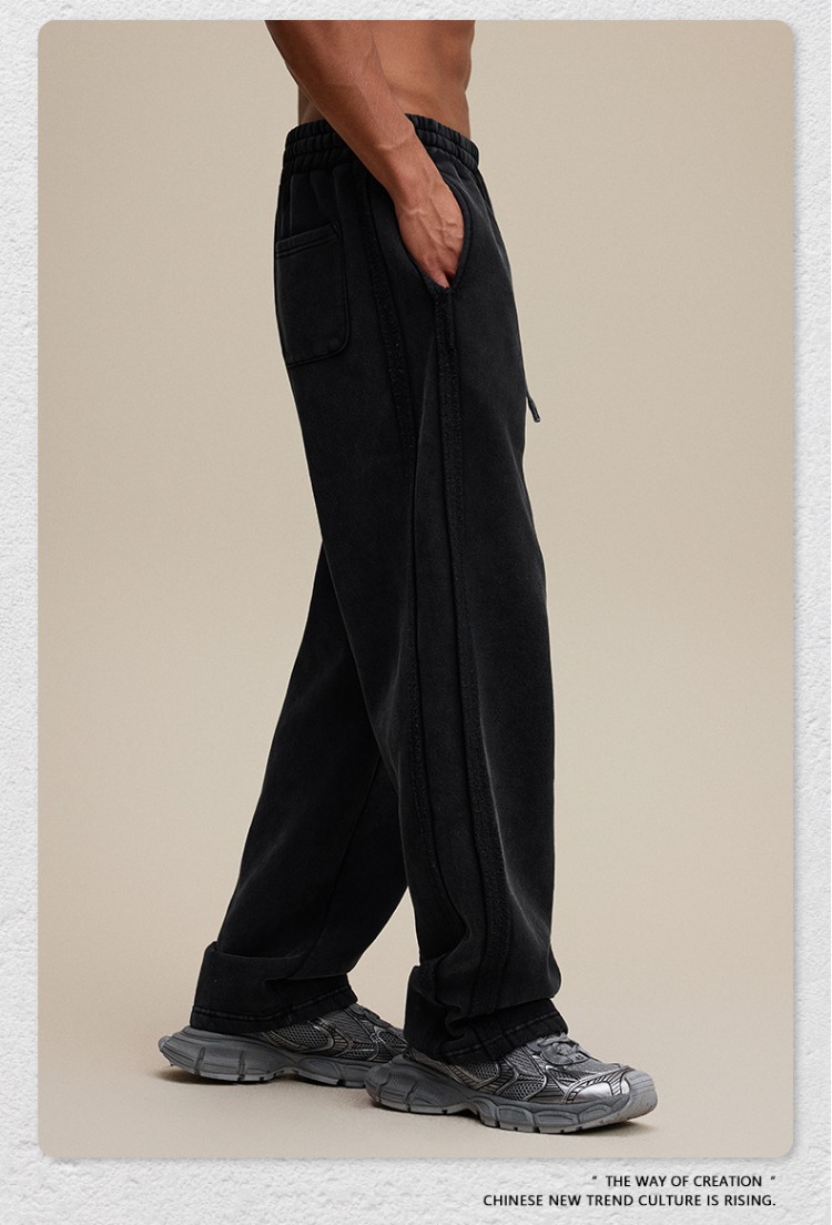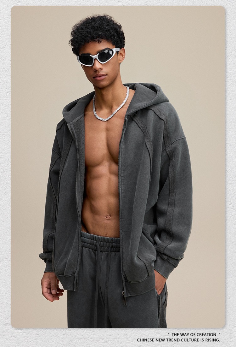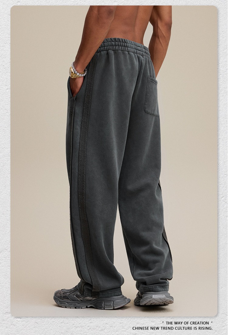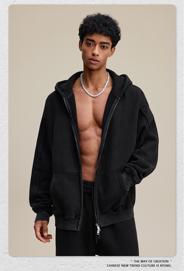 BE Men's Retro Fleece Fried Snowflake Zipper Sweater Straight Pants Set
