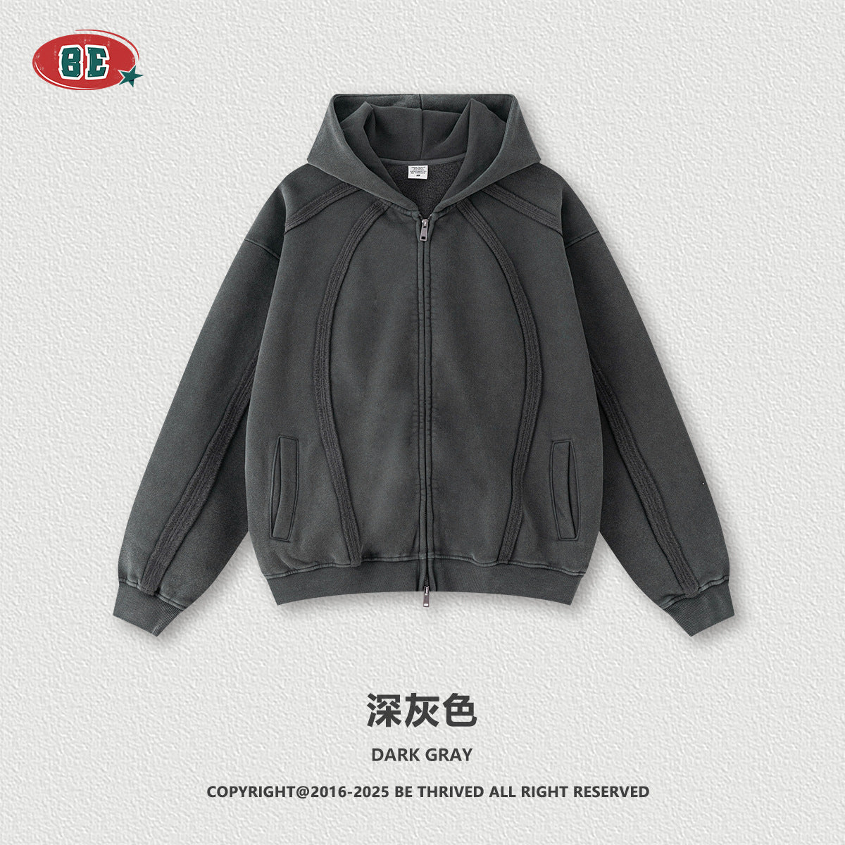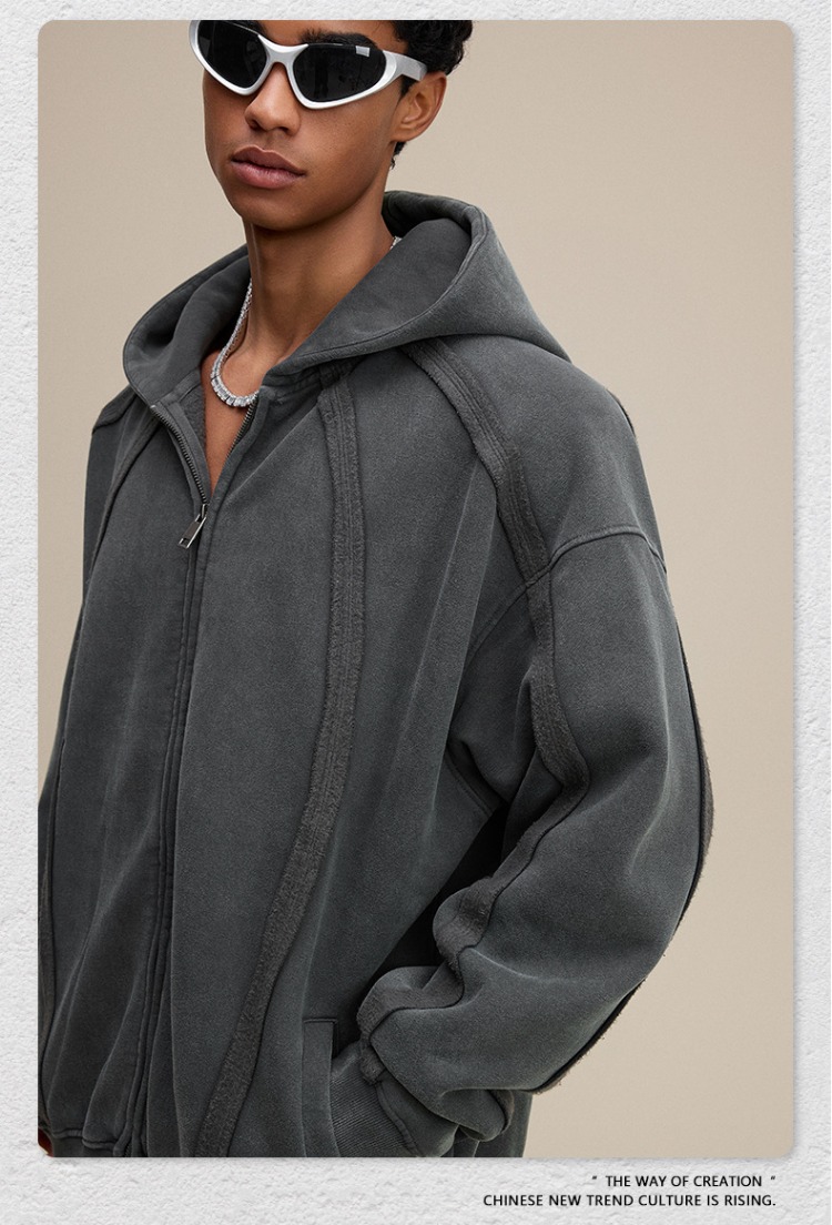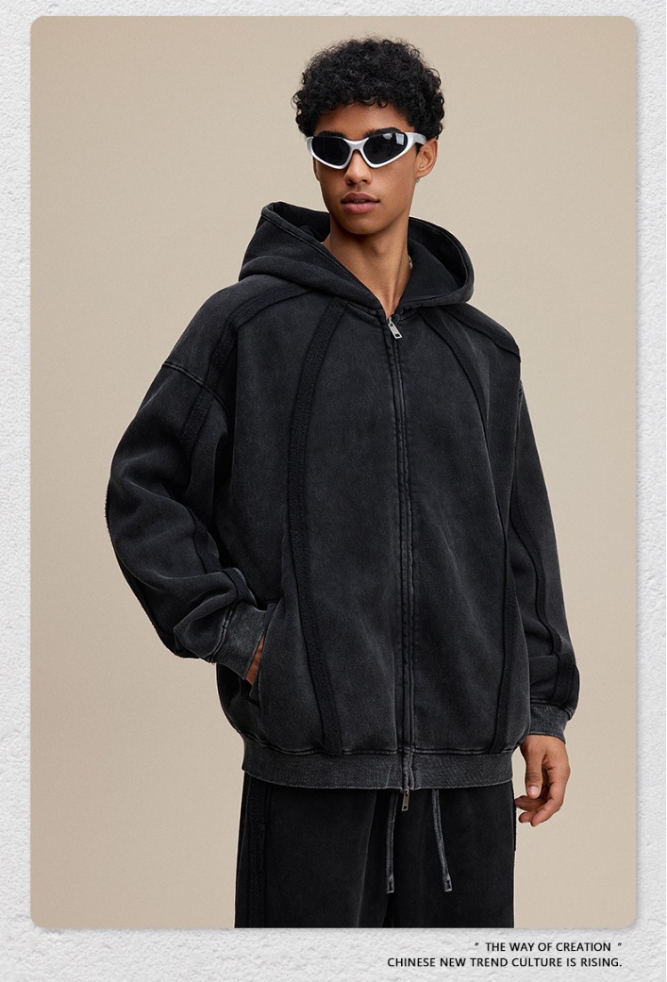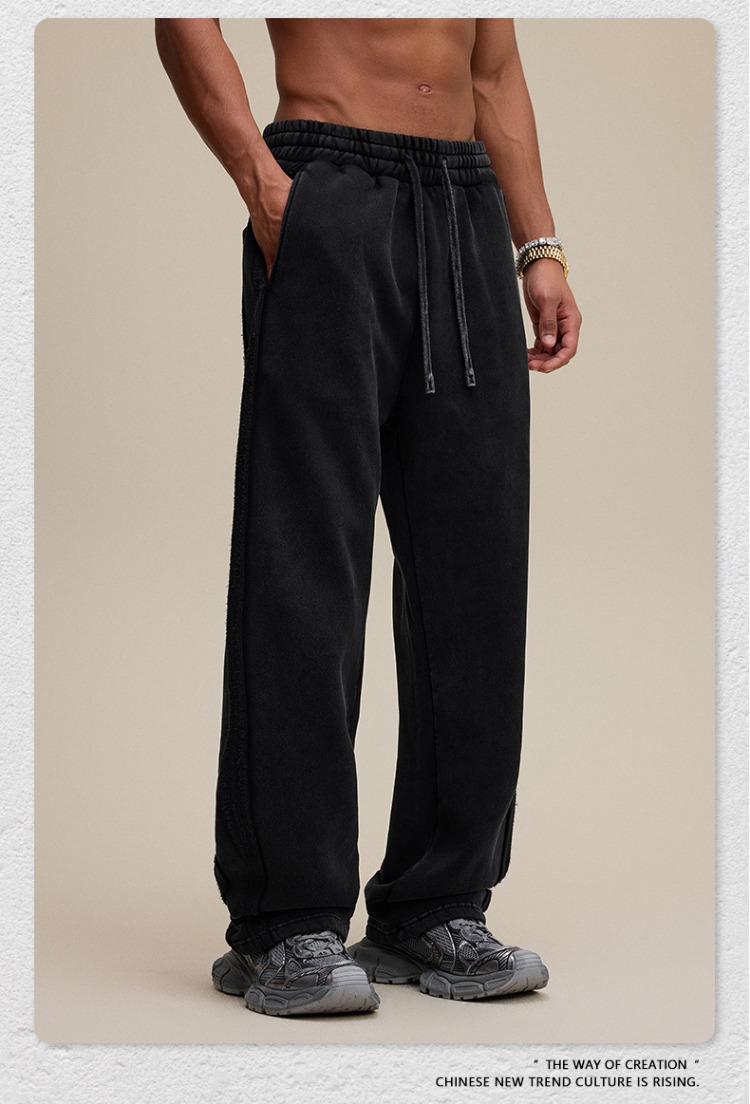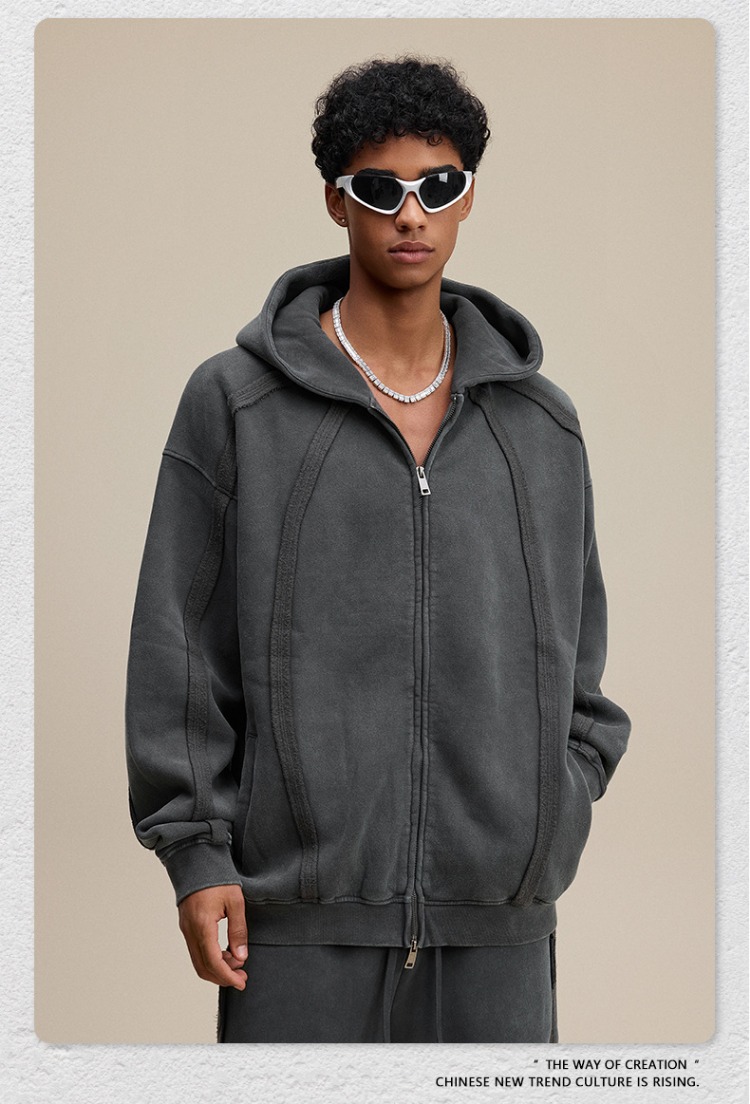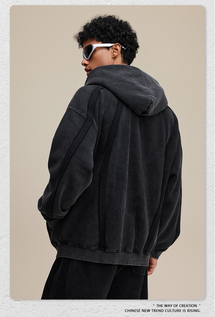 BE Men's Retro Fleece Fried Snowflake Zipper Sweater Straight Pants Set