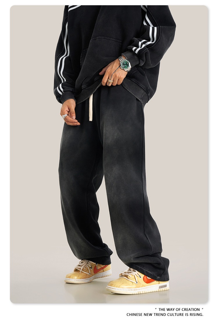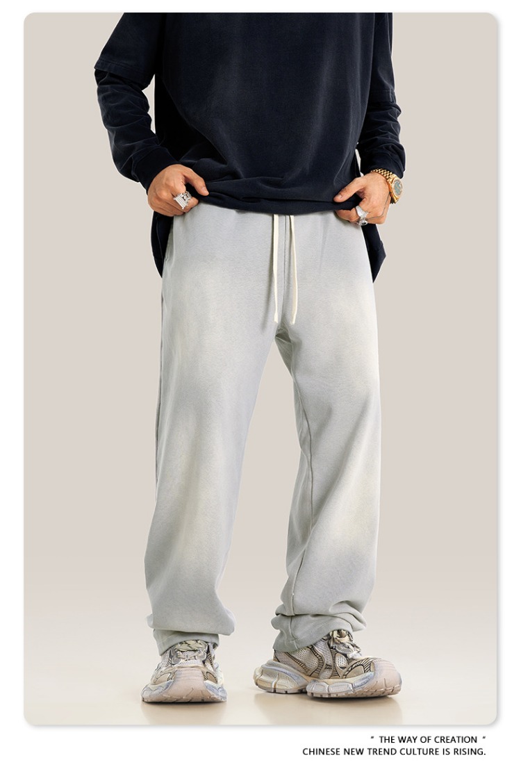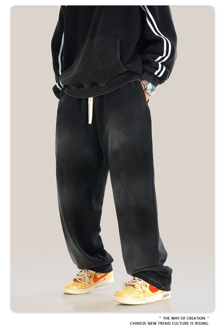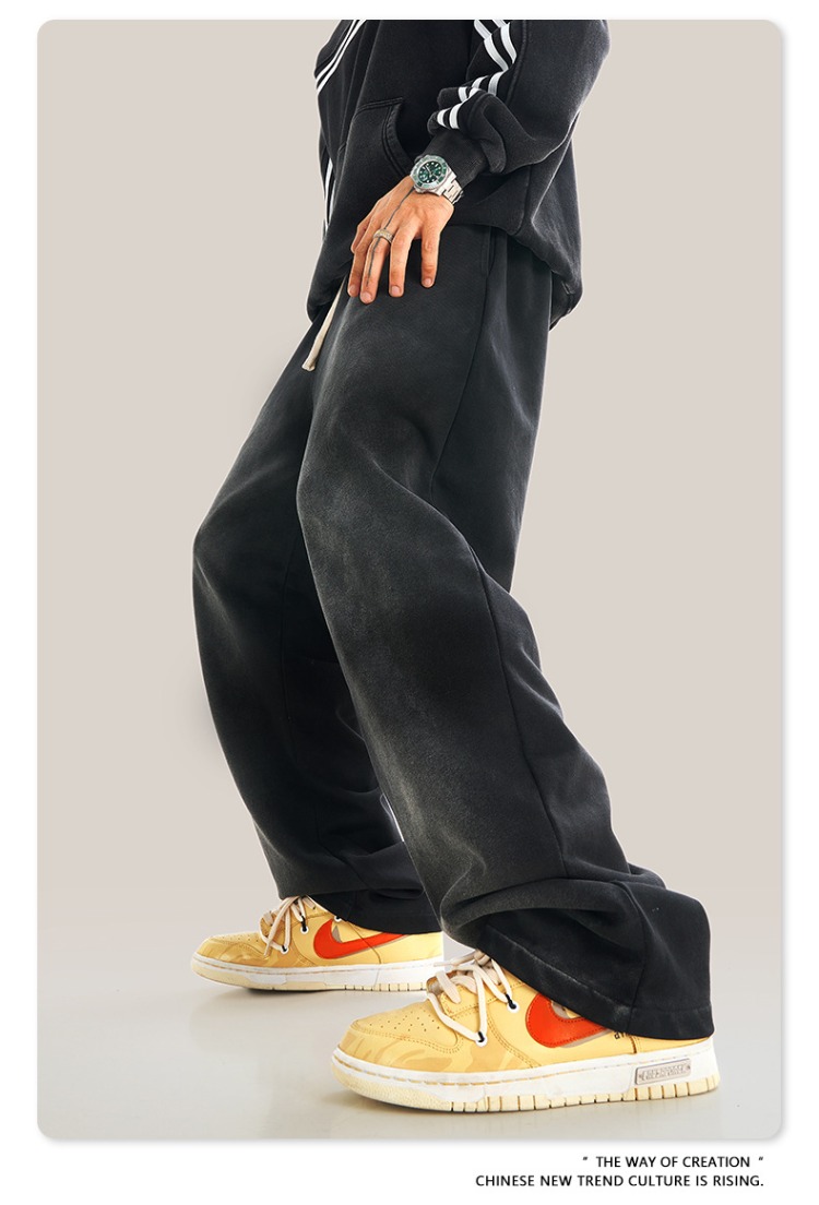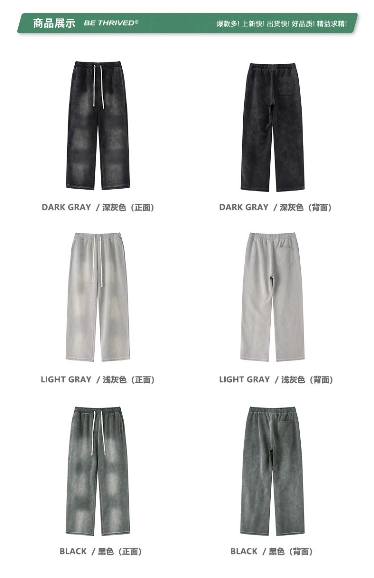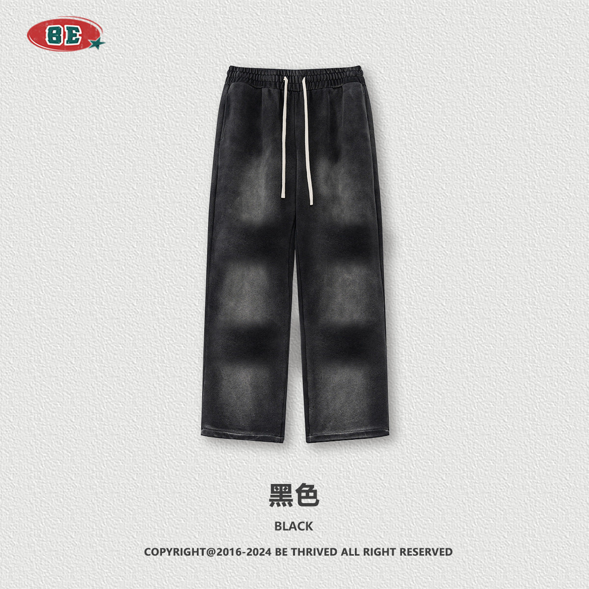 BE men's washed and old sweatpants straight-leg pants loose sweatpants