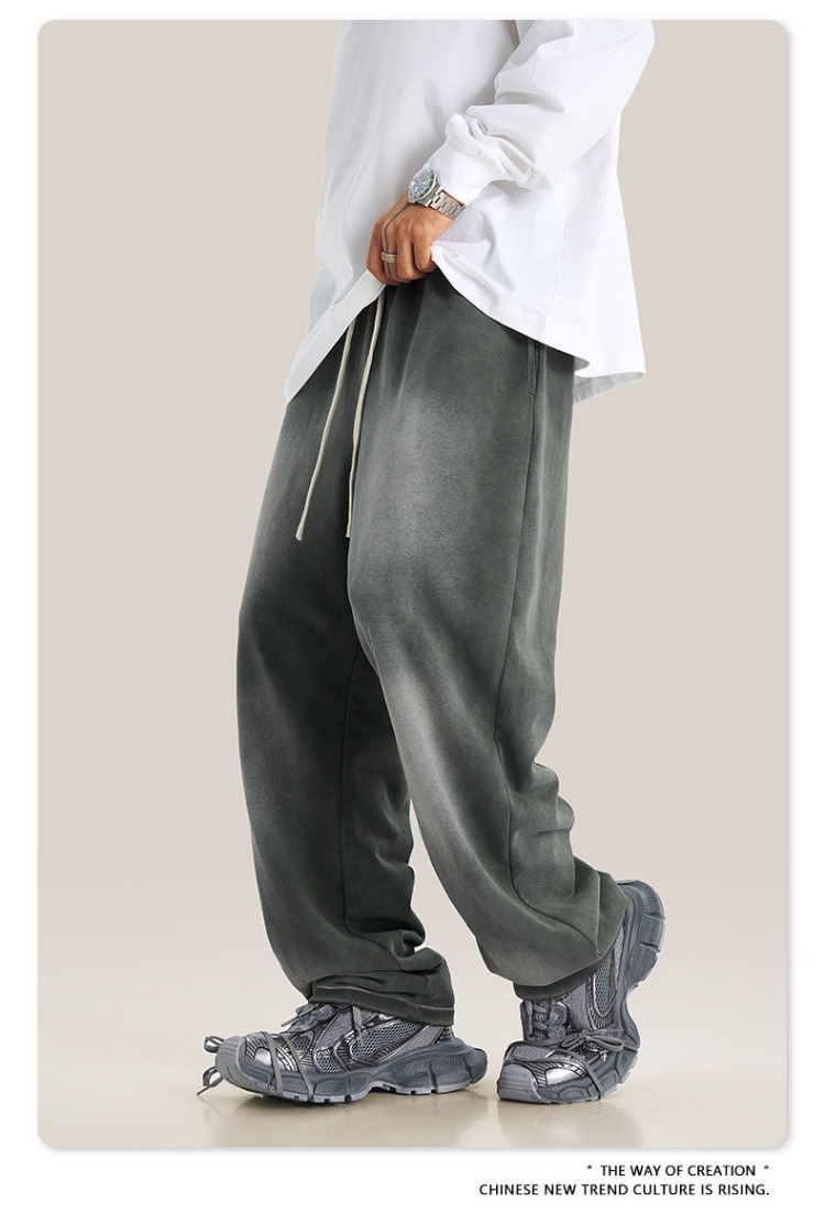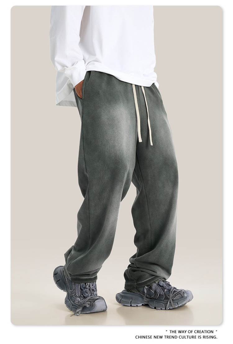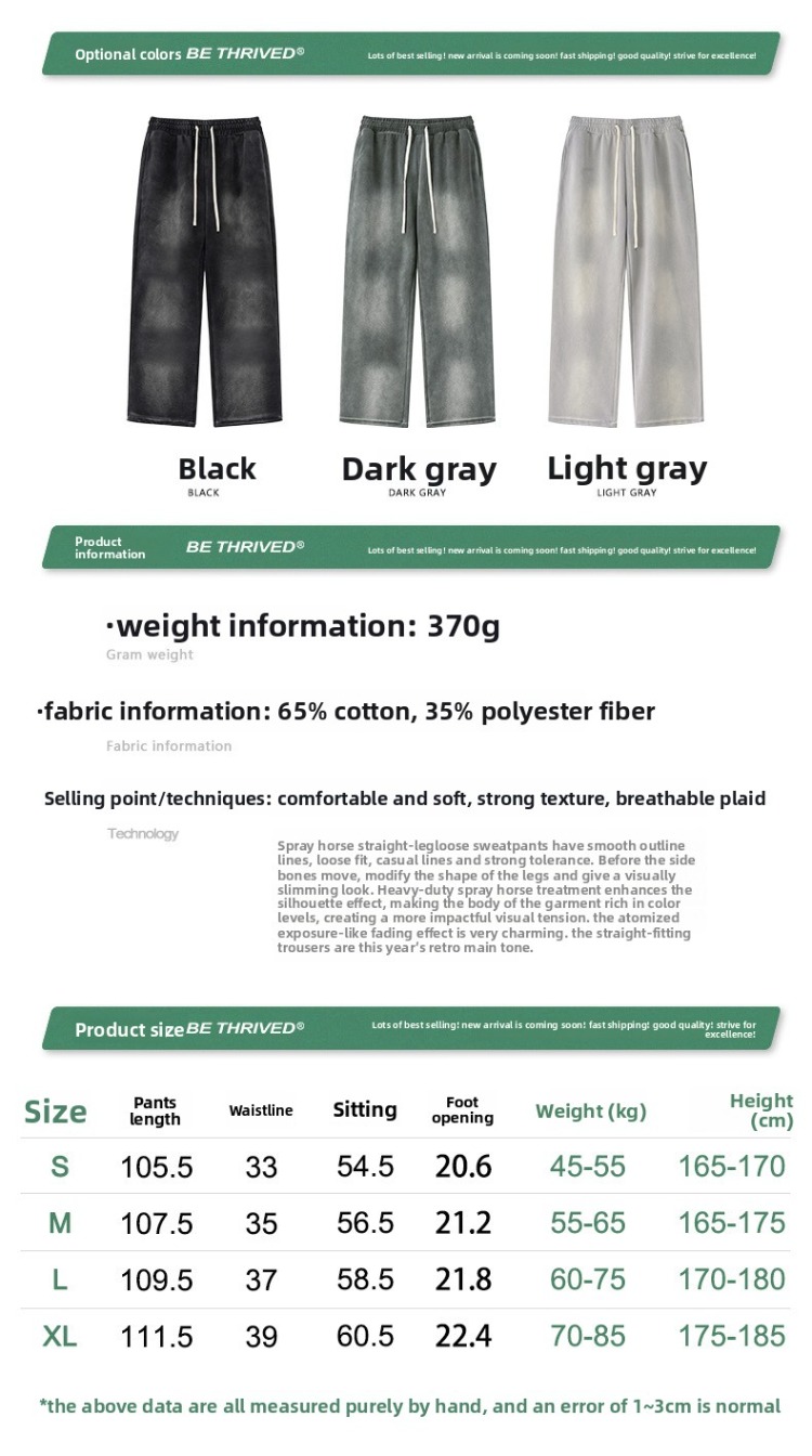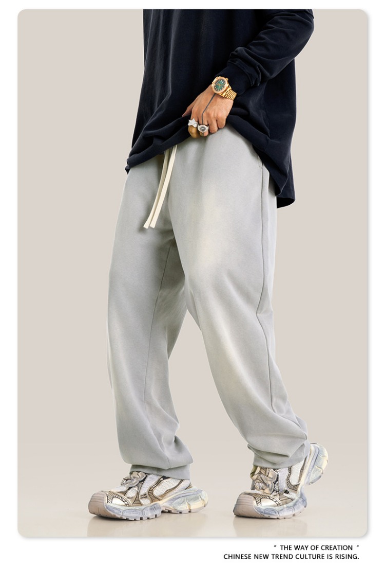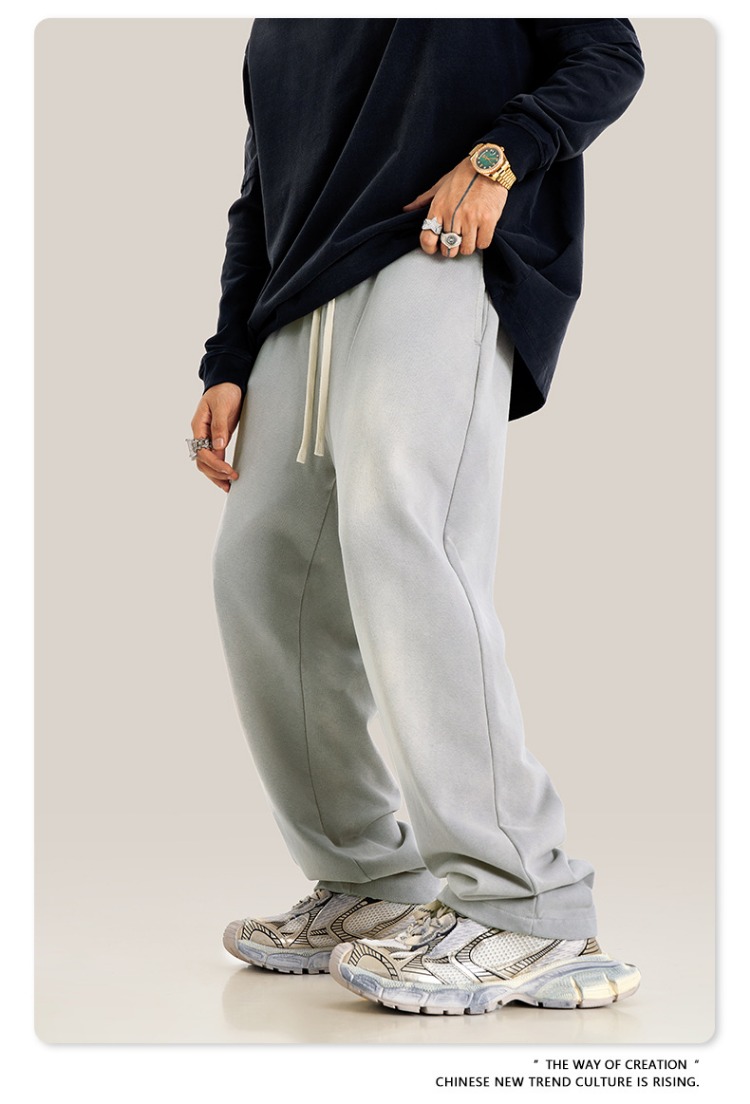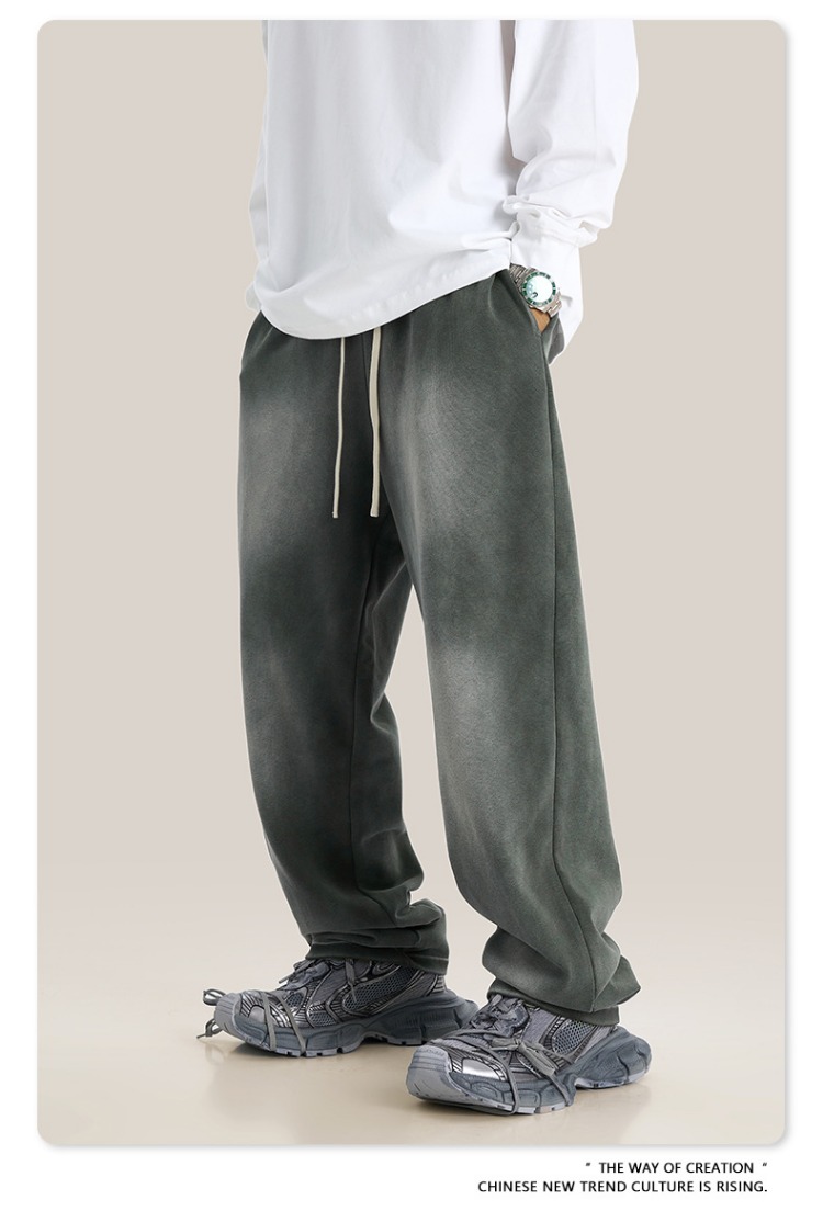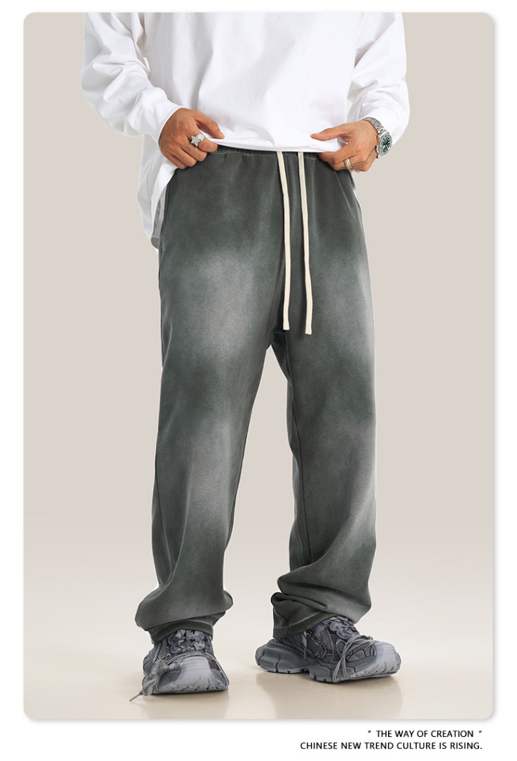 BE men's washed and old sweatpants straight-leg pants loose sweatpants