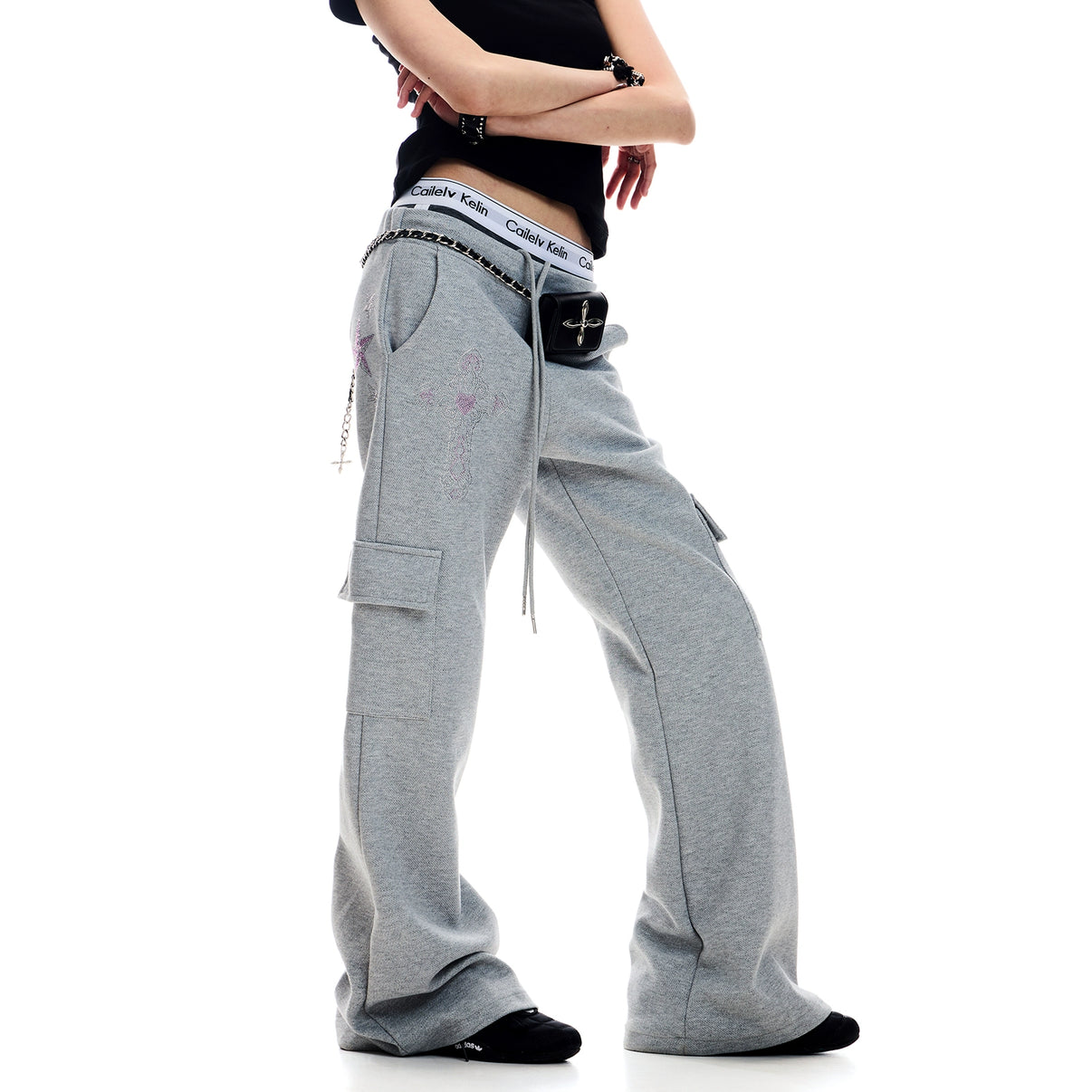 Jimmy Hot Diamond Cross Wide Leg Mopping Sweatpants